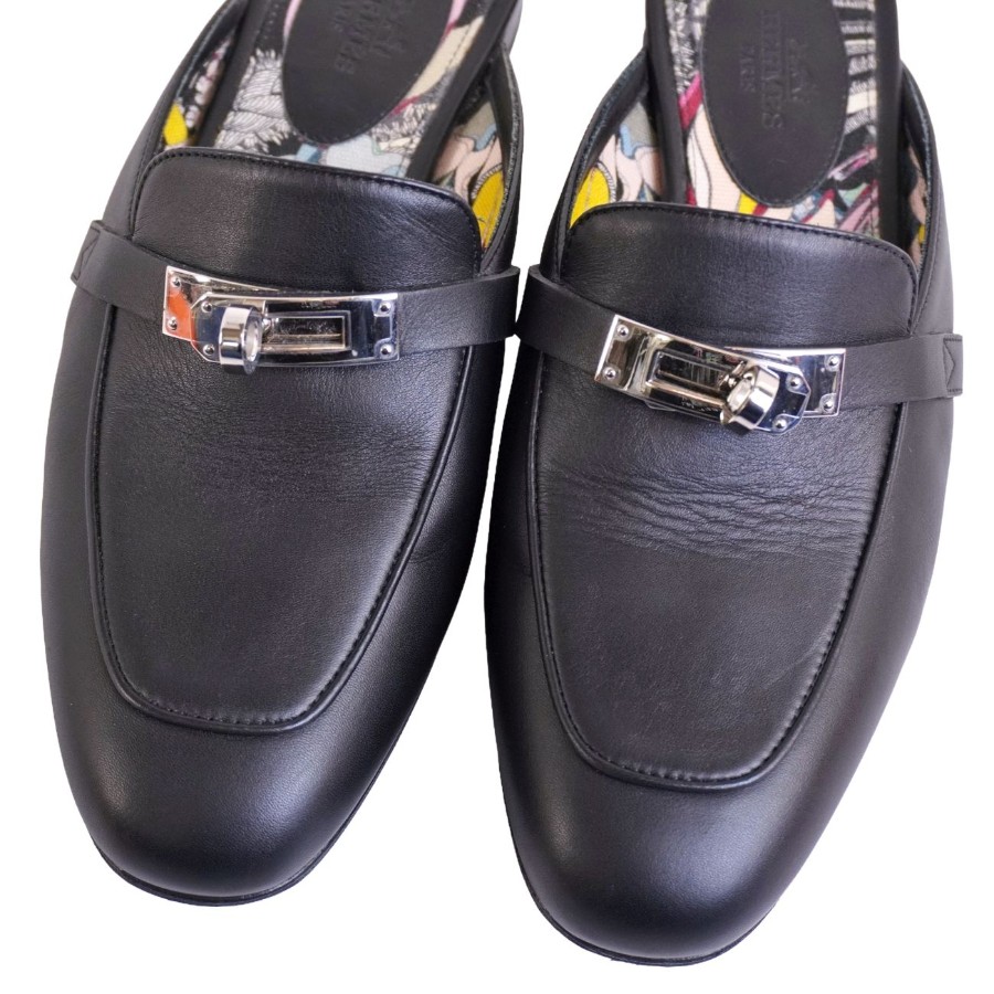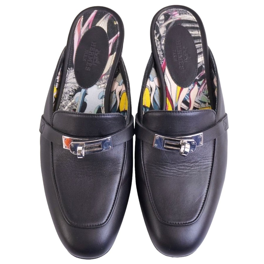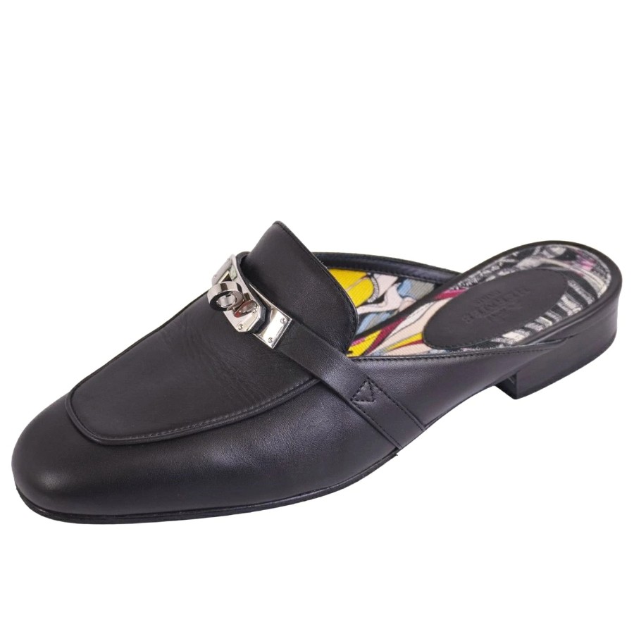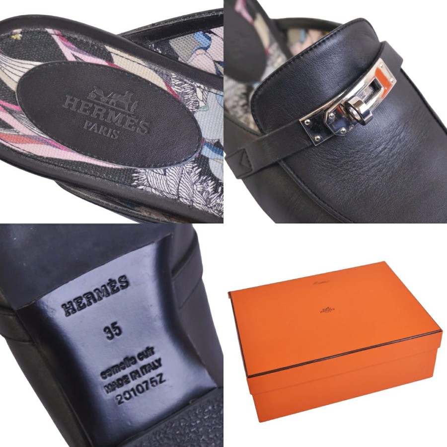 エルメス HERMES サンダル オズ ミュール ケリー金具 レザー シューズ 靴 レディース イタリア製 ブラック サイズ35(22cm相当)