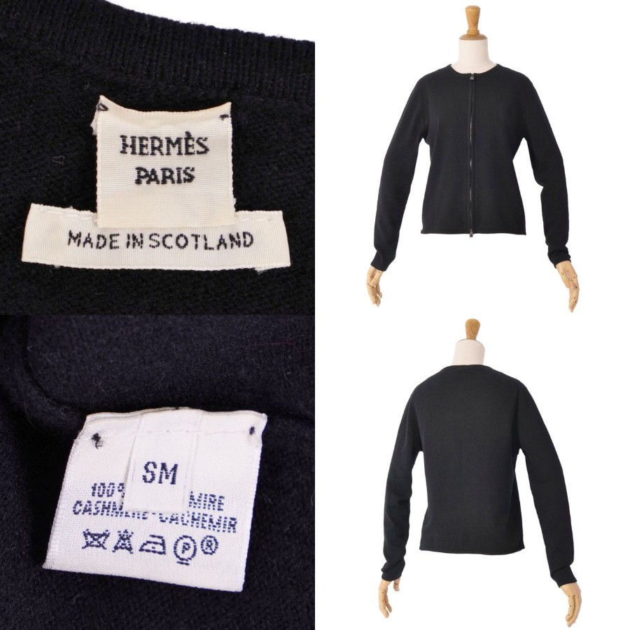 エルメス HERMES ニット ゴルチエ期 セーター ジップアップ カシミヤ100% トップス レディース スコットランド製 ブラック サイズSM
