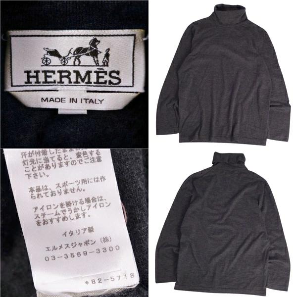 [Good Condition] Hermes HERMES Knit Sweater High Neck Cashmere Top Men's Made in Italy L Gray [Used]