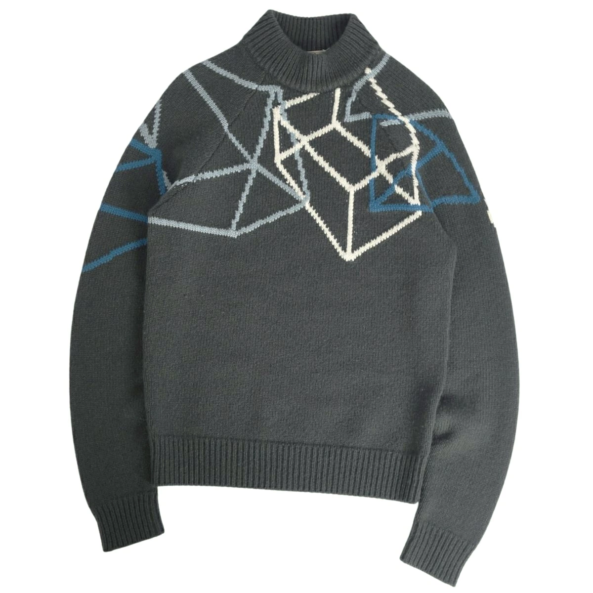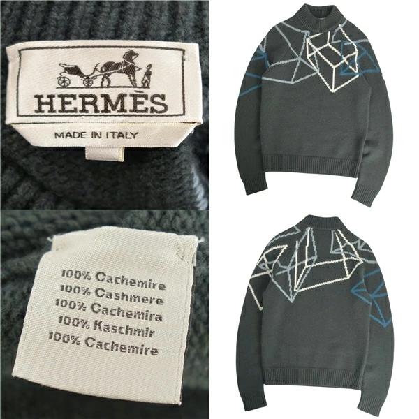Pre-owned Hermès Men's High-Neck Cashmere Knit Sweater, Made in Italy, Size XS, Green-Gray. Excellent Condition.