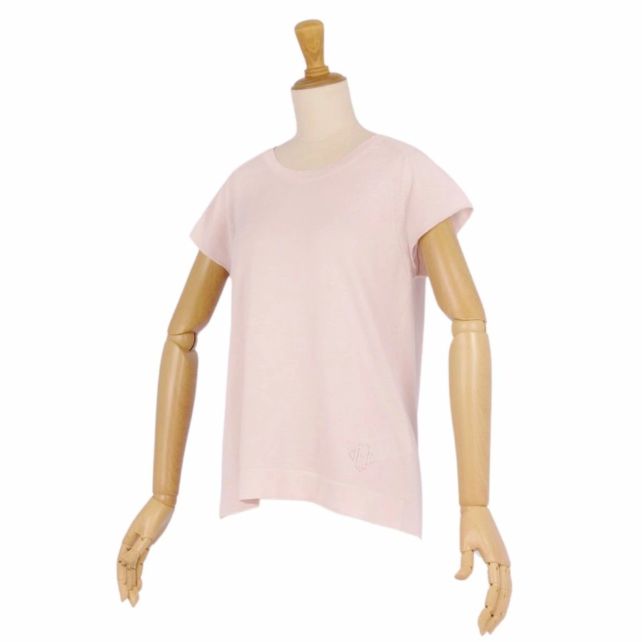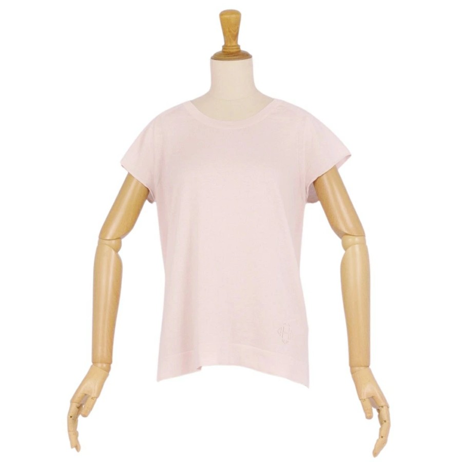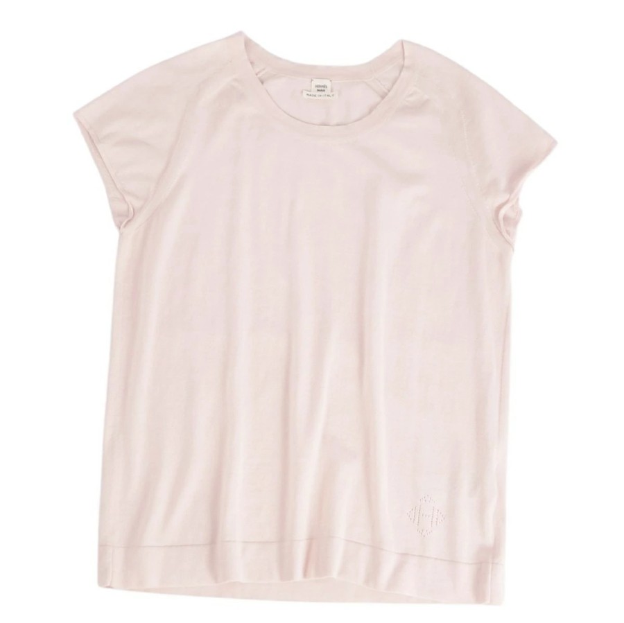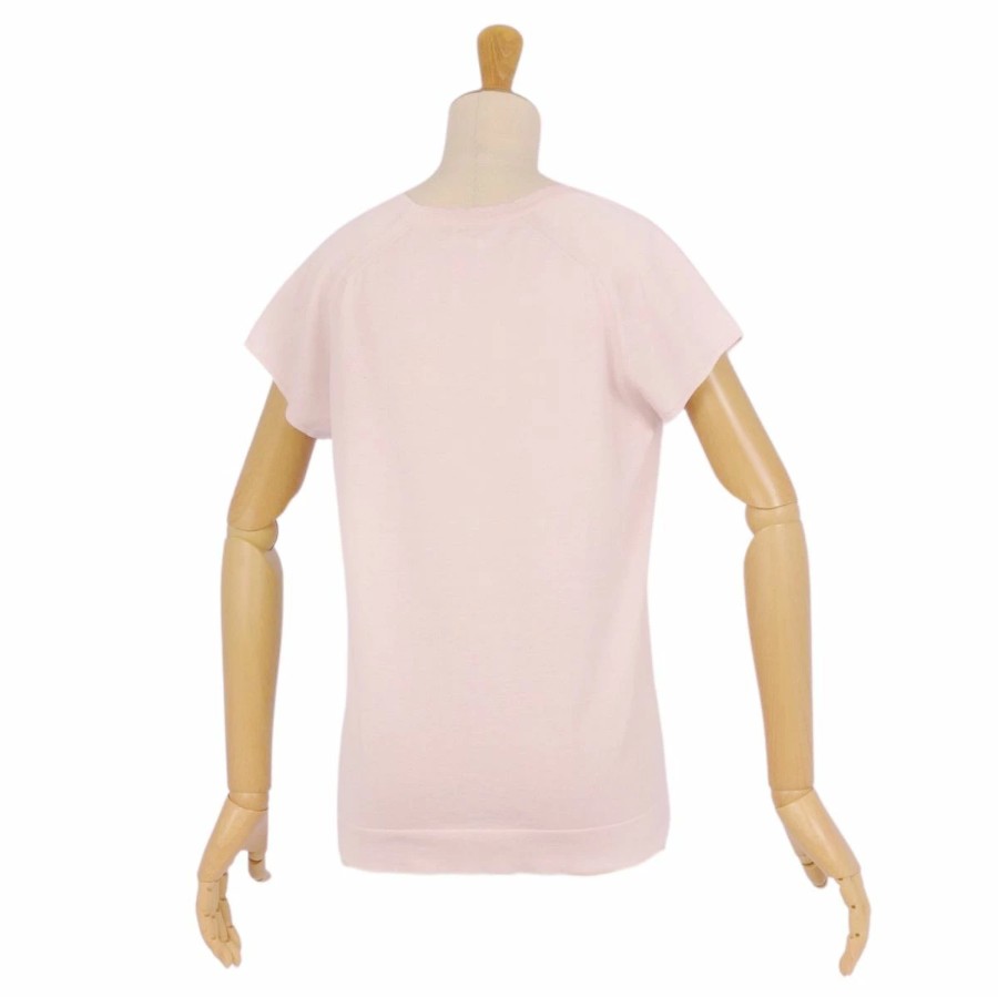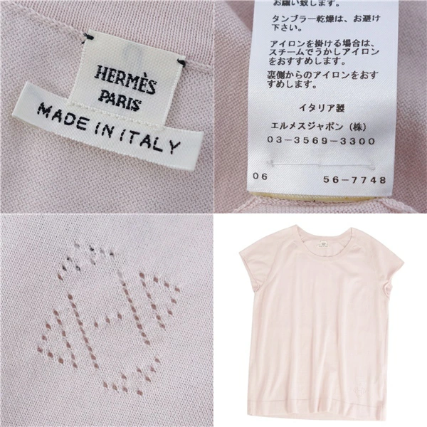 エルメス HERMES ニット セーター フレンチスリーブ Hロゴ コットン シルク トップス レディース ライトピンク サイズ40(M相当)