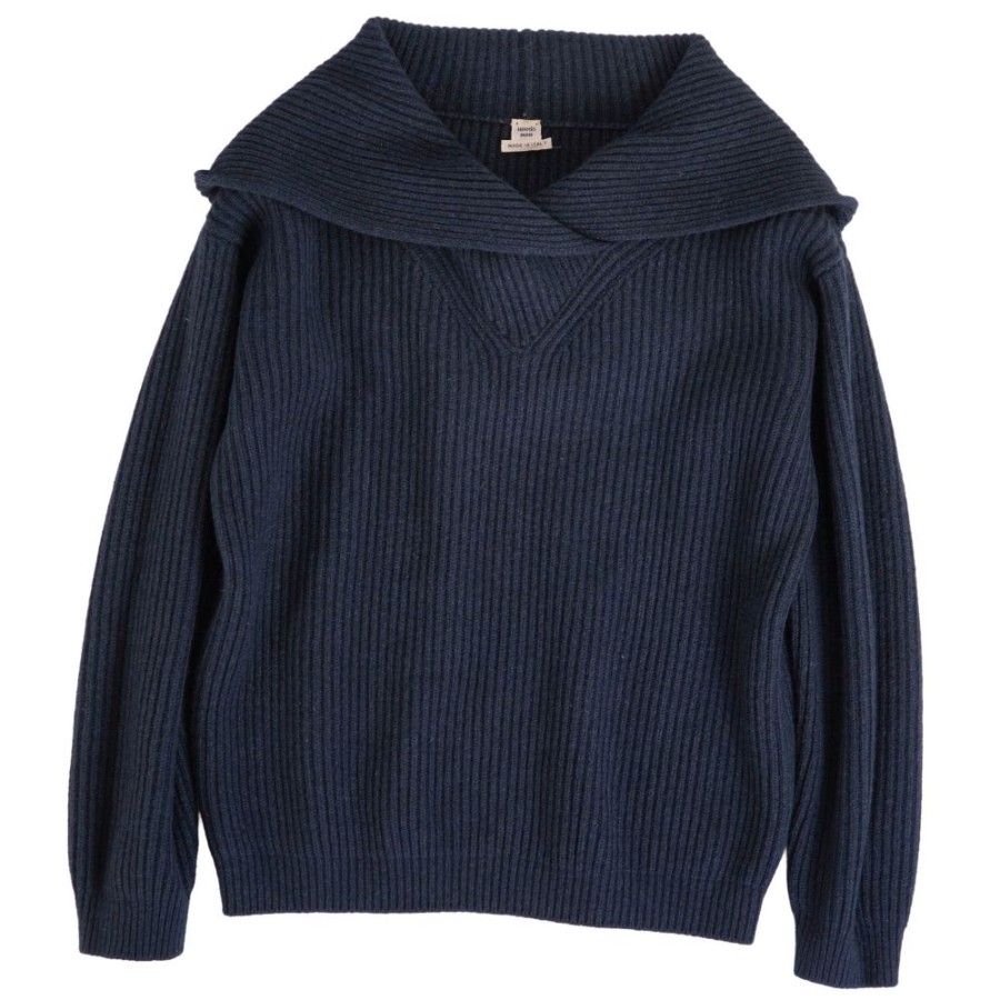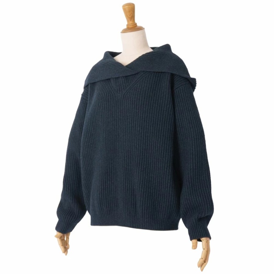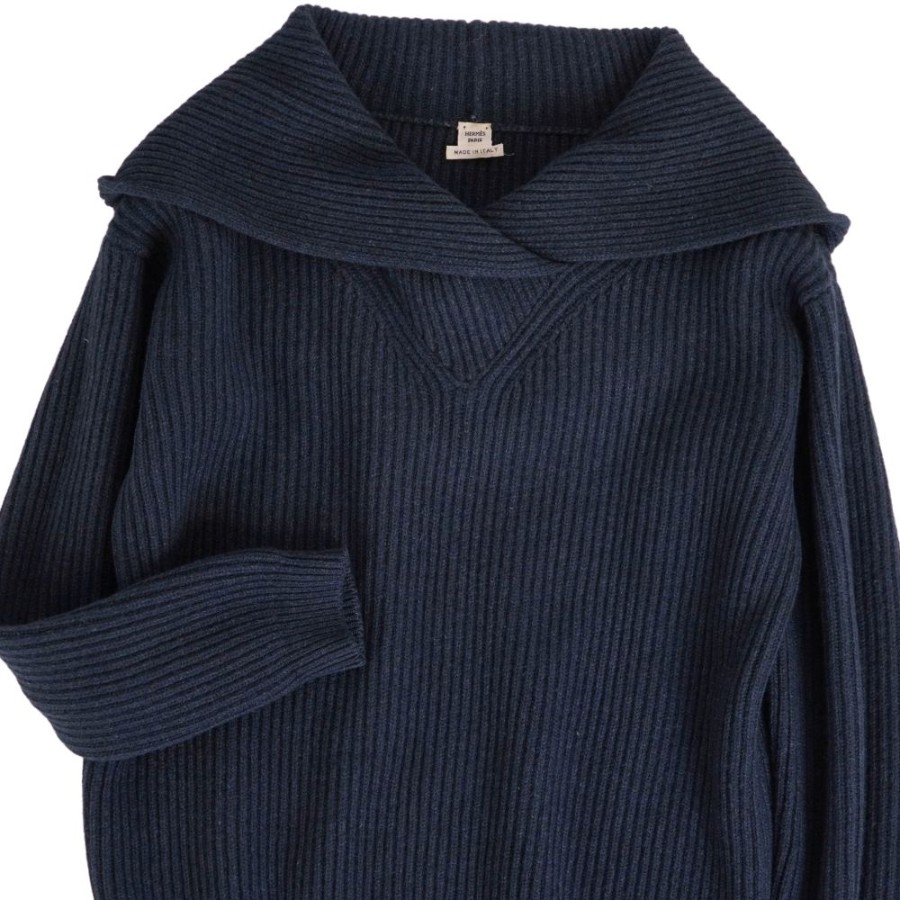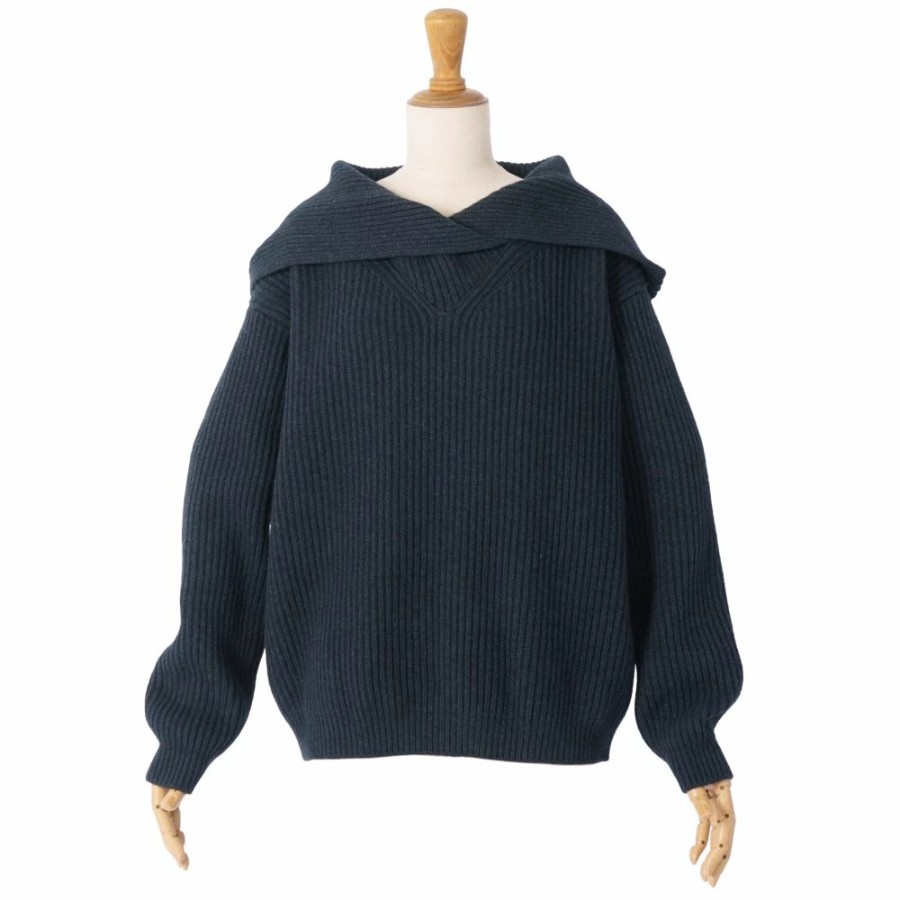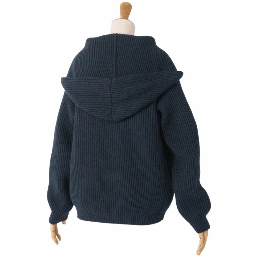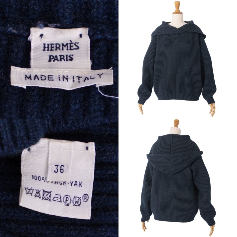 エルメス HERMES ニット フード付き セーター ロングスリーブ 長袖 ヤク トップス レディース イタリア製 ネイビー サイズ36(S相当)