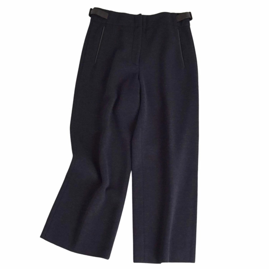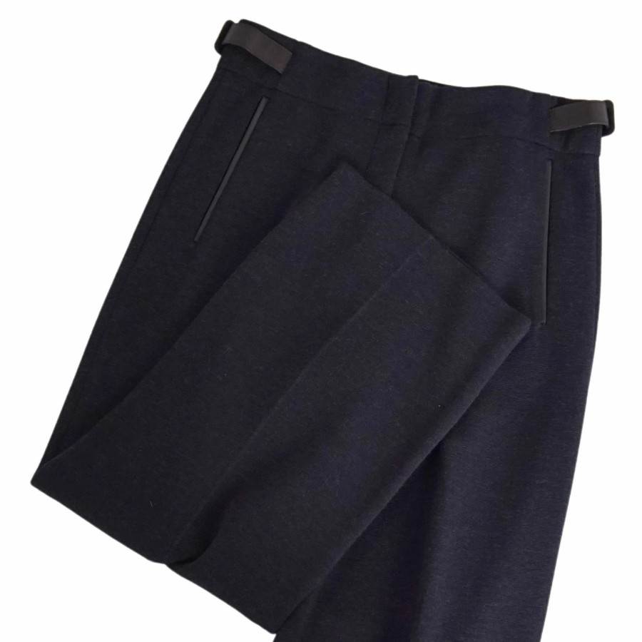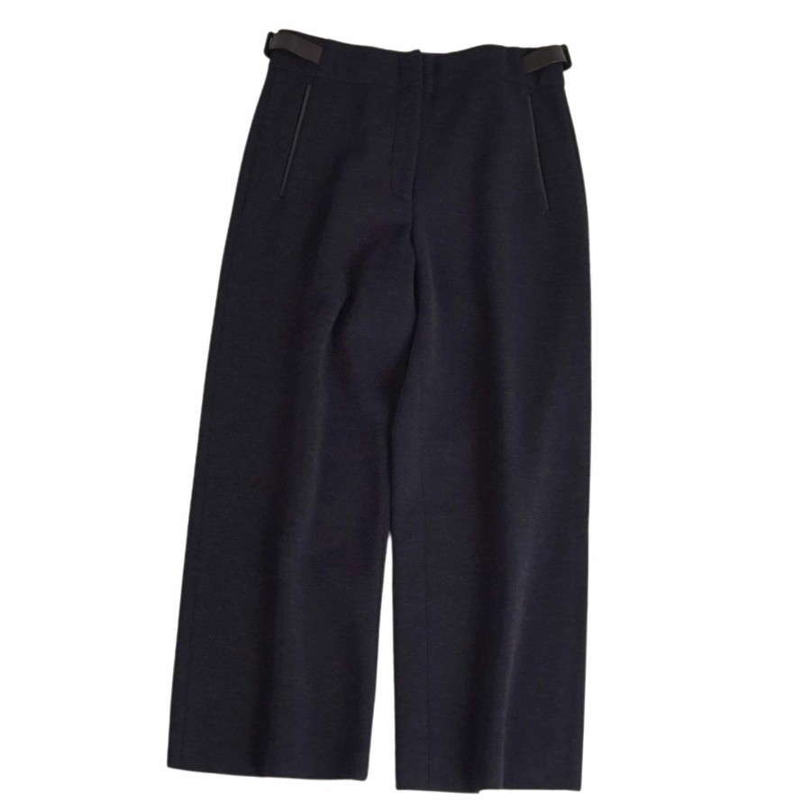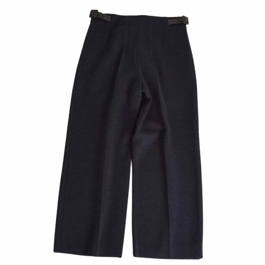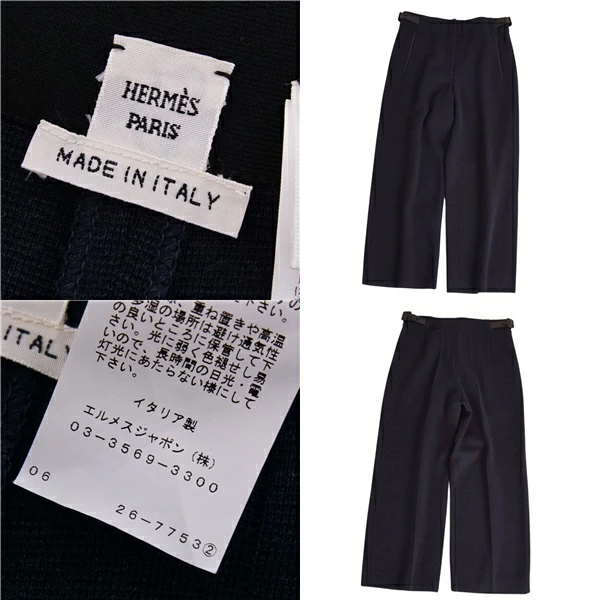 エルメス HERMES パンツ ワイドパンツ ニット ウール コットン ラムレザー ボトムス レディース イタリア製 ネイビー サイズ36(S相当)