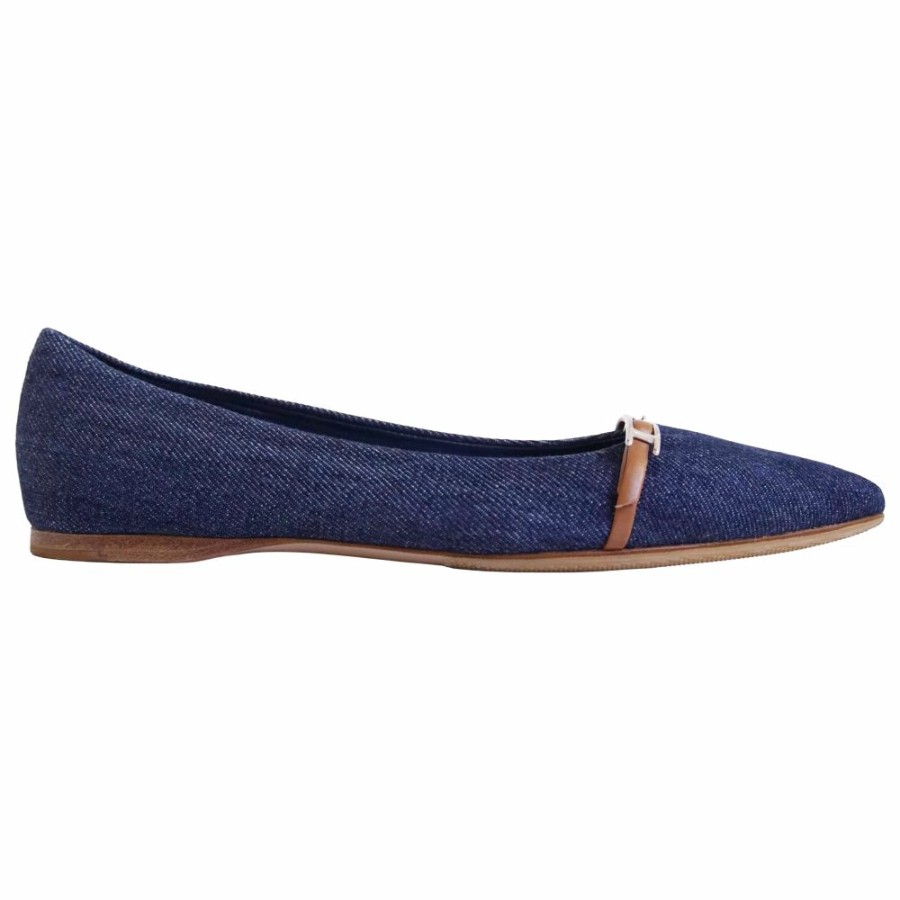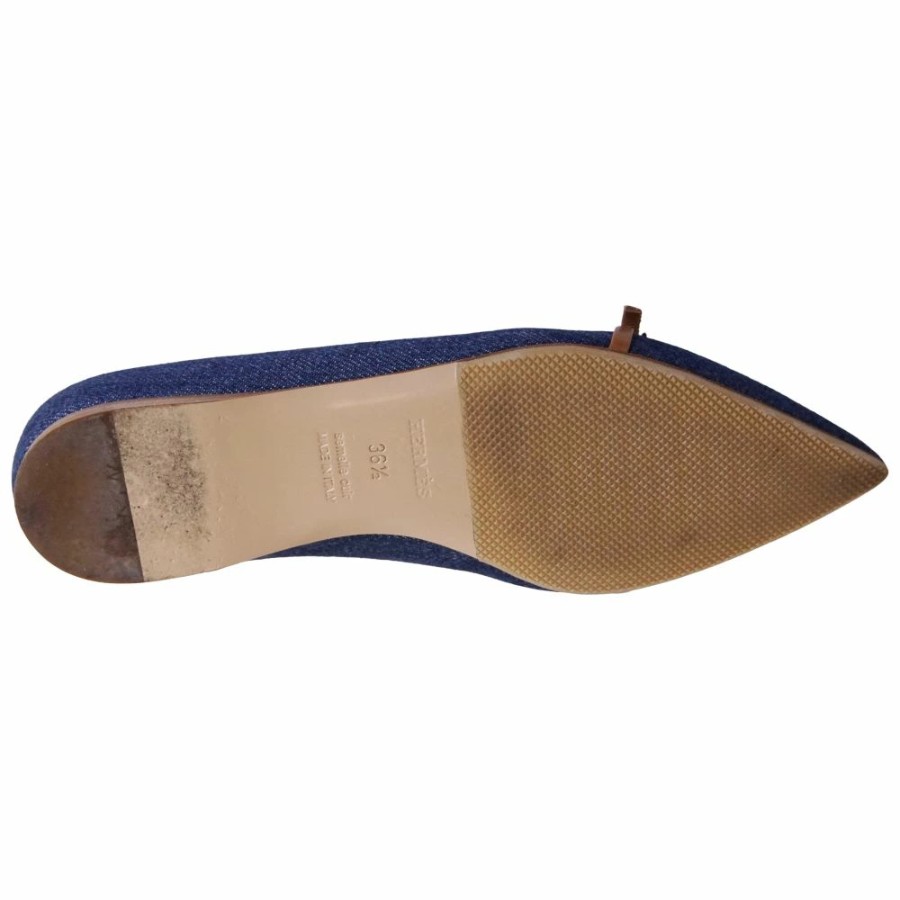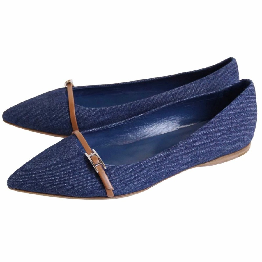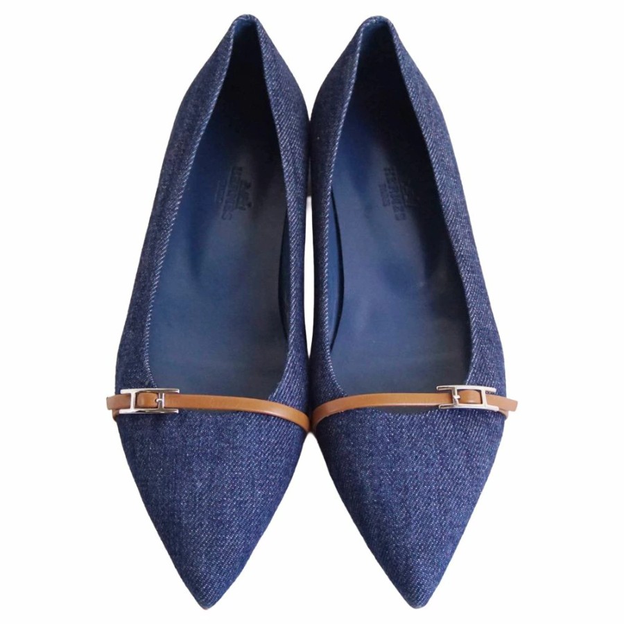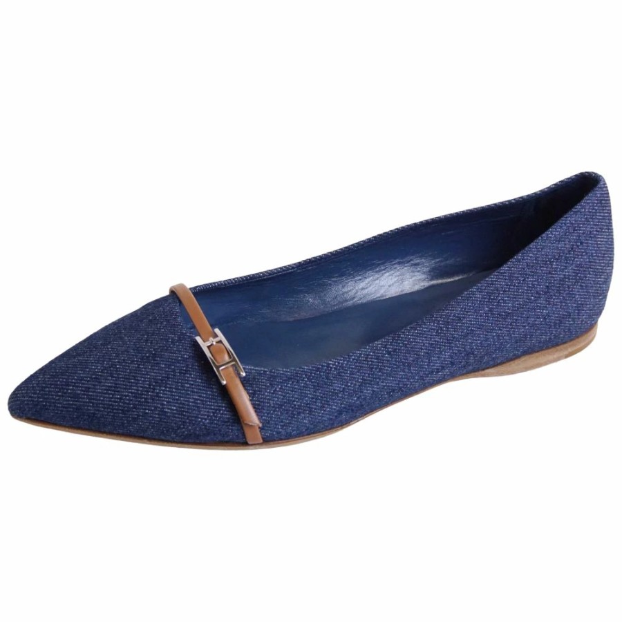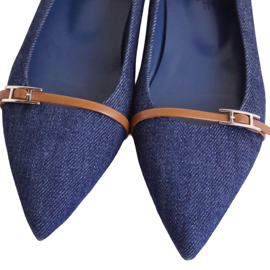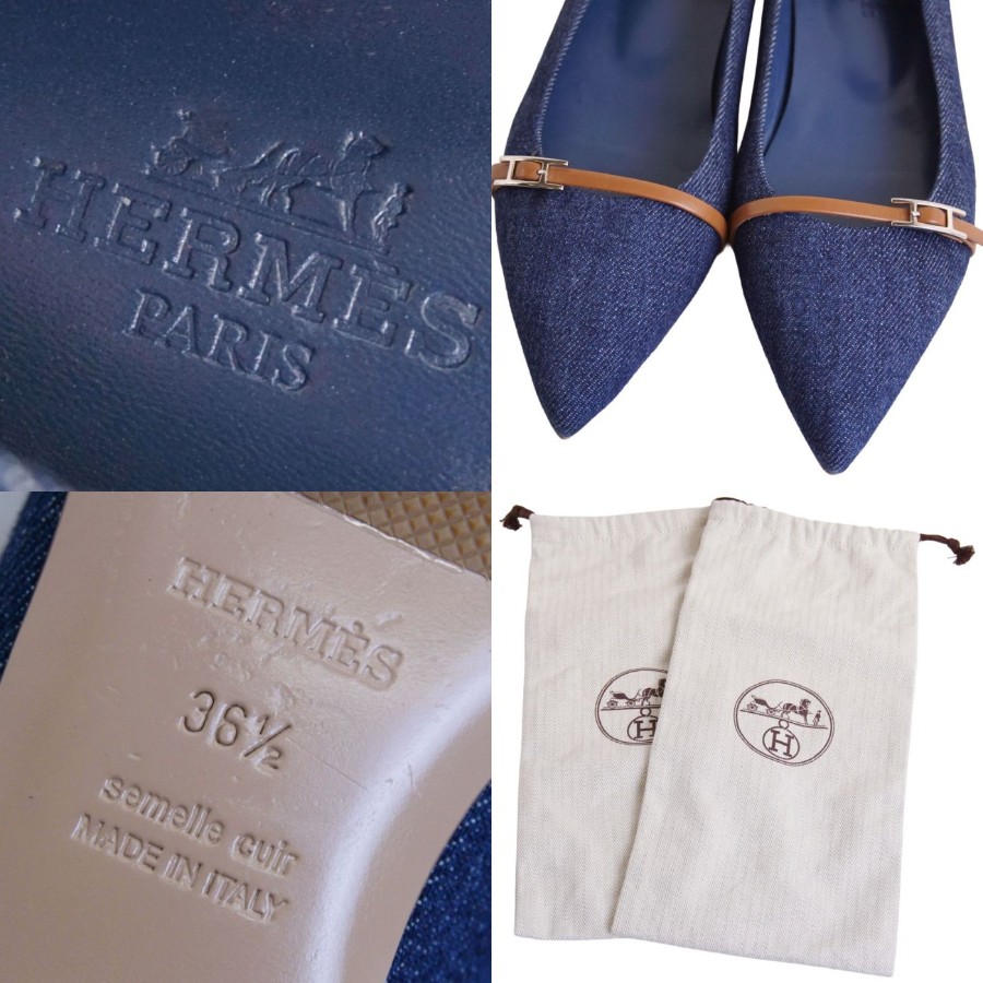 [Excellent Condition] Hermes HERMES Pumps, Flat Pumps, Denim, Api Hardware, Shoes, Women's, Made in Italy, Size 36.5 (equivalent to 23.5cm), Blue [Pre-owned]