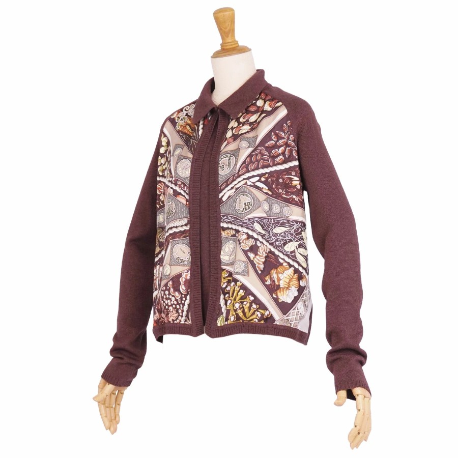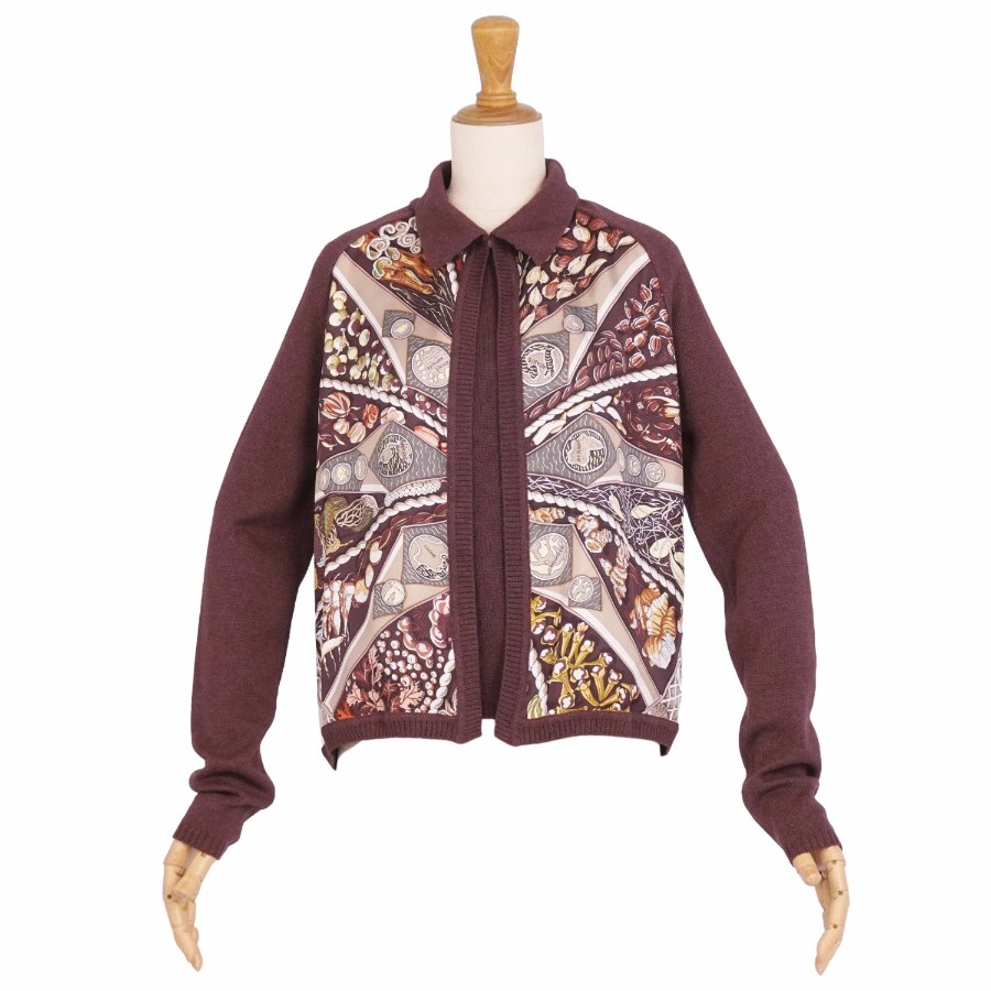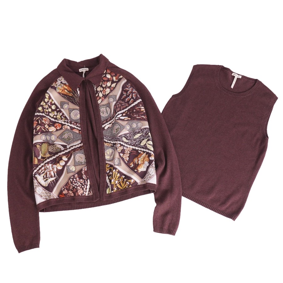 エルメス HERMES マルジェラ期 アンサンブル ニット カーディガン セーター シルク カシミヤ 総柄 トップス レディース ボルドー サイズM
