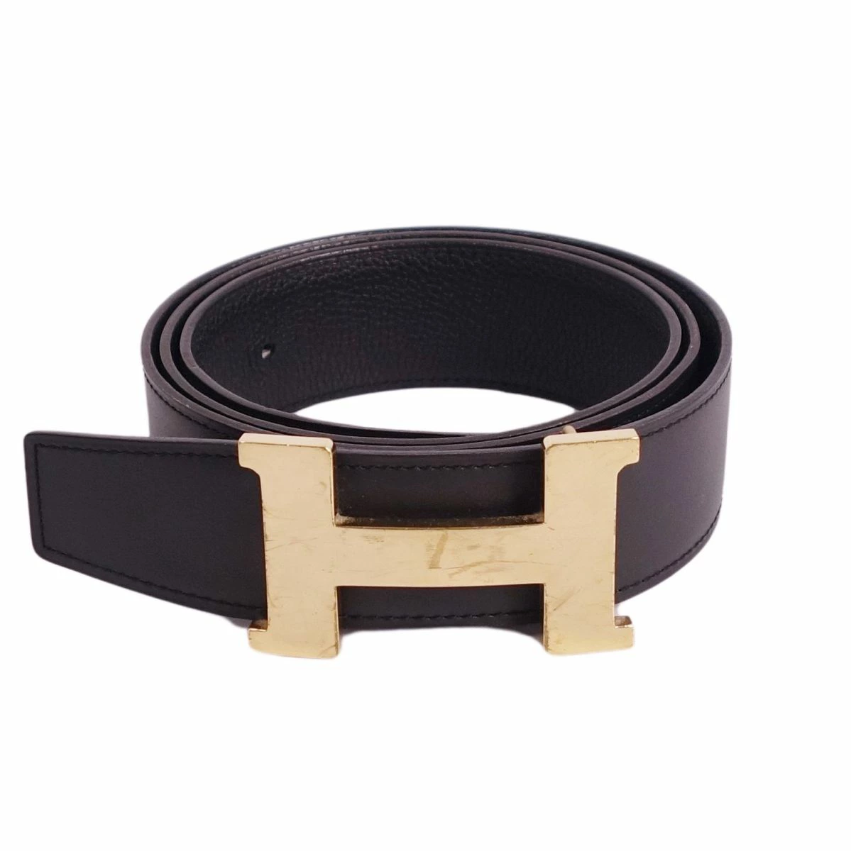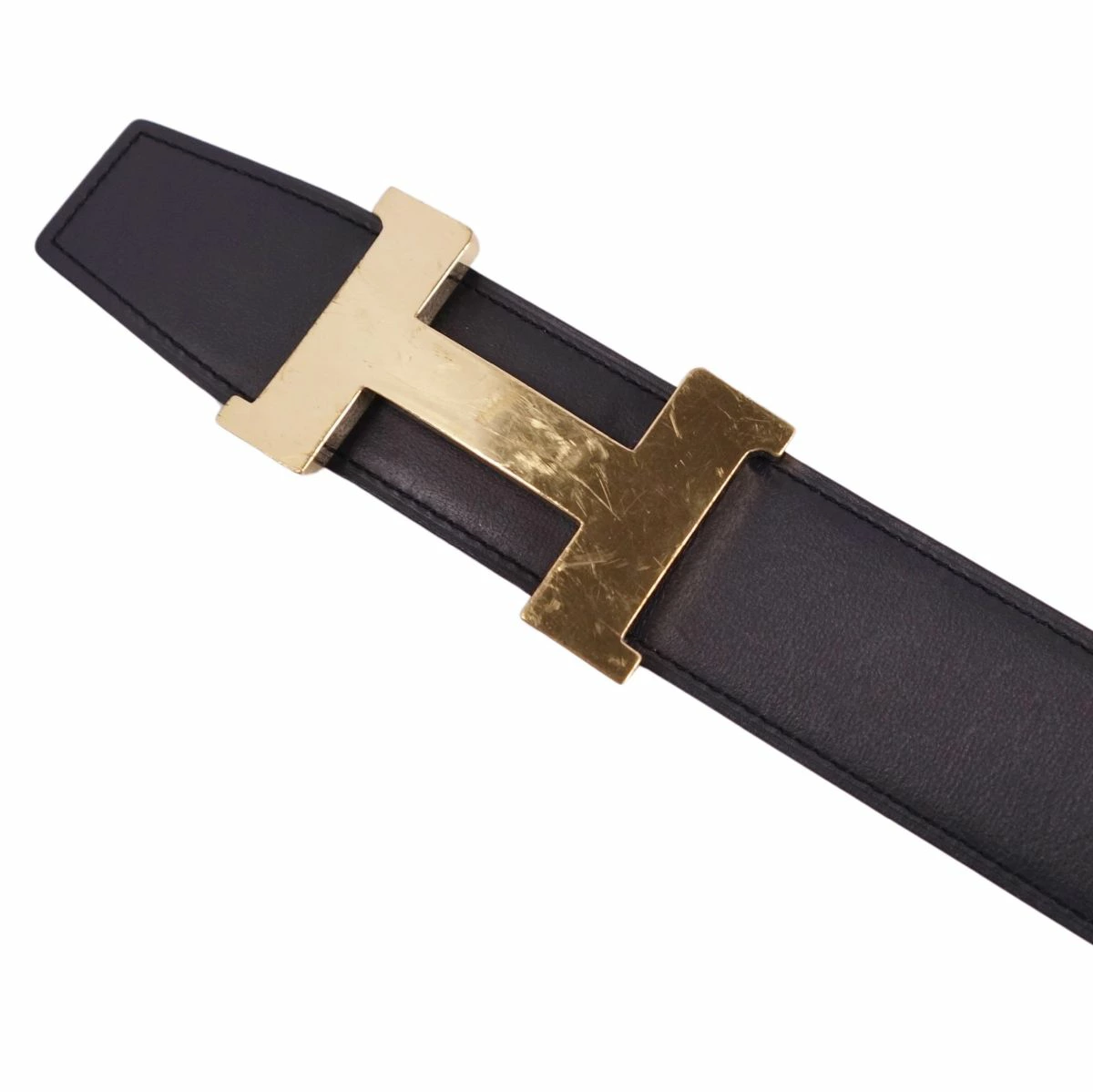 [Excellent Condition] Hermès 2020 Reversible Constance Belt with H Logo and Calf Leather Buckle, Men's Size 95, Black [Pre-owned]