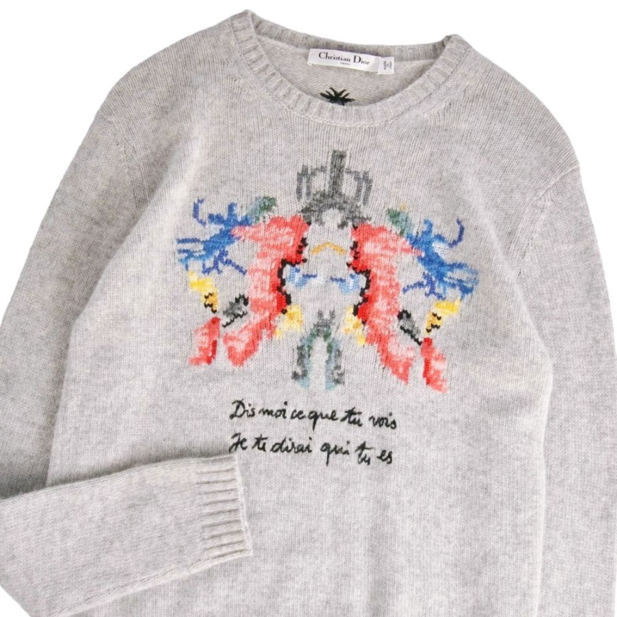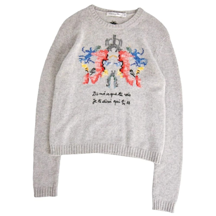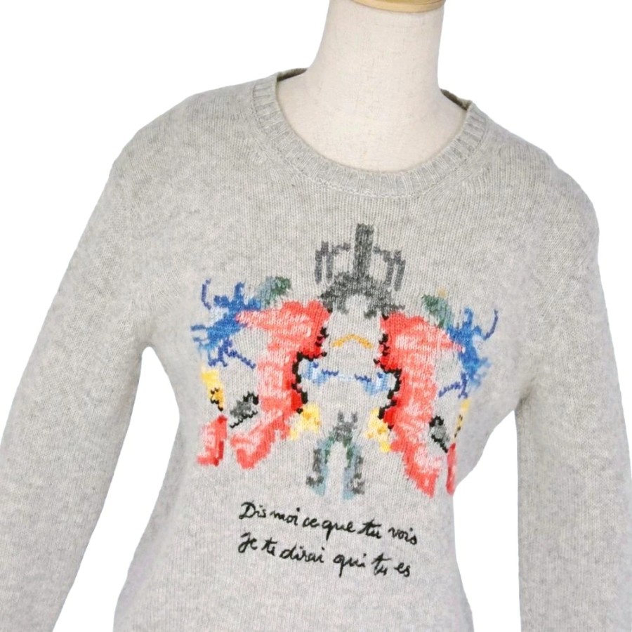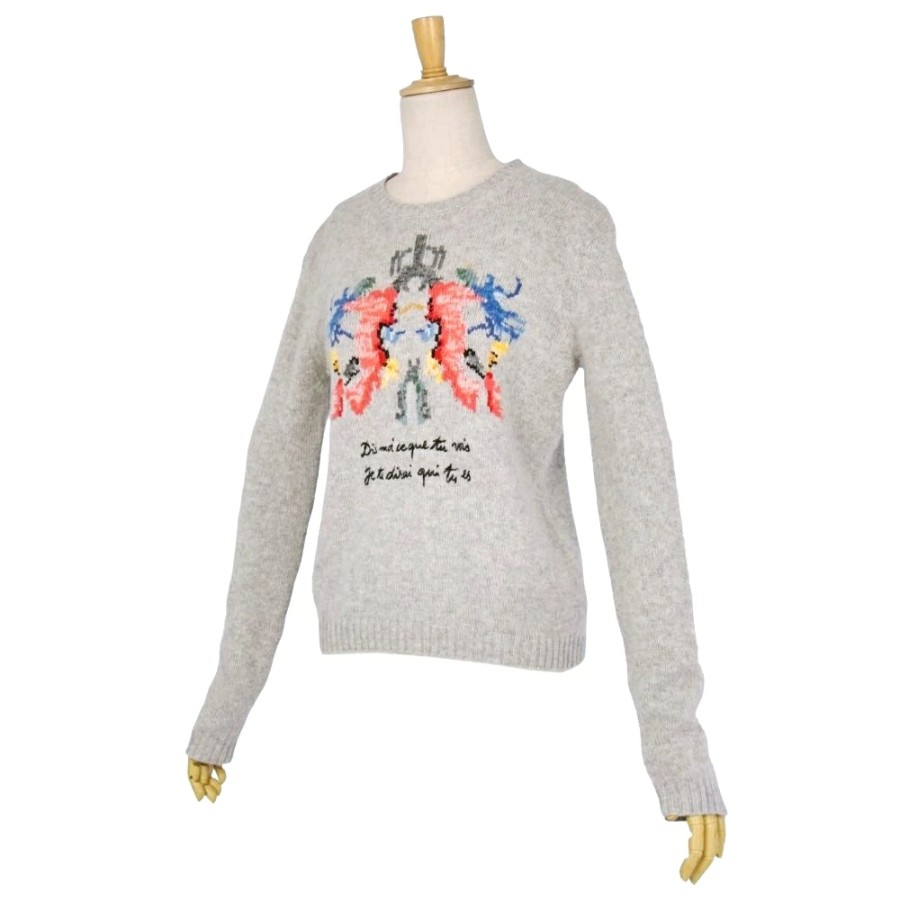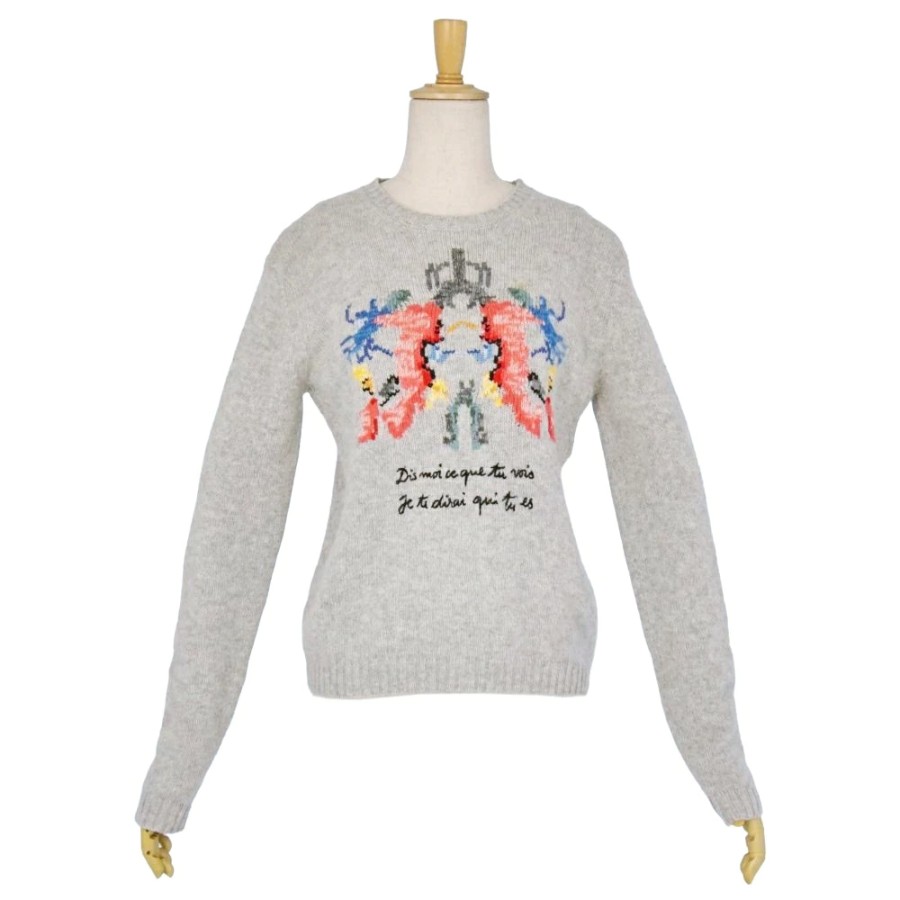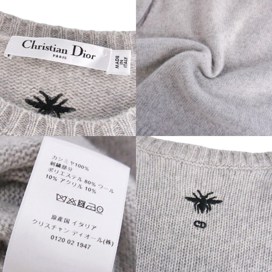 クリスチャンディオール Christian Dior ニット セーター ロングスリーブ カシミヤ100% レディース イタリア製 グレー サイズ40(L相当)
