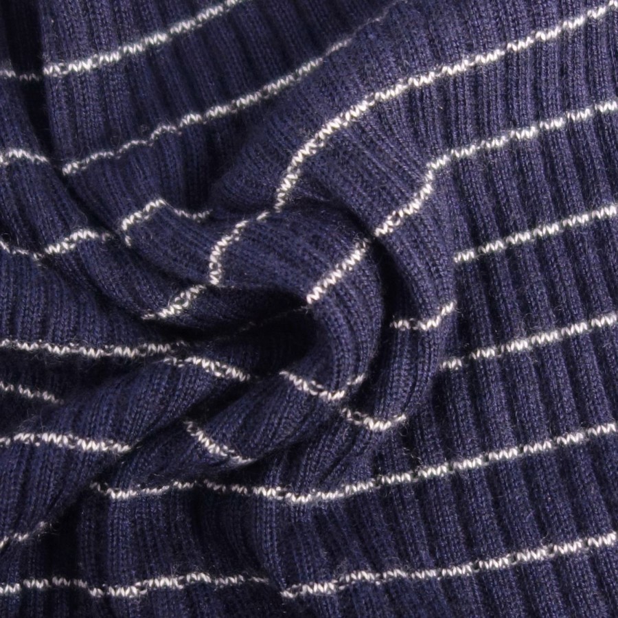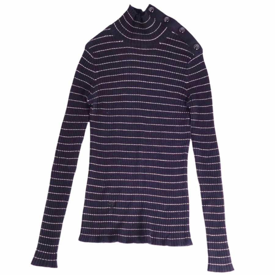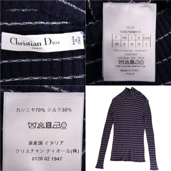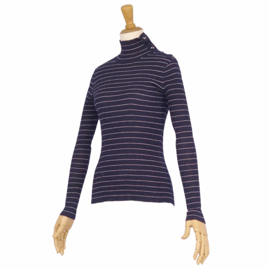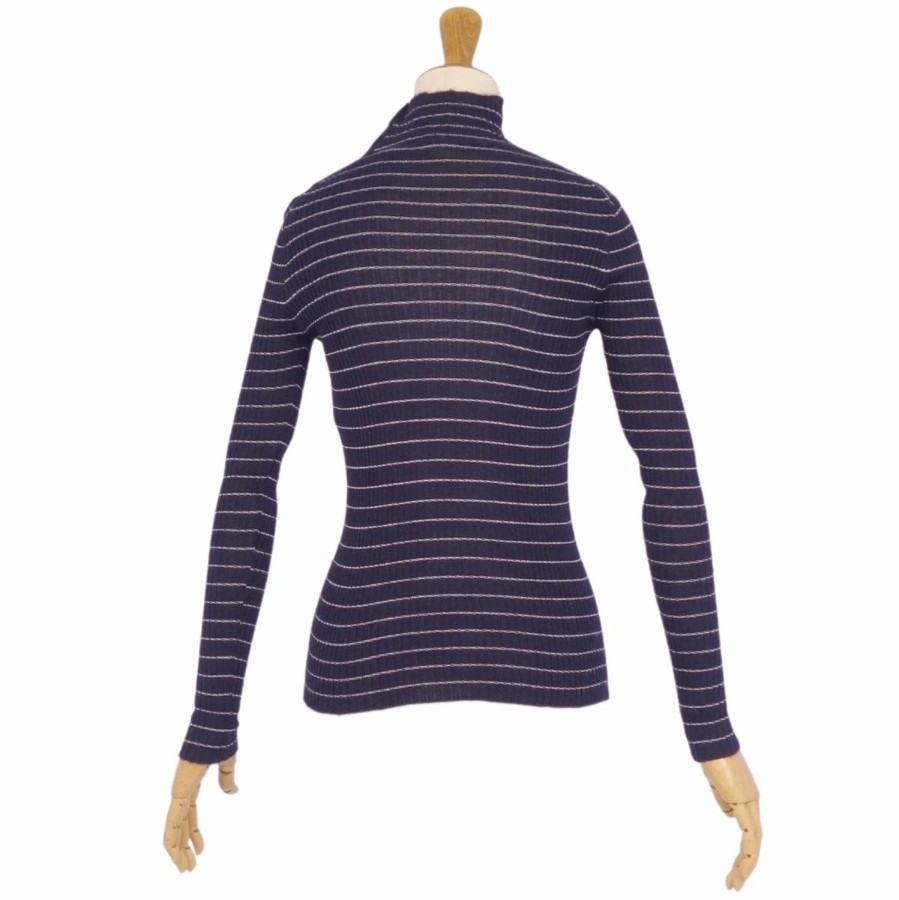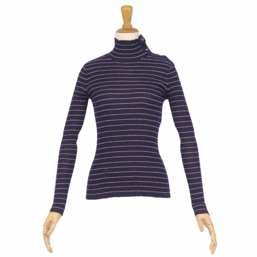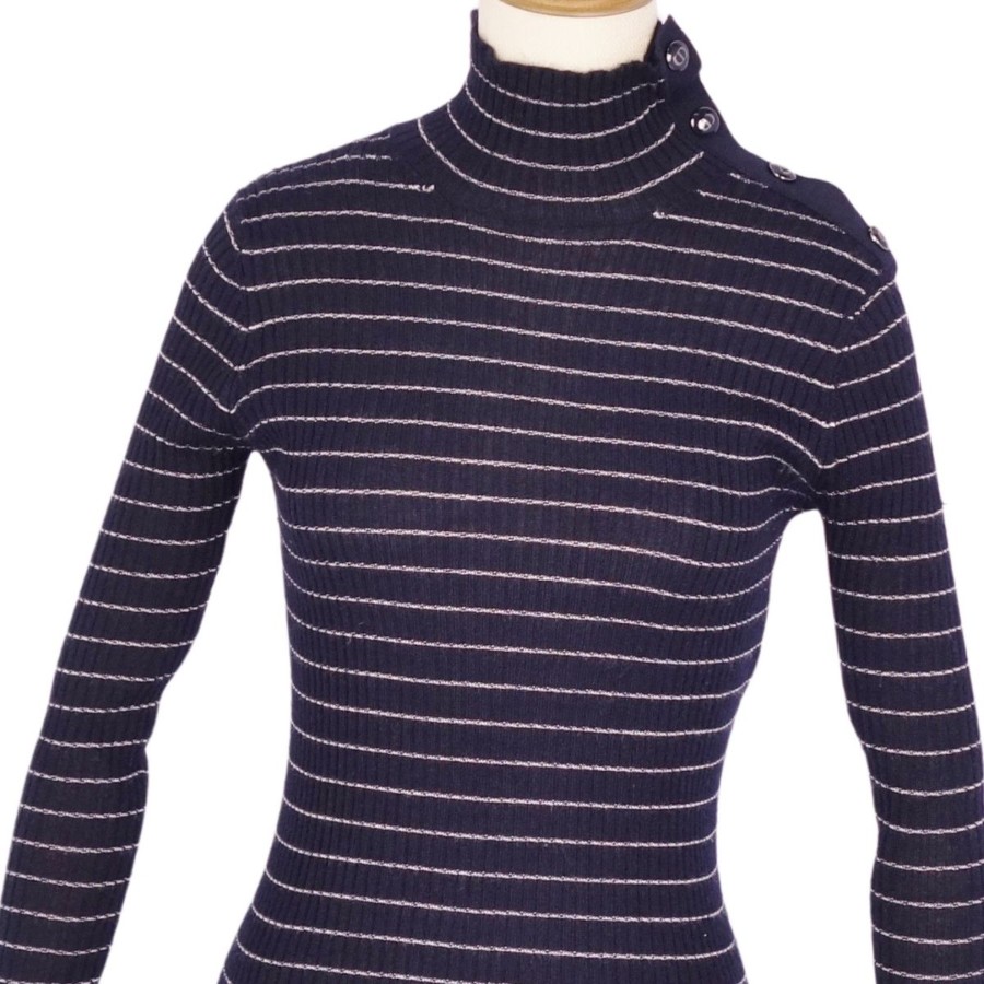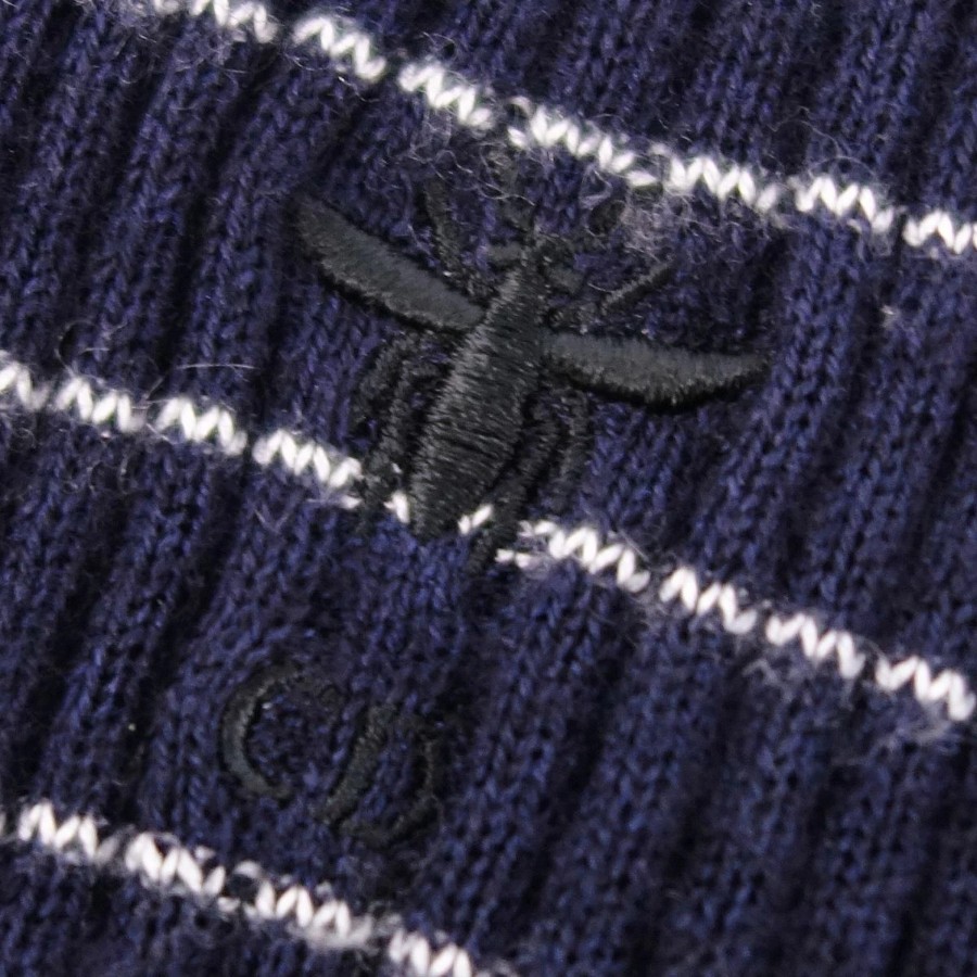 クリスチャンディオール Christian Dior 2021年 ニット セーター ハイネック ロングスリーブ 長袖 ボーダー Bee刺繍 カシミヤ シルク トップス レディース ネイビー サイズF34 USA2 I38(S相当)