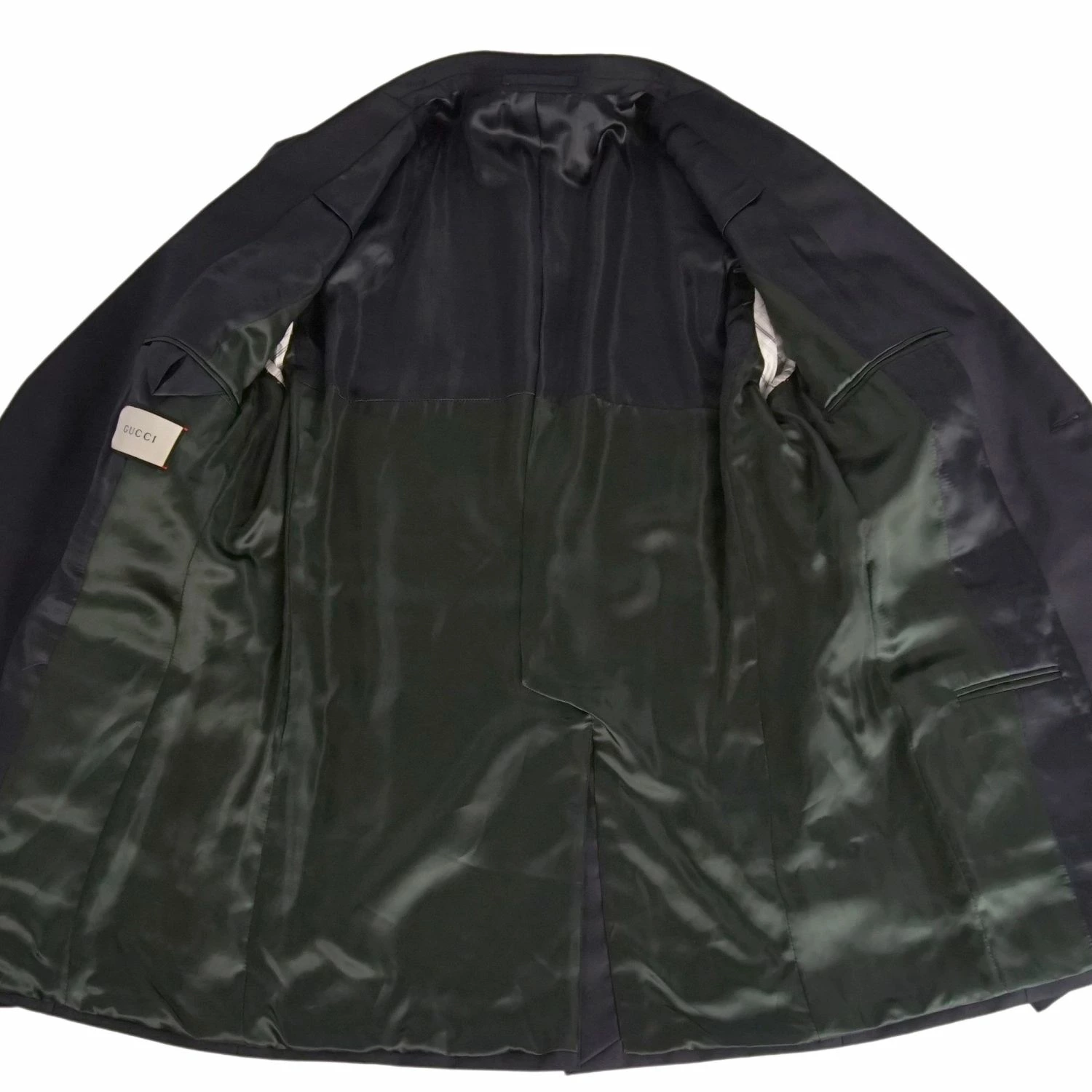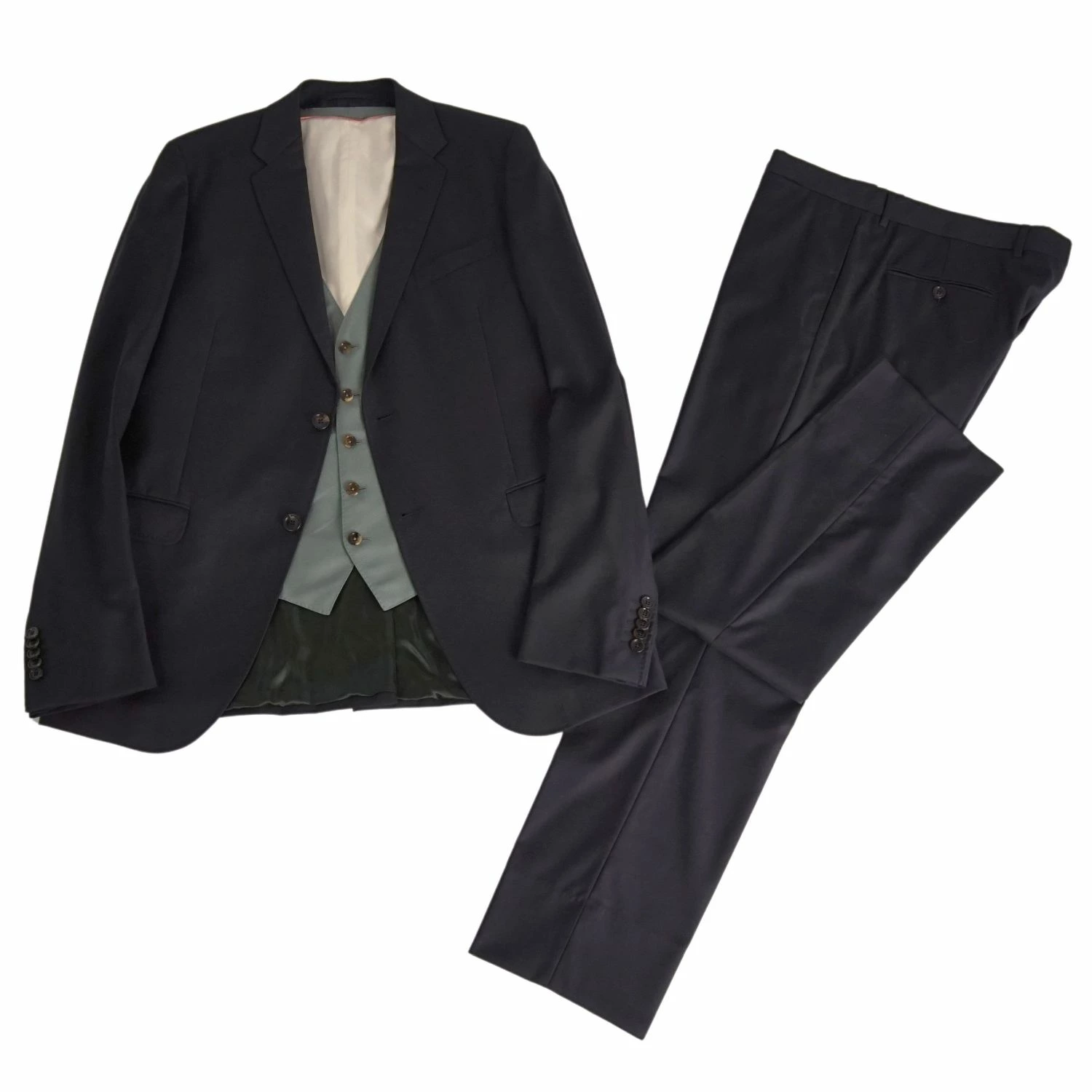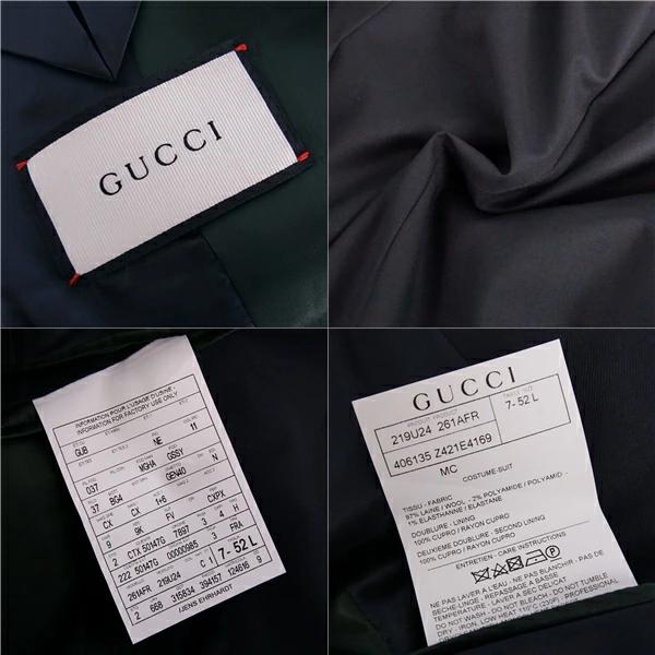■商品名グッチ GUCCI セットアップ 3ピース スーツ 無地 ウール ジャケット パンツ メンズ ネイビー サイズ7-52(L相当)■状態説明・上質なウール素材を使用した、GUCCIのセットアップ(ジャケット/パンツ)です♪・3シーズンでお使い頂ける一品です◎・ジャケット:シングル 2ボタン 総裏 センターベント・パンツ:ノータック 裾シングル・イタリア製・国内正規取り扱いの製品です。・USEDですが気になるようなキズや汚れなどはなく全体的にキレイな状態です!【季節感:秋冬春】【付属品:なし】■素材表地:ウール97% ポリアミド2% ウレタン1% 裏地:キュプラ■カラーネイビー■表記サイズ7-52(L相当)■実寸サイズ着丈:約78cm身幅:約54cm肩幅:約44cm袖丈:約70cmパンツウエスト/わたり幅:約96/31cm/cm股上/股下:約25/79cm/cm裾幅/総丈:約19/101cm/cm■状態ランクA 使用感の少ない全体的にキレイなUSED品■店舗管理番号ce10dr-rm10e34112mens_navy mens_l