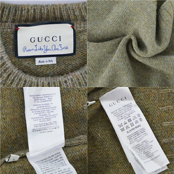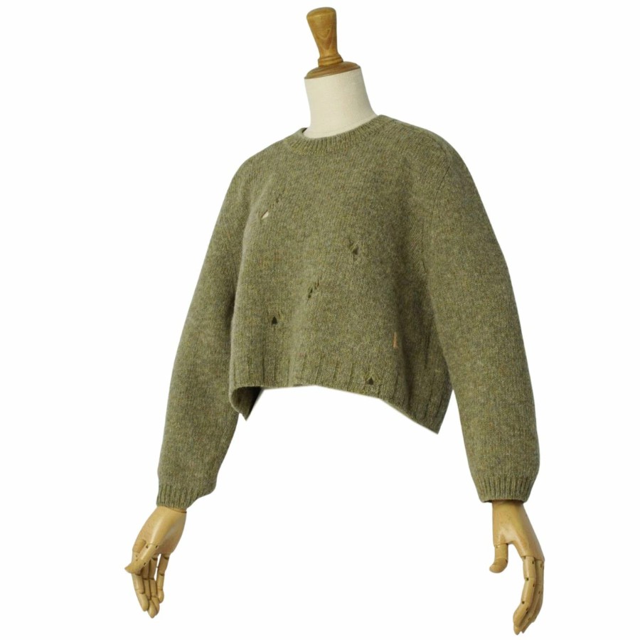 グッチ GUCCI ニット セーター ロングスリーブ 長袖 ダメージ加工 ウール トップス レディース イタリア製 グリーン サイズS