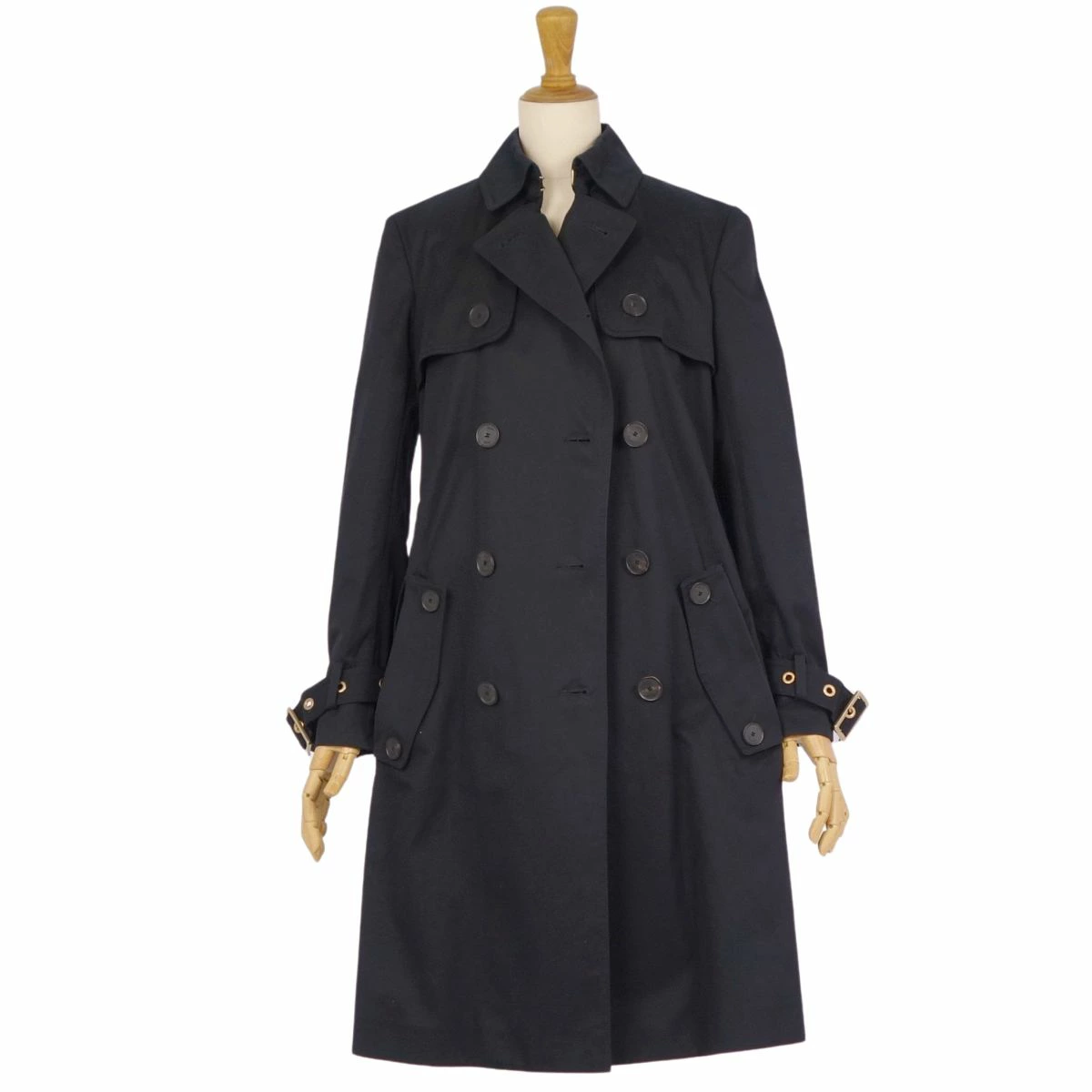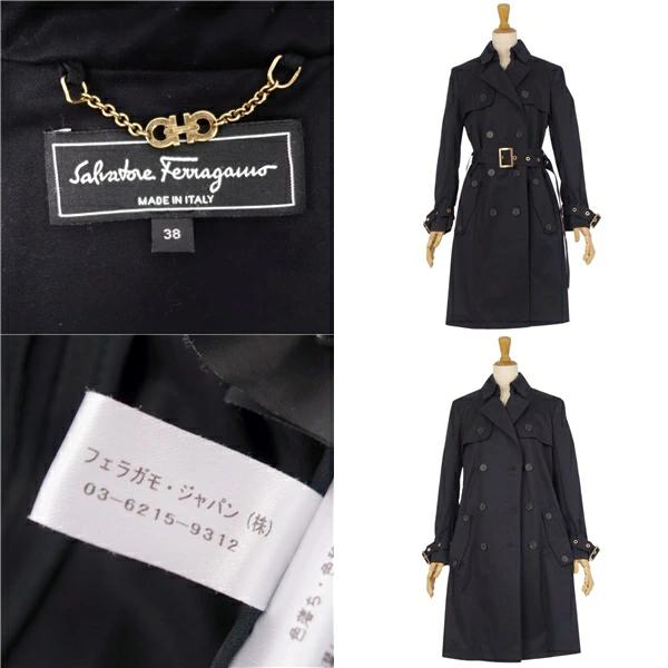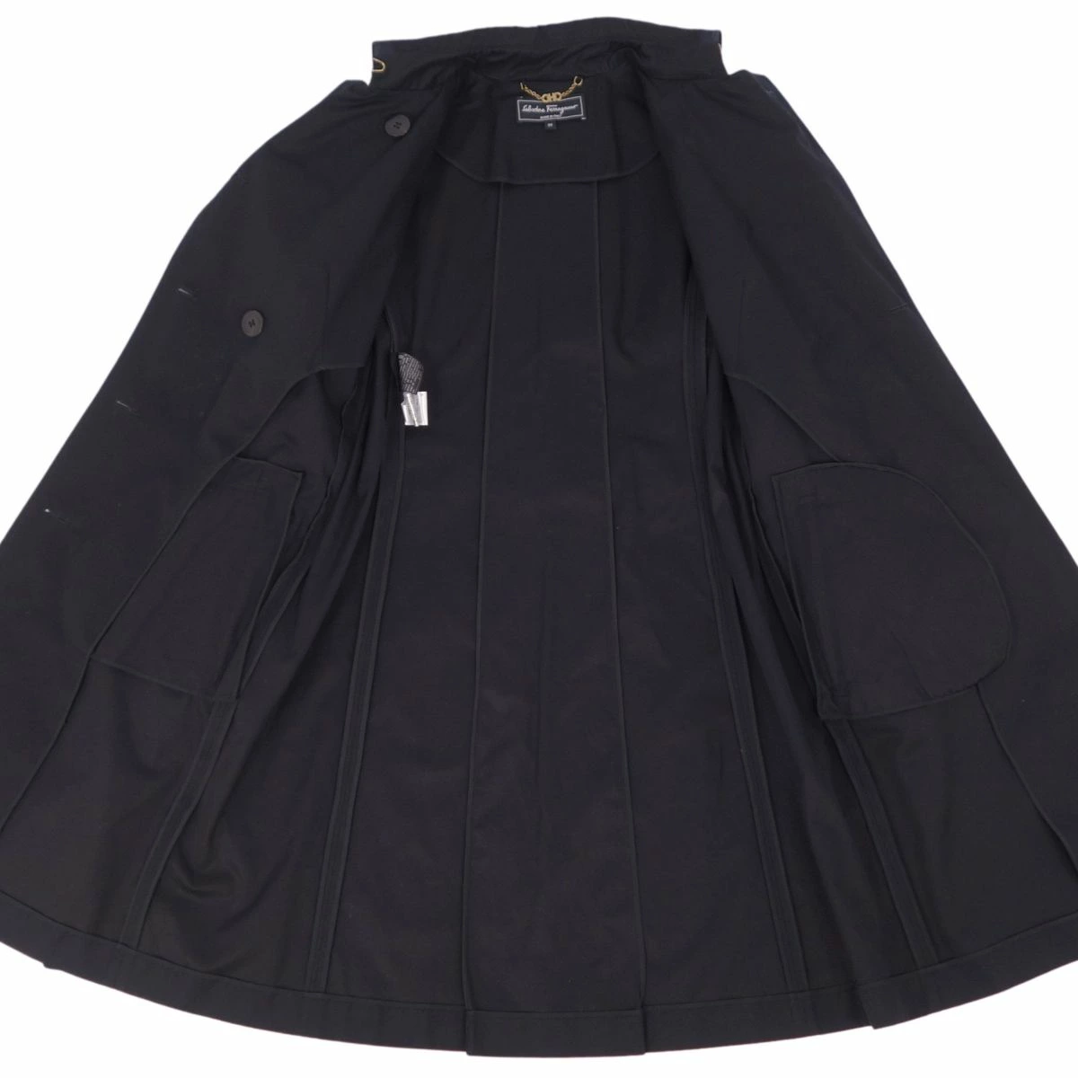 [Good Condition] Salvatore Ferragamo Coat Trench Coat 100% Cotton Plain Outerwear Women's Made in Italy Size 38 (M) Black [Used]