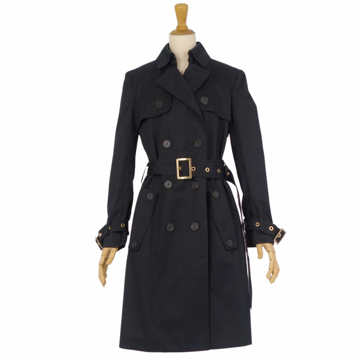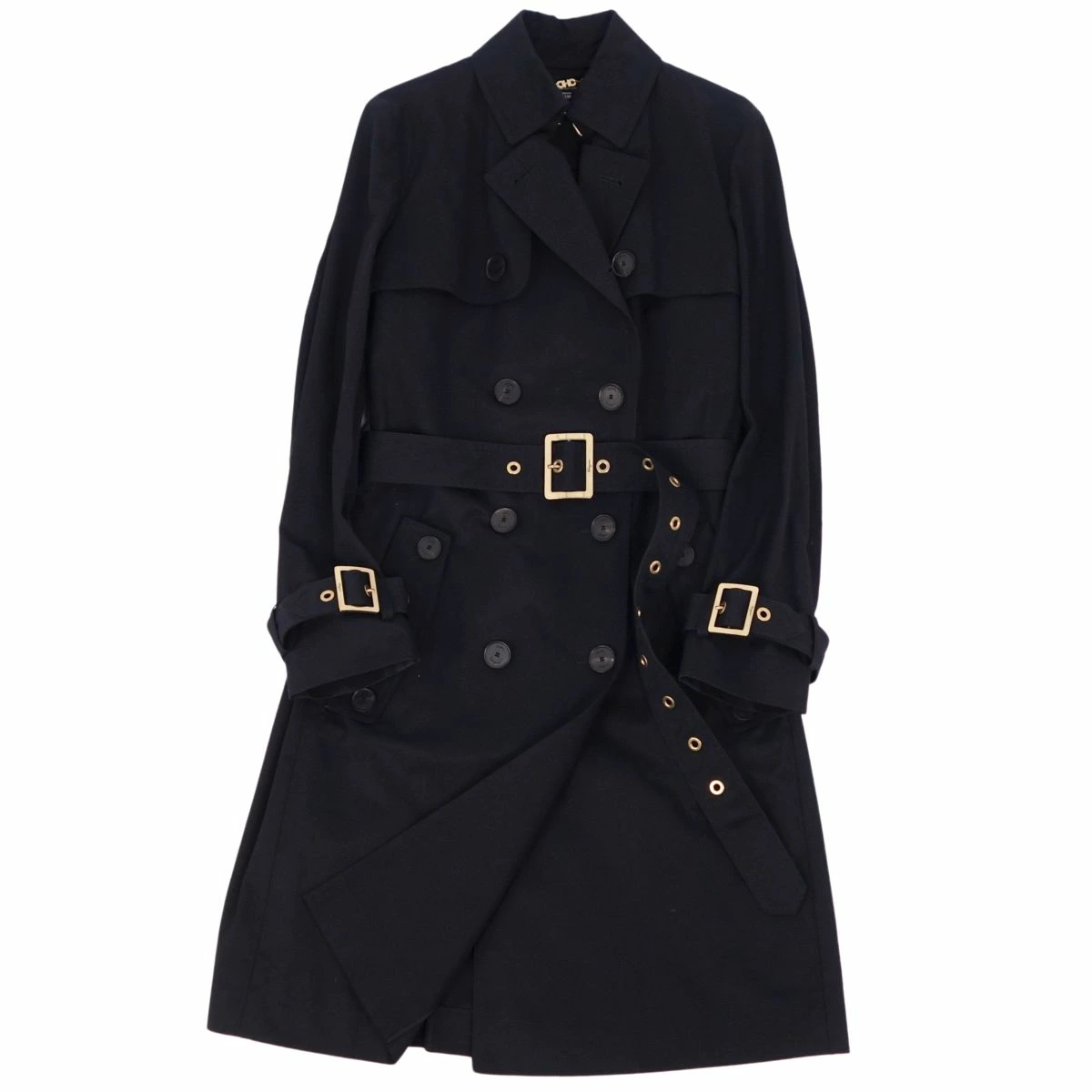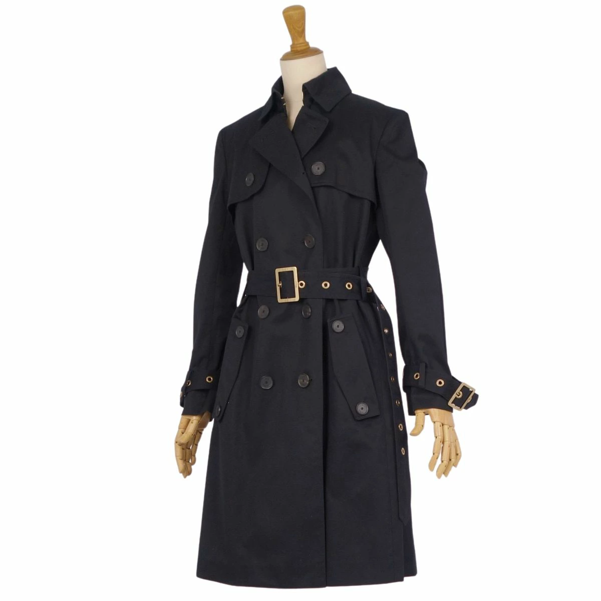 [Good Condition] Salvatore Ferragamo Coat Trench Coat 100% Cotton Plain Outerwear Women's Made in Italy Size 38 (M) Black [Used]