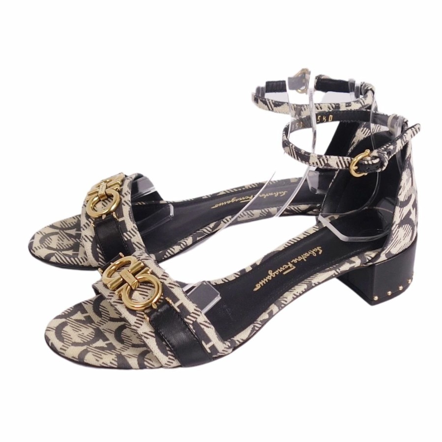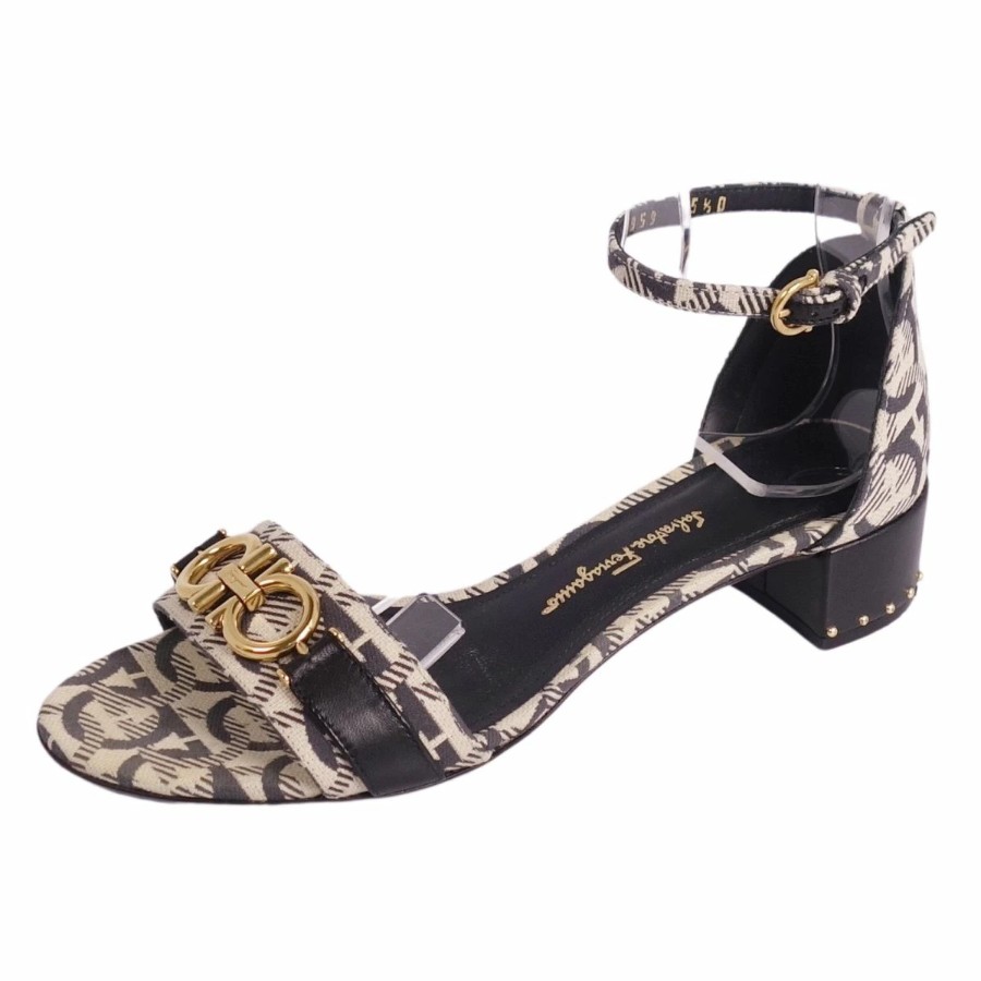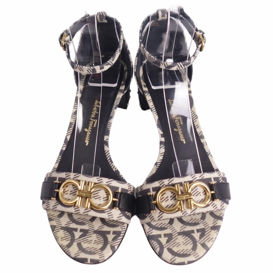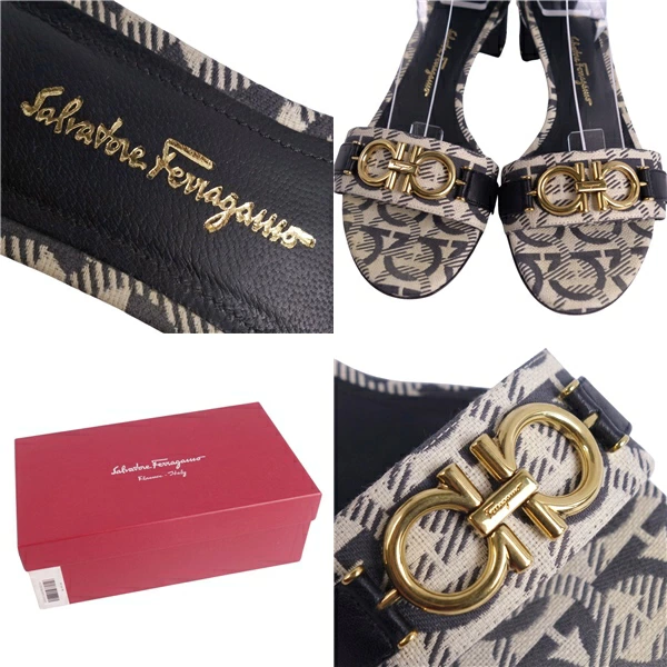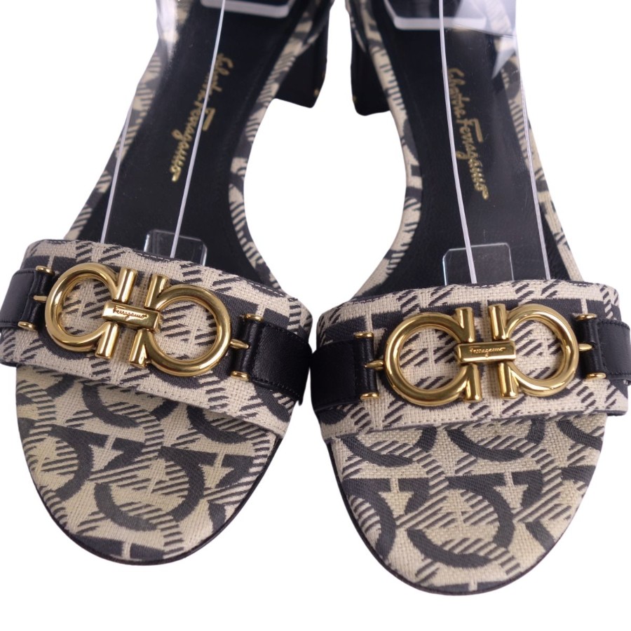 [Excellent Condition] Salvatore Ferragamo Sandals, Ankle Strap, Gancini Design, Canvas, Heel, Women's, Made in Italy, Size 5.5D (equivalent to 23cm), Beige [Pre-owned]