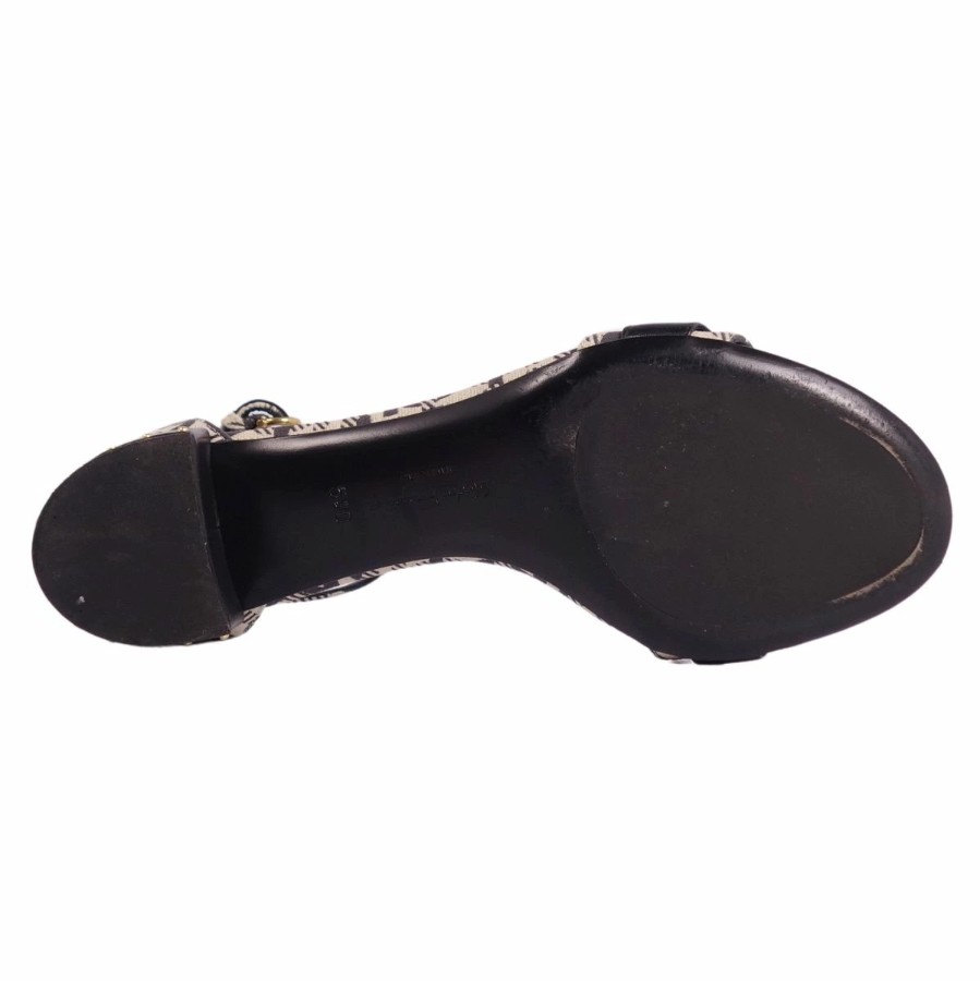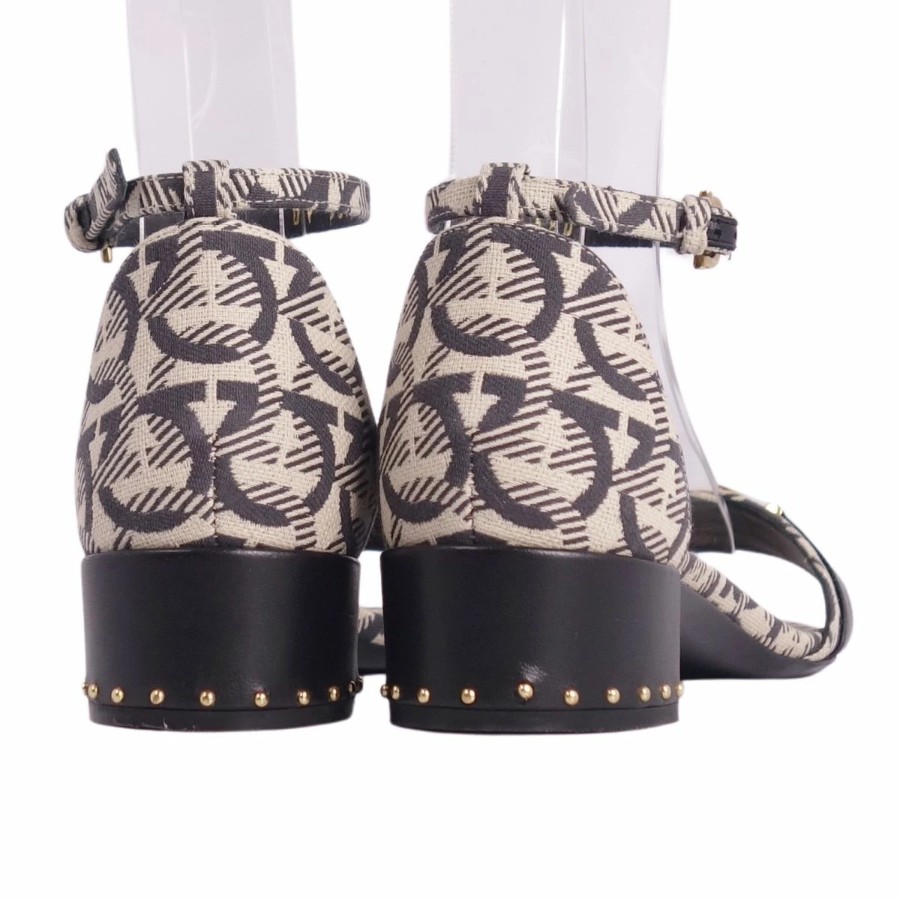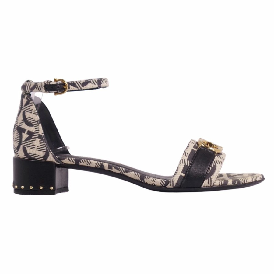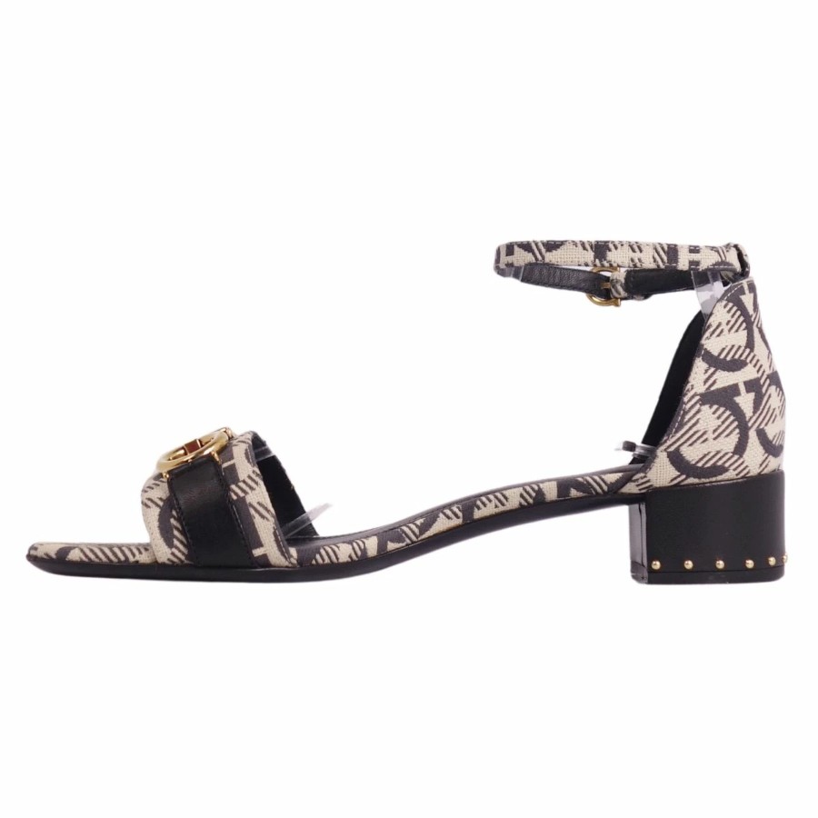 [Excellent Condition] Salvatore Ferragamo Sandals, Ankle Strap, Gancini Design, Canvas, Heel, Women's, Made in Italy, Size 5.5D (equivalent to 23cm), Beige [Pre-owned]