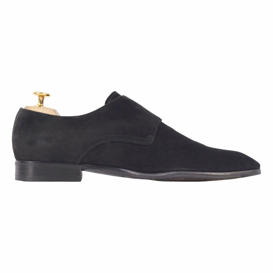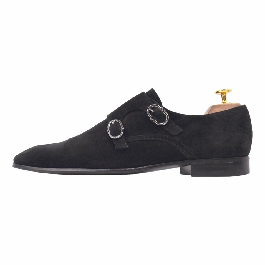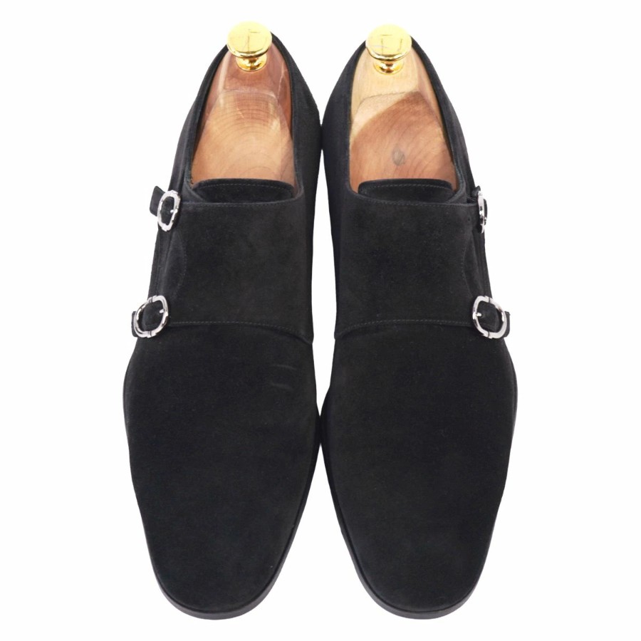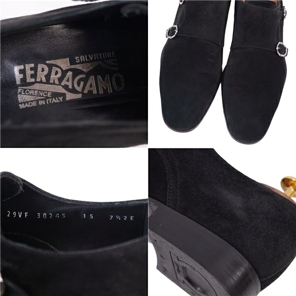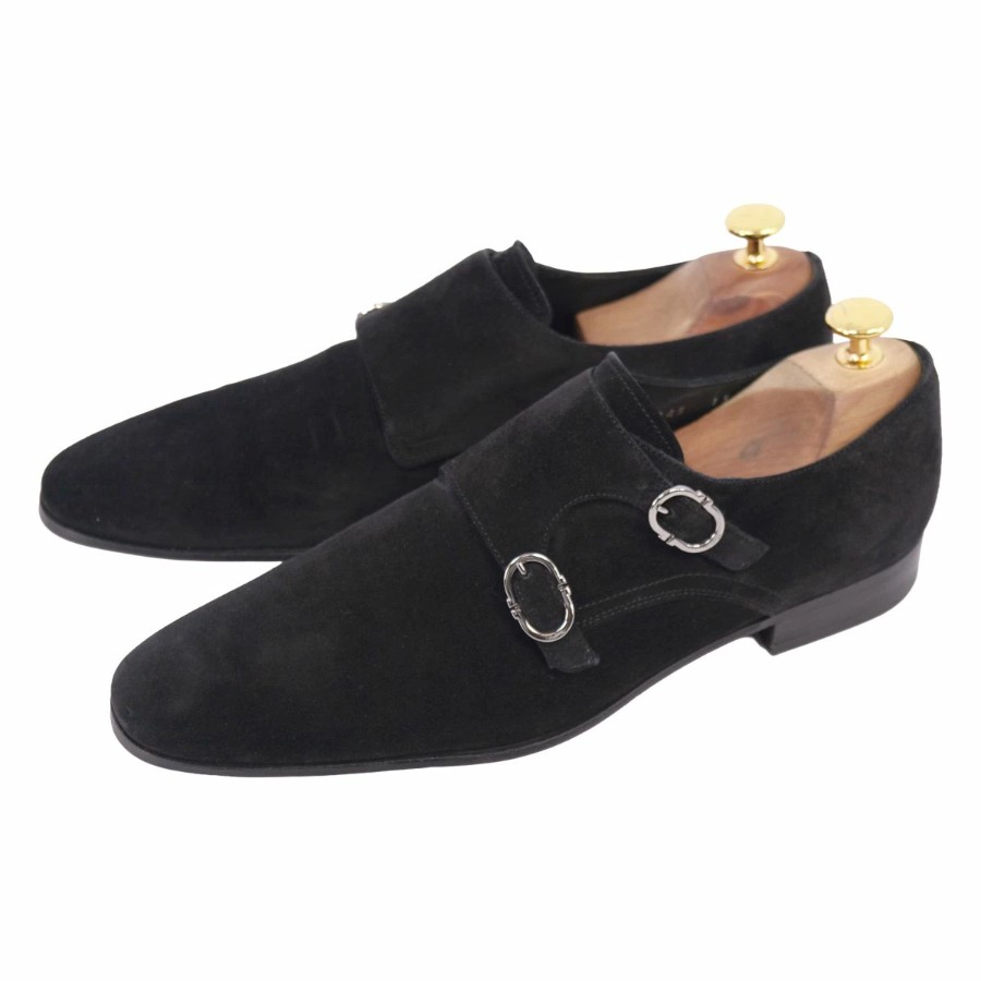 サルヴァトーレ フェラガモ Salvatore Ferragamo レザーシューズ ダブルモンクストラップ スウェードレザー シューズ 革靴 メンズ イタリア製 ブラック サイズ7.5EE(25.5cm相当)