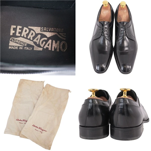 サルヴァトーレ フェラガモ Salvatore Ferragamo レザーシューズ ダービーシューズ ビジネスシューズ 革靴 メンズ イタリア製 ブラック サイズ6.5EE(25cm相当)