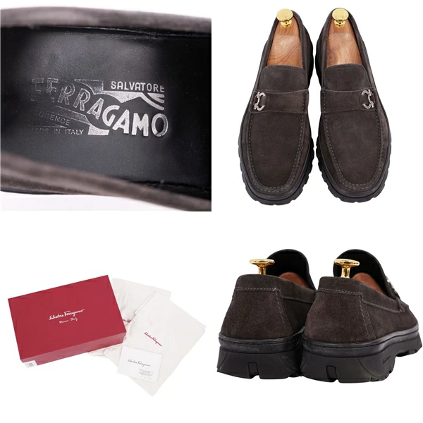 サルヴァトーレ フェラガモ Salvatore Ferragamo ローファー モカシン ガンチーニ金具 スウェードレザー シューズ 革靴 メンズ ダークブラウン サイズ6.5(25cm相当)