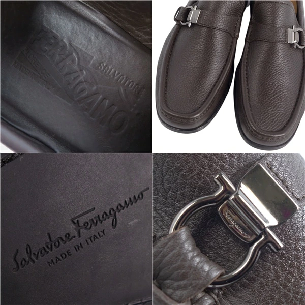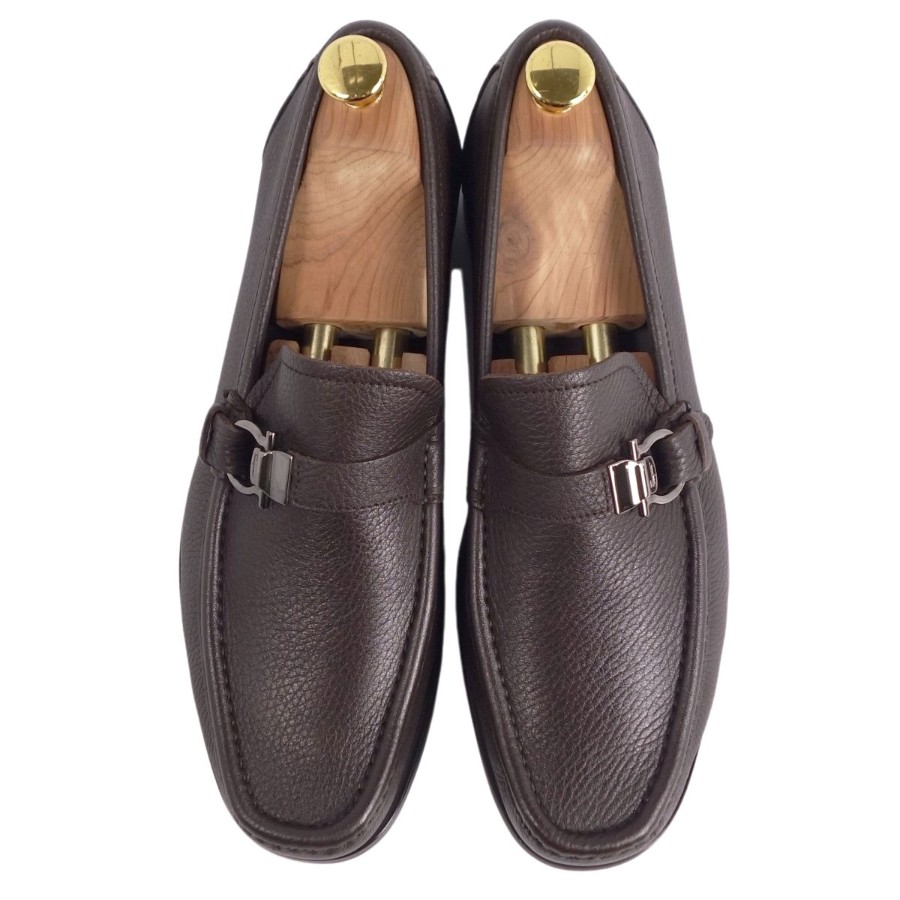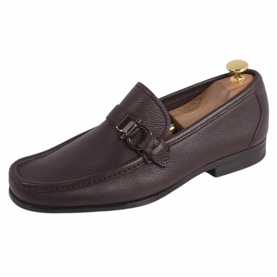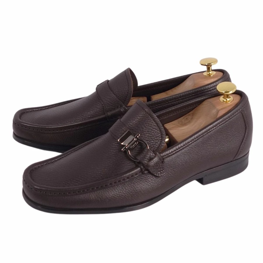 [Excellent Condition] Salvatore Ferragamo Loafers Moccasins with Gancini Hardware, Business Shoes, Leather Shoes, Men's, Made in Italy, Size 6.5 (Equivalent to 25cm), Brown [Pre-owned]