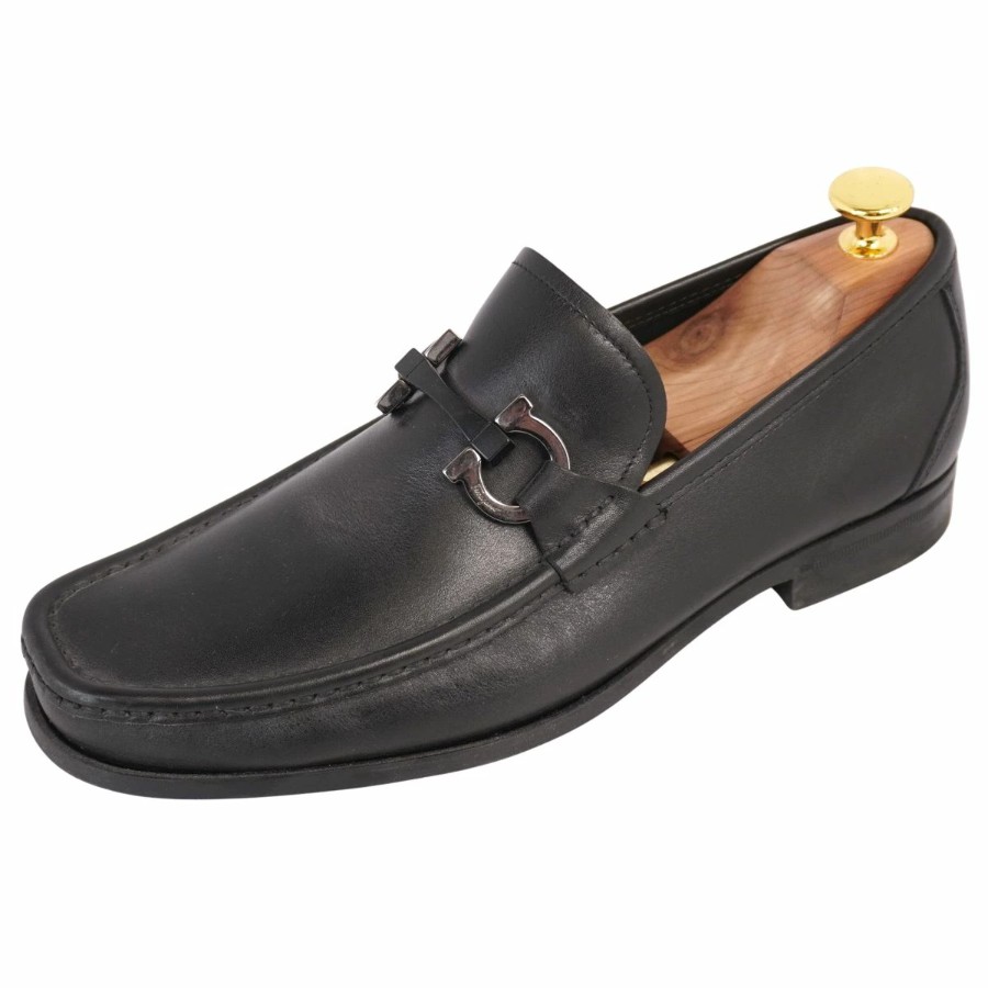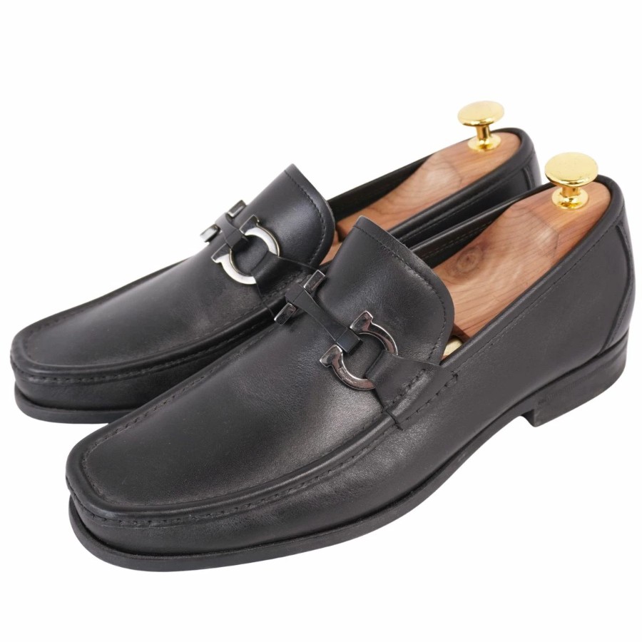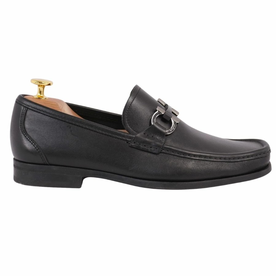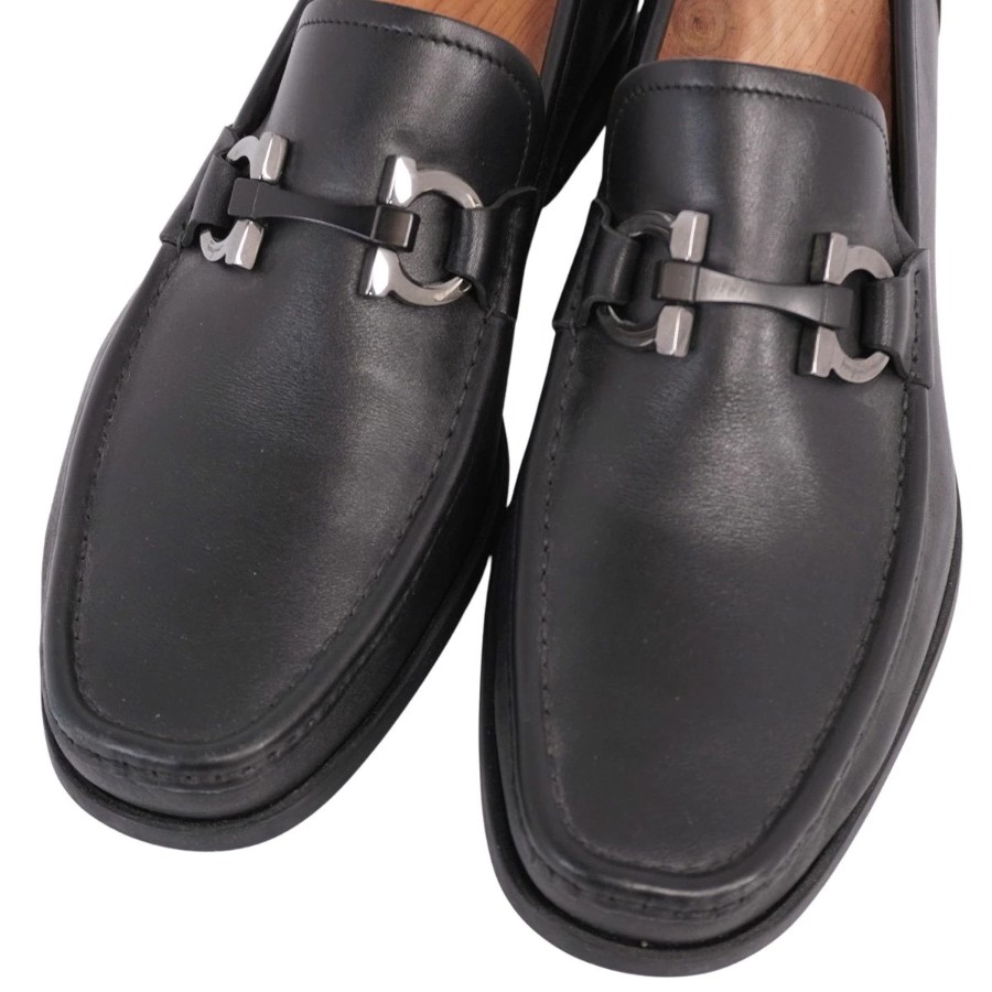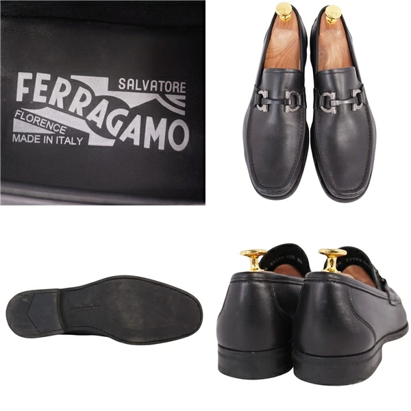 サルヴァトーレ フェラガモ Salvatore Ferragamo ローファー モカシン ガンチーニ ビジネスシューズ 革靴 メンズ イタリア製 ブラック サイズ5.5EEE(24cm相当)