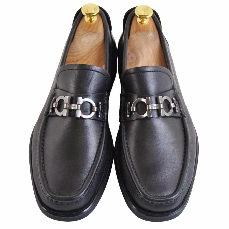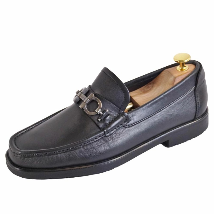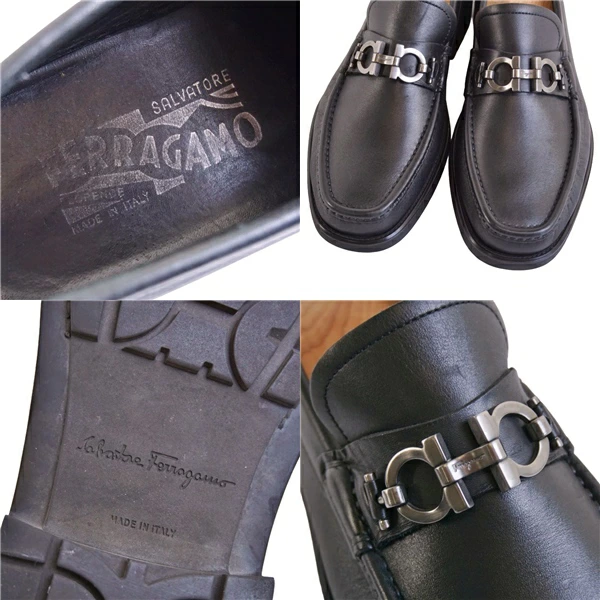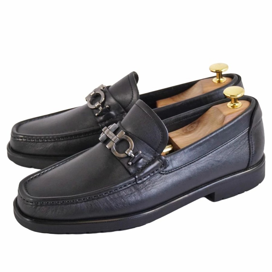 サルヴァトーレ フェラガモ Salvatore Ferragamo ローファー モカシン ガンチーニ ビジネスシューズ 革靴 メンズ イタリア製 ブラック サイズ6EEE(24.5cm相当)