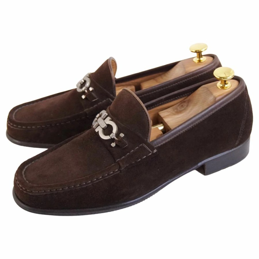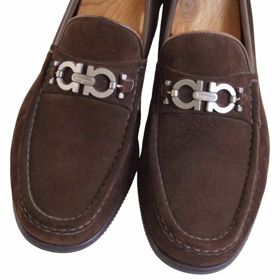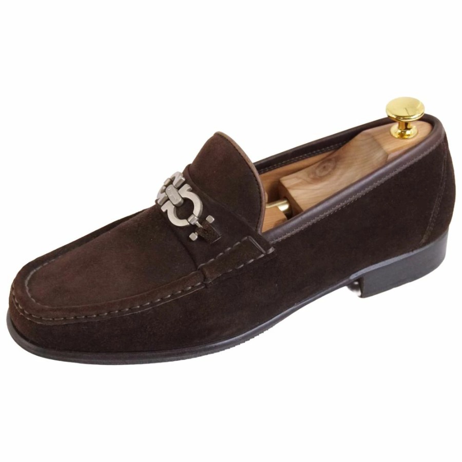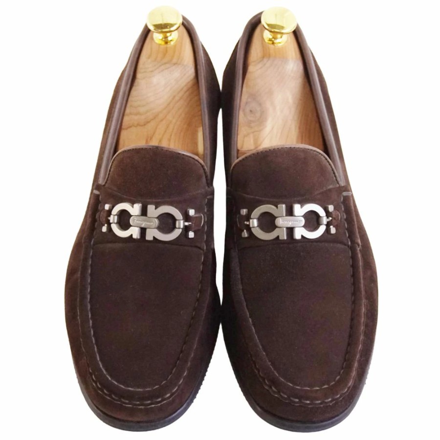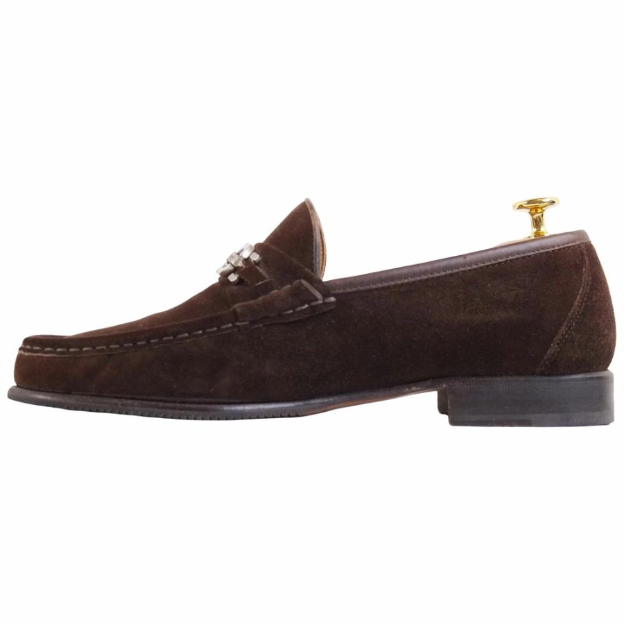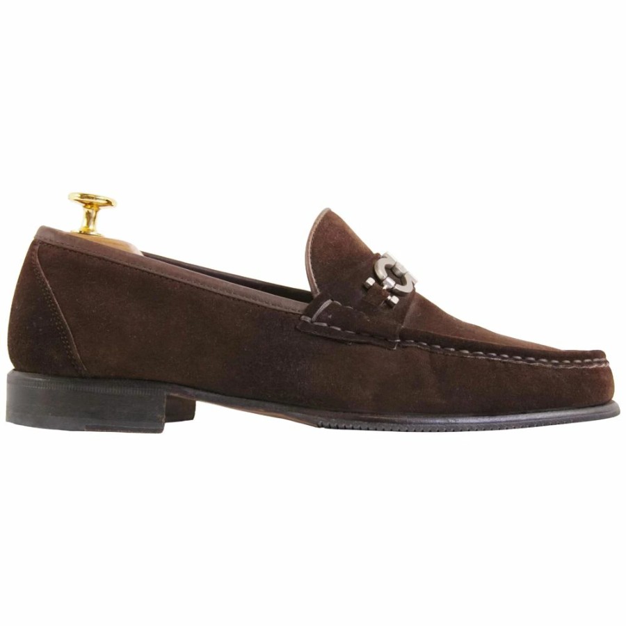 サルヴァトーレ フェラガモ Salvatore Ferragamo ローファー モカシン ビジネスシューズ ガンチーニ スウェードレザー 革靴 メンズ イタリア製 ブラウン サイズ7.5(25.5cm相当)