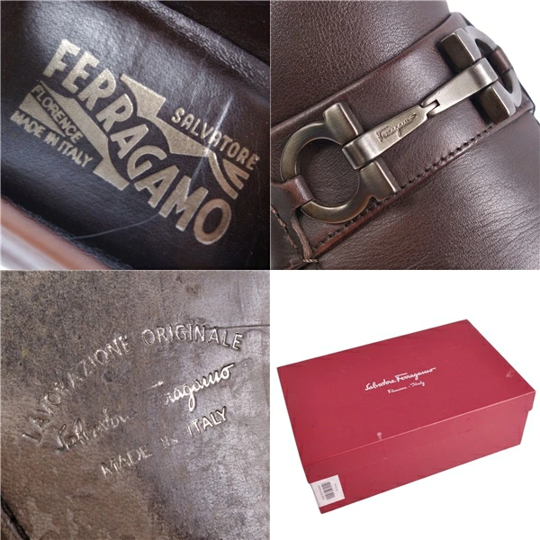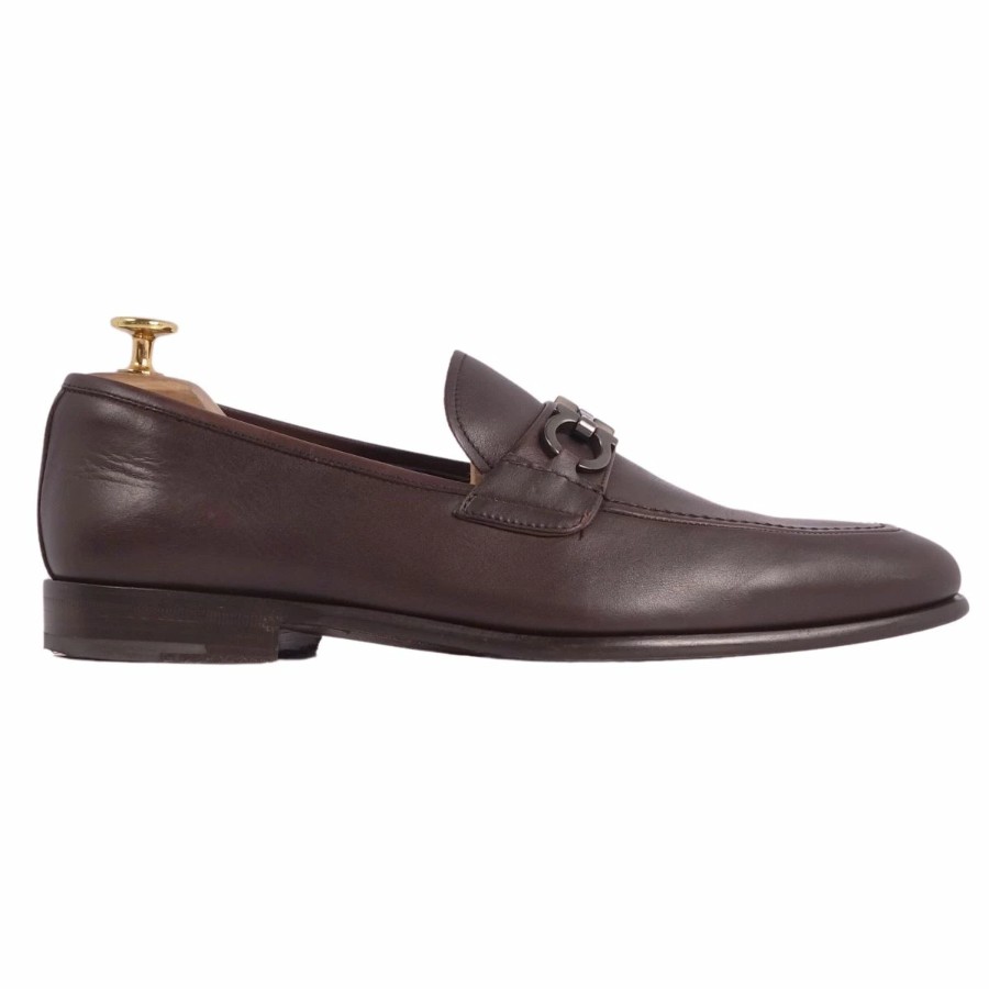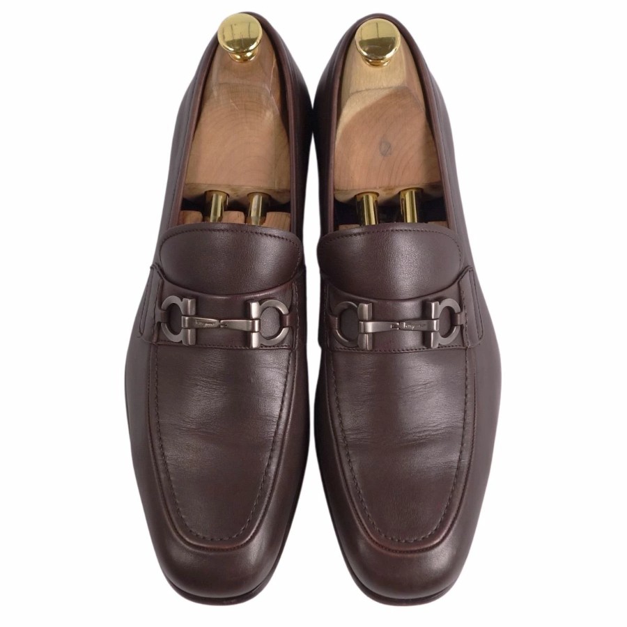 サルヴァトーレ フェラガモ Salvatore Ferragamo ローファー LAVORAZIONE モカシン ガンチーニ ビジネスシューズ 革靴 メンズ イタリア製 ブラウン サイズ8.5EE(26.5cm相当)