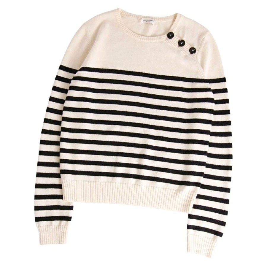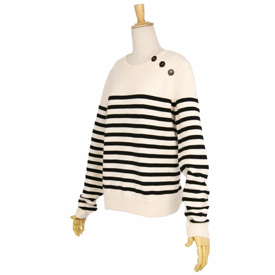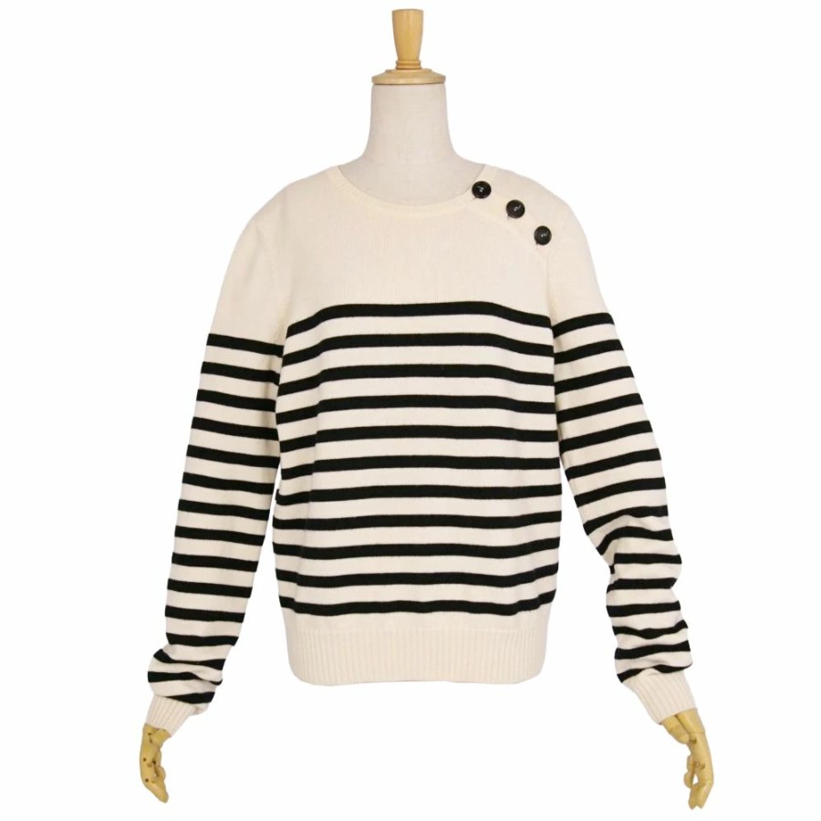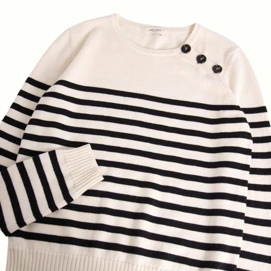 サンローラン パリ SAINT LAURENT PARIS ニット セーター ロングスリーブ 長袖 ボーダー ウール トップス レディース イタリア製 ベージュ サイズM
