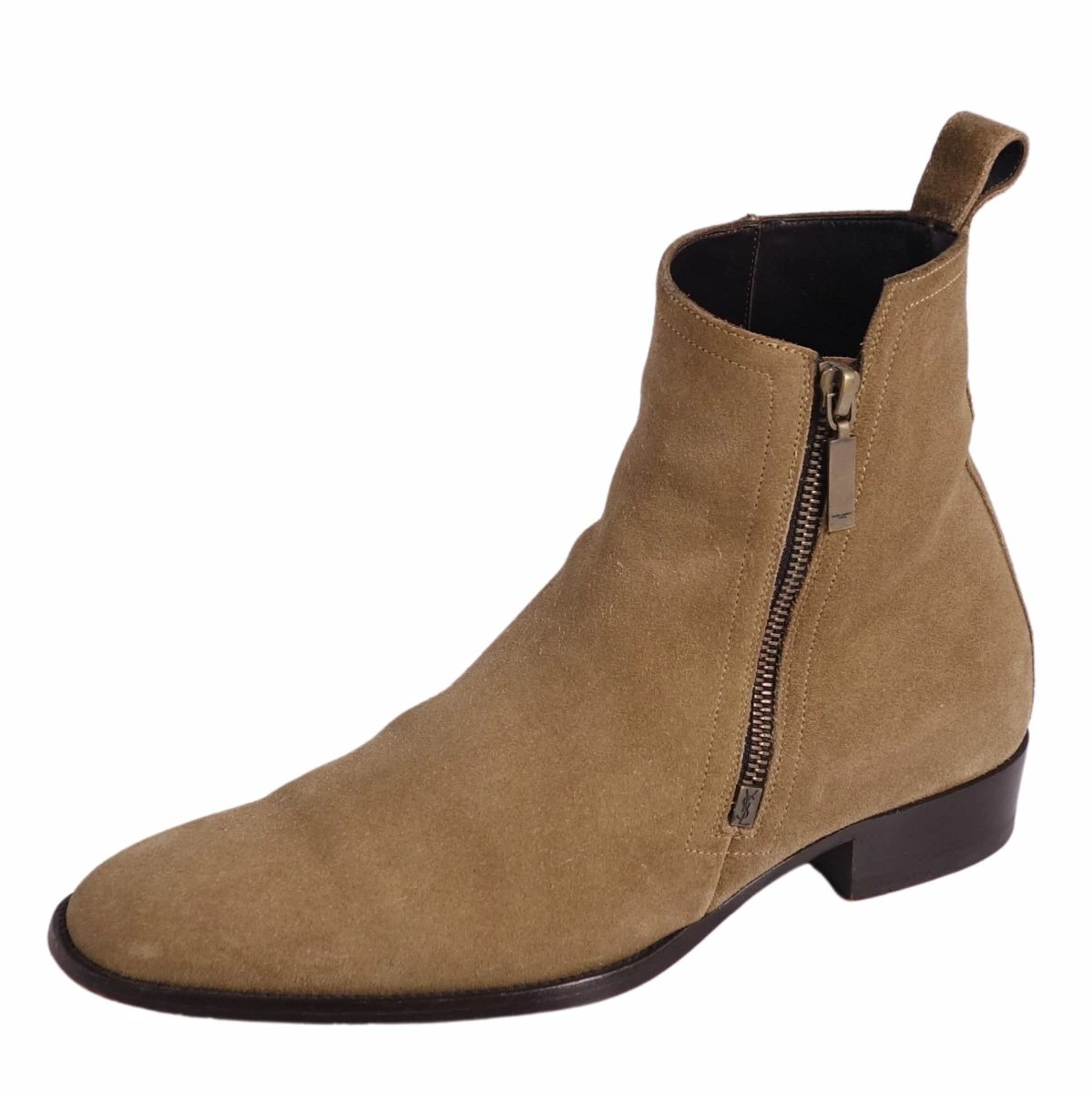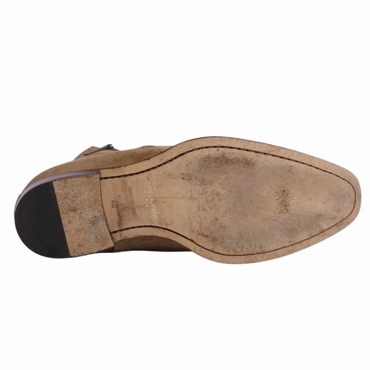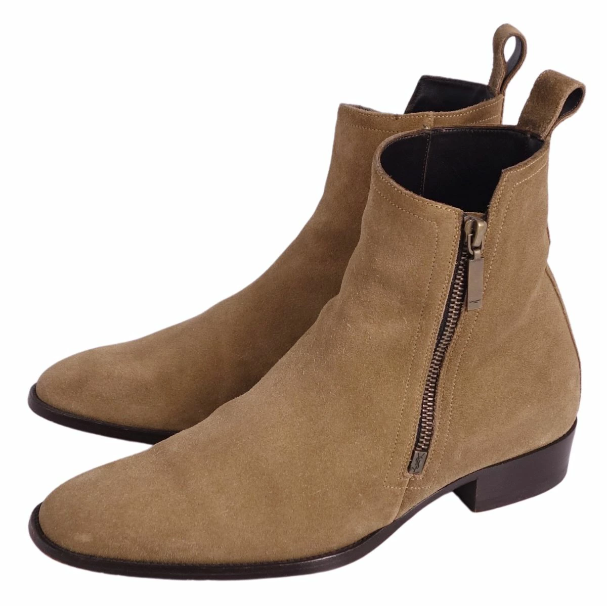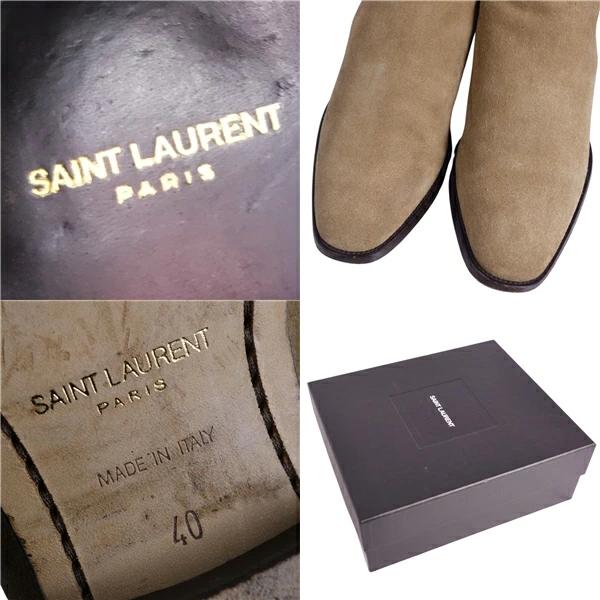 Pre-owned Saint Laurent Paris Chelsea boots in excellent condition. Side-zip suede leather, men's, made in Italy, size 40 (equivalent to 25cm), beige.