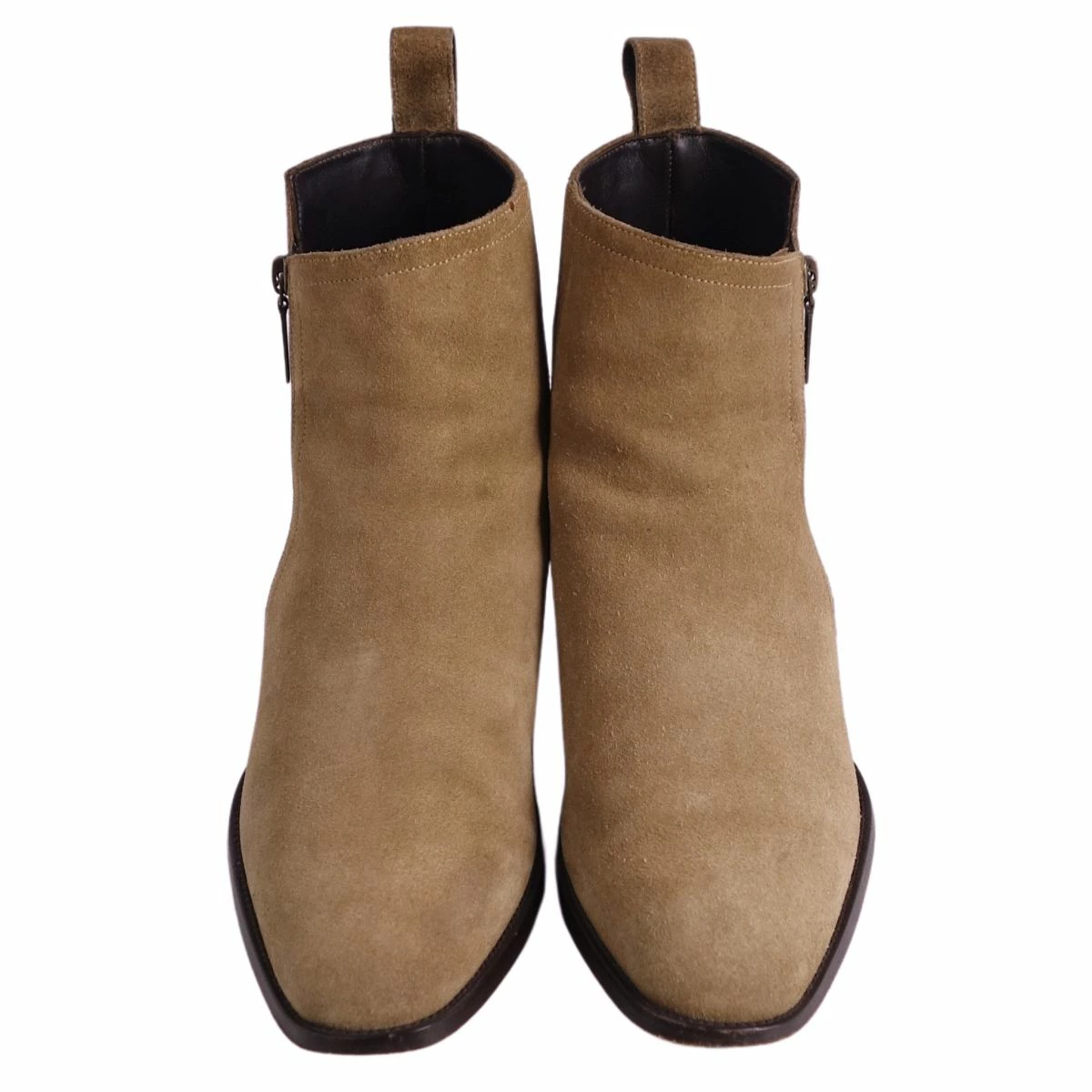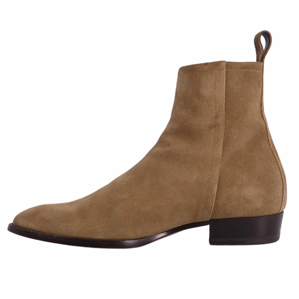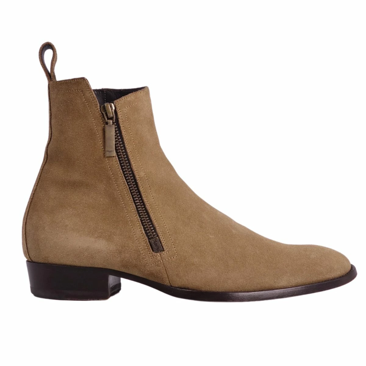 Pre-owned Saint Laurent Paris Chelsea boots in excellent condition. Side-zip suede leather, men's, made in Italy, size 40 (equivalent to 25cm), beige.