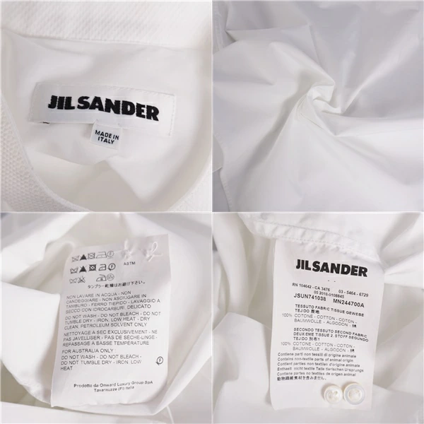 ジルサンダー JIL SANDER シャツ 2018 スタンドカラー ロングスリーブ 長袖 コットン トップス メンズ イタリア製 ホワイト サイズ37(14.5)
