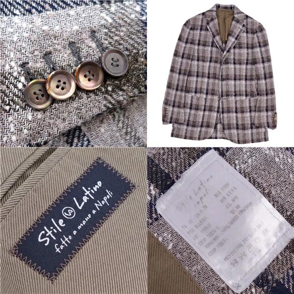 [Good Condition] Stile Latino Spring/Summer Jacket Linen Tailored Jacket Single Check Pattern Tweed Outerwear Men's Size 42 (equivalent to XS) Gray [Used]