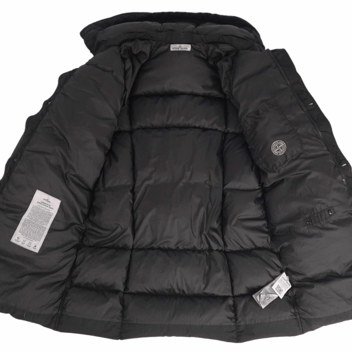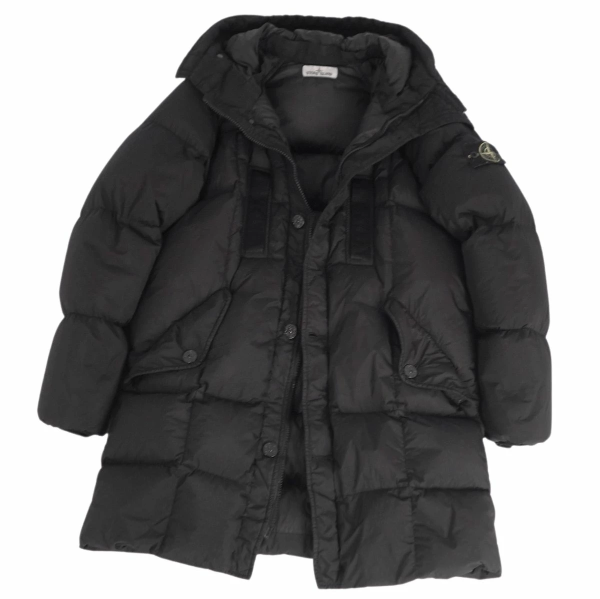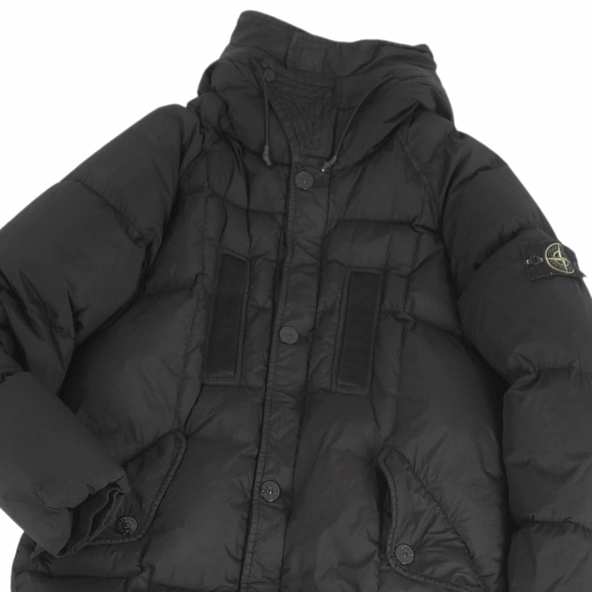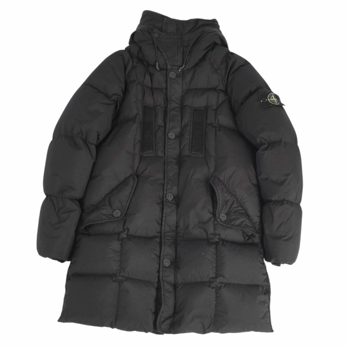 [Excellent Condition] Stone Island Down Coat, Long Coat with Hood, Nylon, Men's, Size S, Black [Pre-owned]