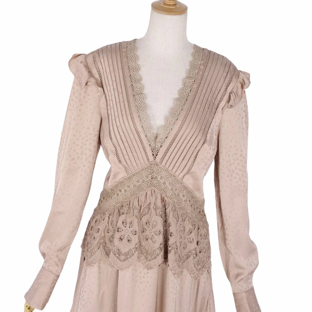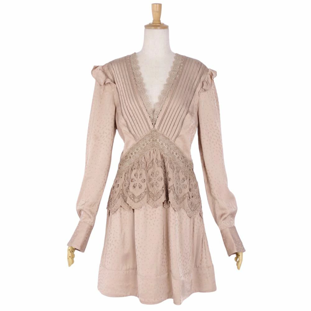 [Good Condition] Self-Portrait One-piece Long Sleeve Lace Top Women's UK8 (M size) Beige [Used]