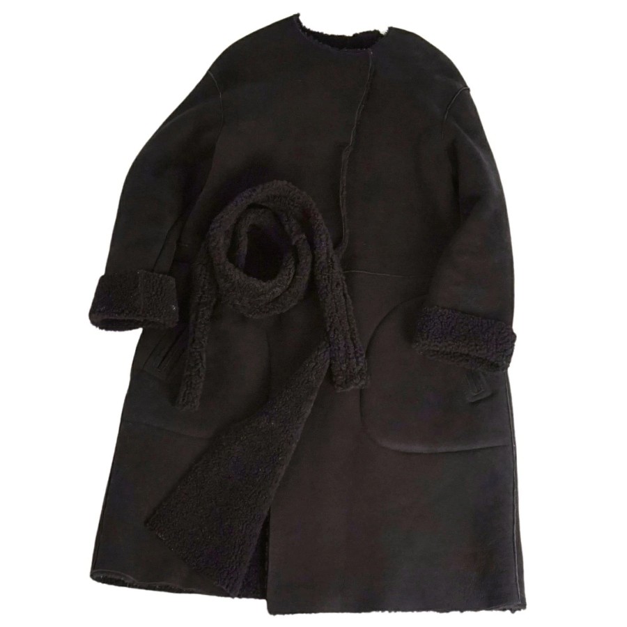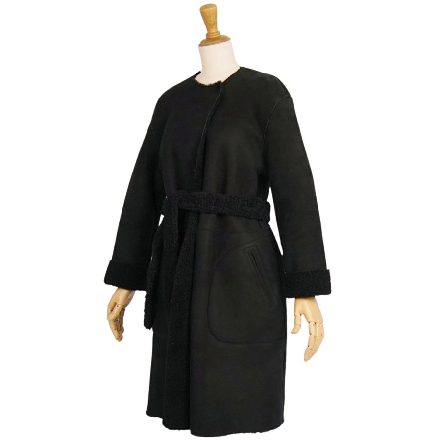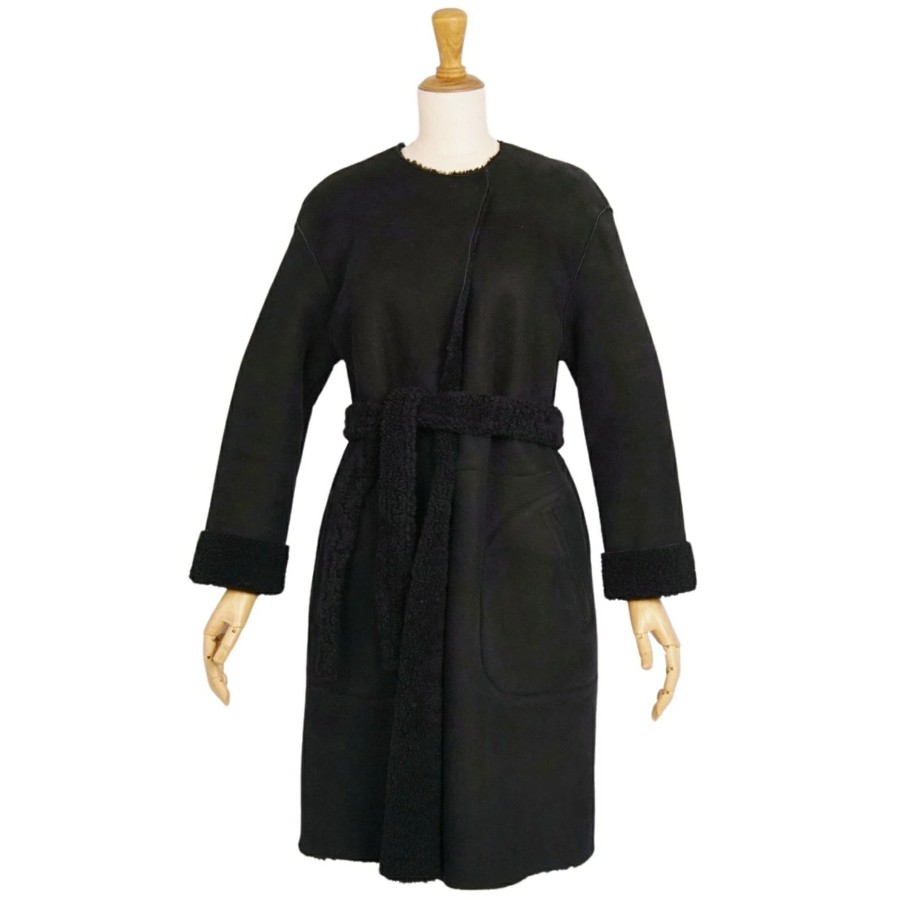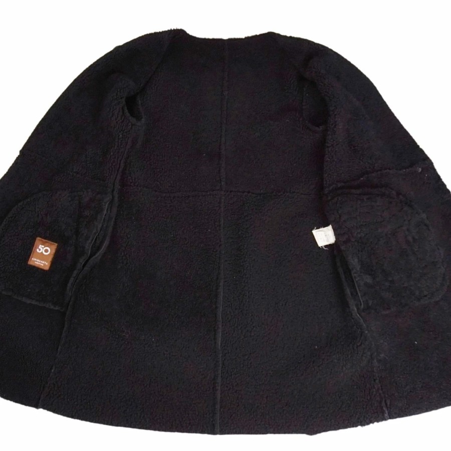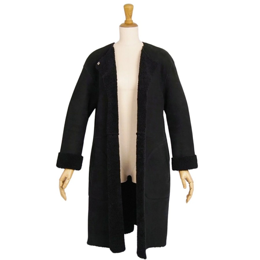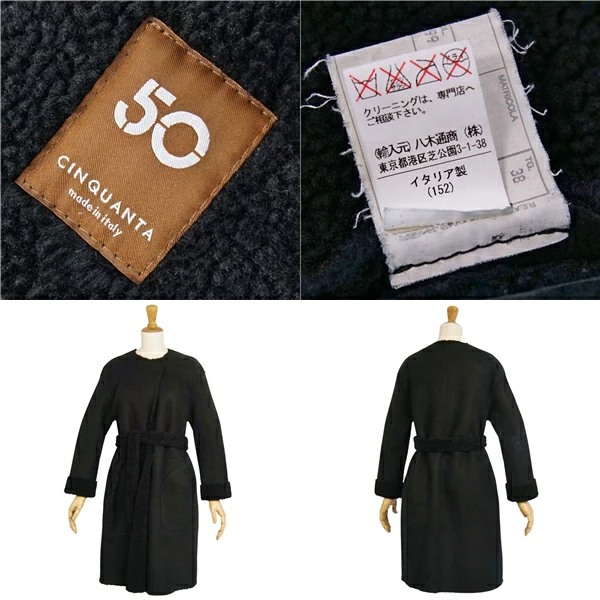 チンクアンタ Cinquanta コート ムートンコート ノーカラーコート 無地 アウター レディース ブラック サイズ38(S相当)