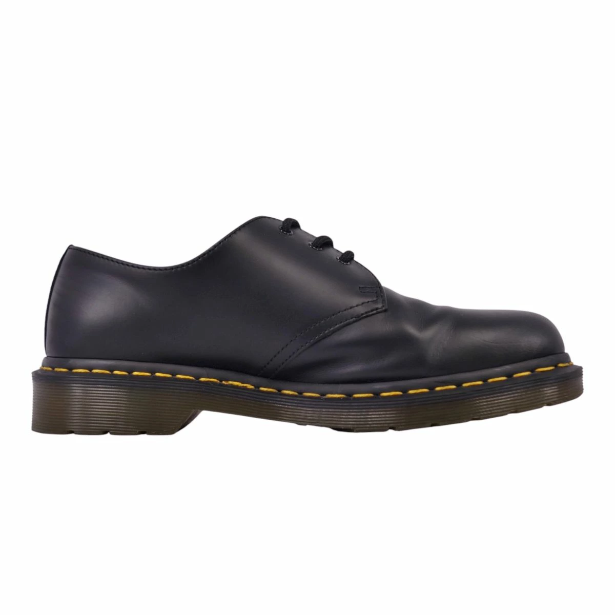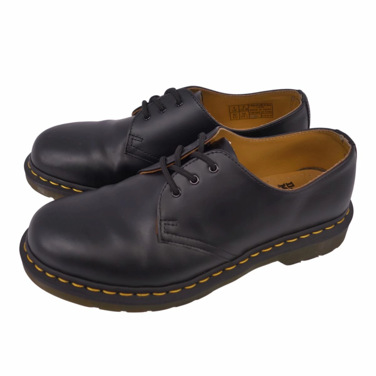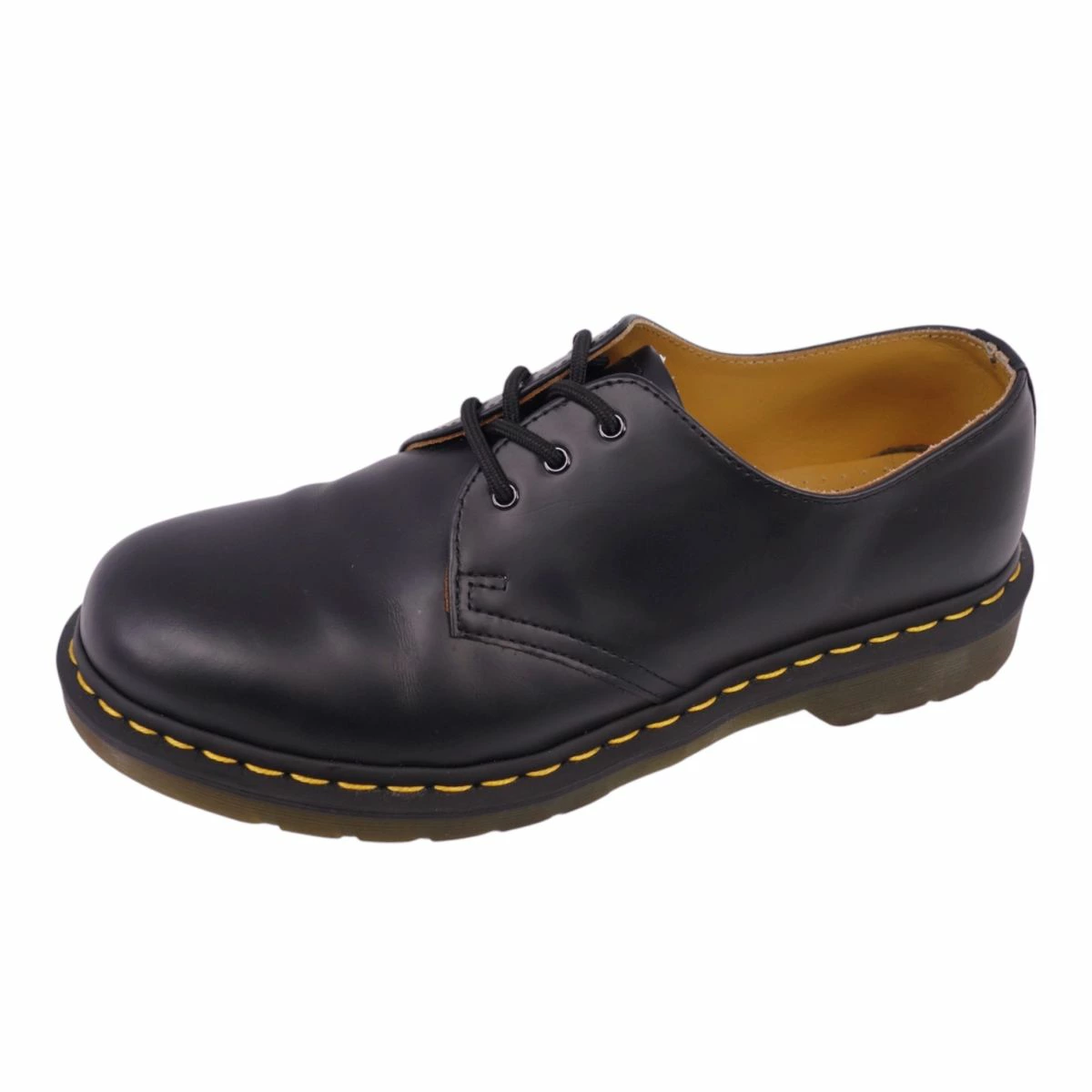 Pre-owned Dr. Martens Men's Leather Derby Shoes, Lace-Up, 3-Eye, Low-Top, Size UK8 (equivalent to 27cm), Black. Excellent Condition.