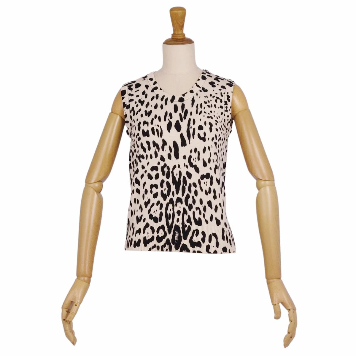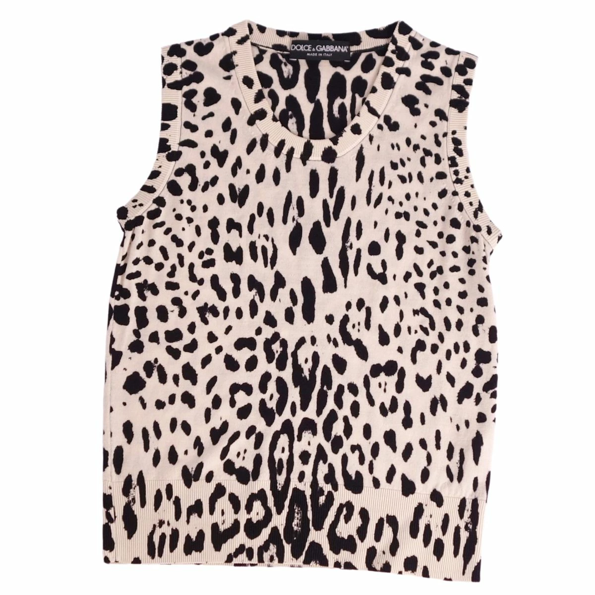 Pre-owned Dolce & Gabbana women's sleeveless knit sweater with an all-over print, made in Italy, size 36 (equivalent to S), beige. Excellent condition.
