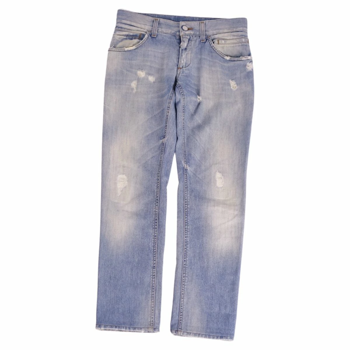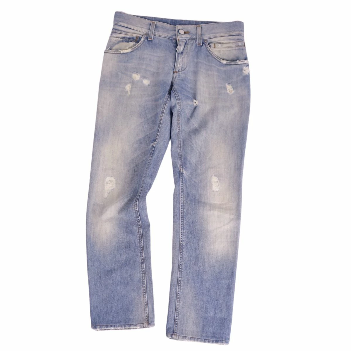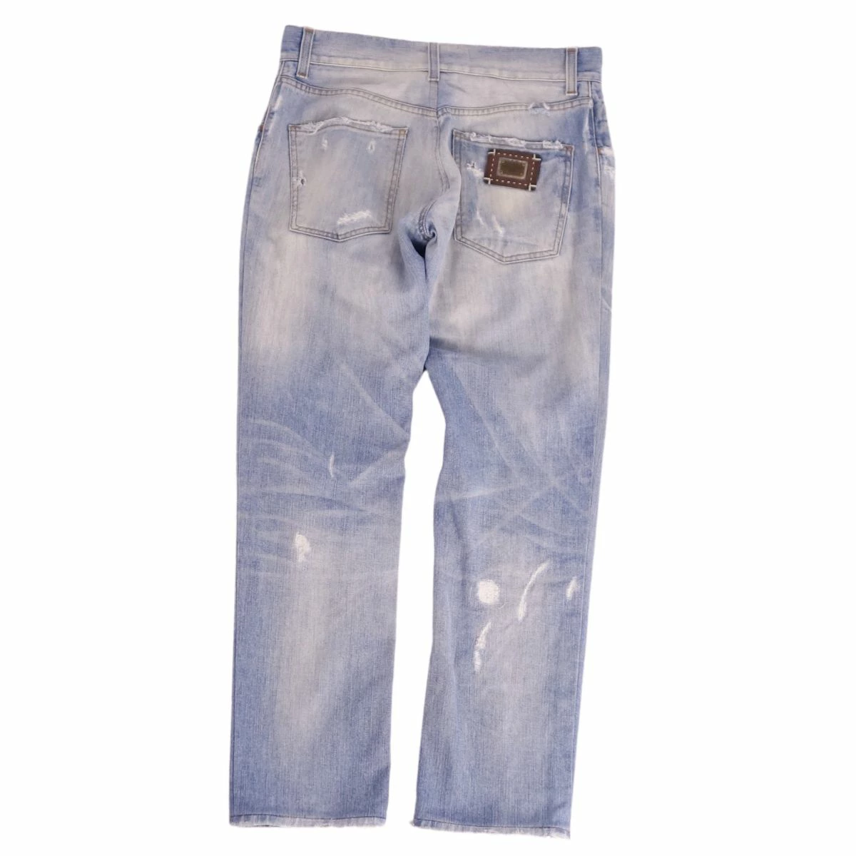 Pre-owned Dolce & Gabbana Men's Distressed Cotton Denim Pants in Indigo Blue, Size 44, Made in Italy.