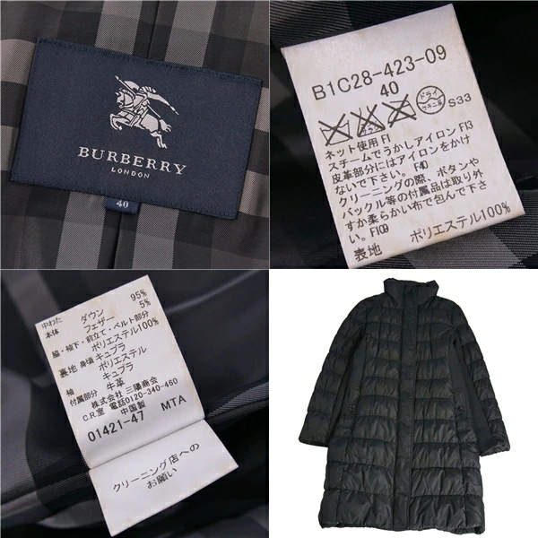 バーバリー ロンドン BURBERRY LONDON コート ダウンコート ロングコート 無地 ジップアップ アウター レディース ブラック サイズ40(M相当)