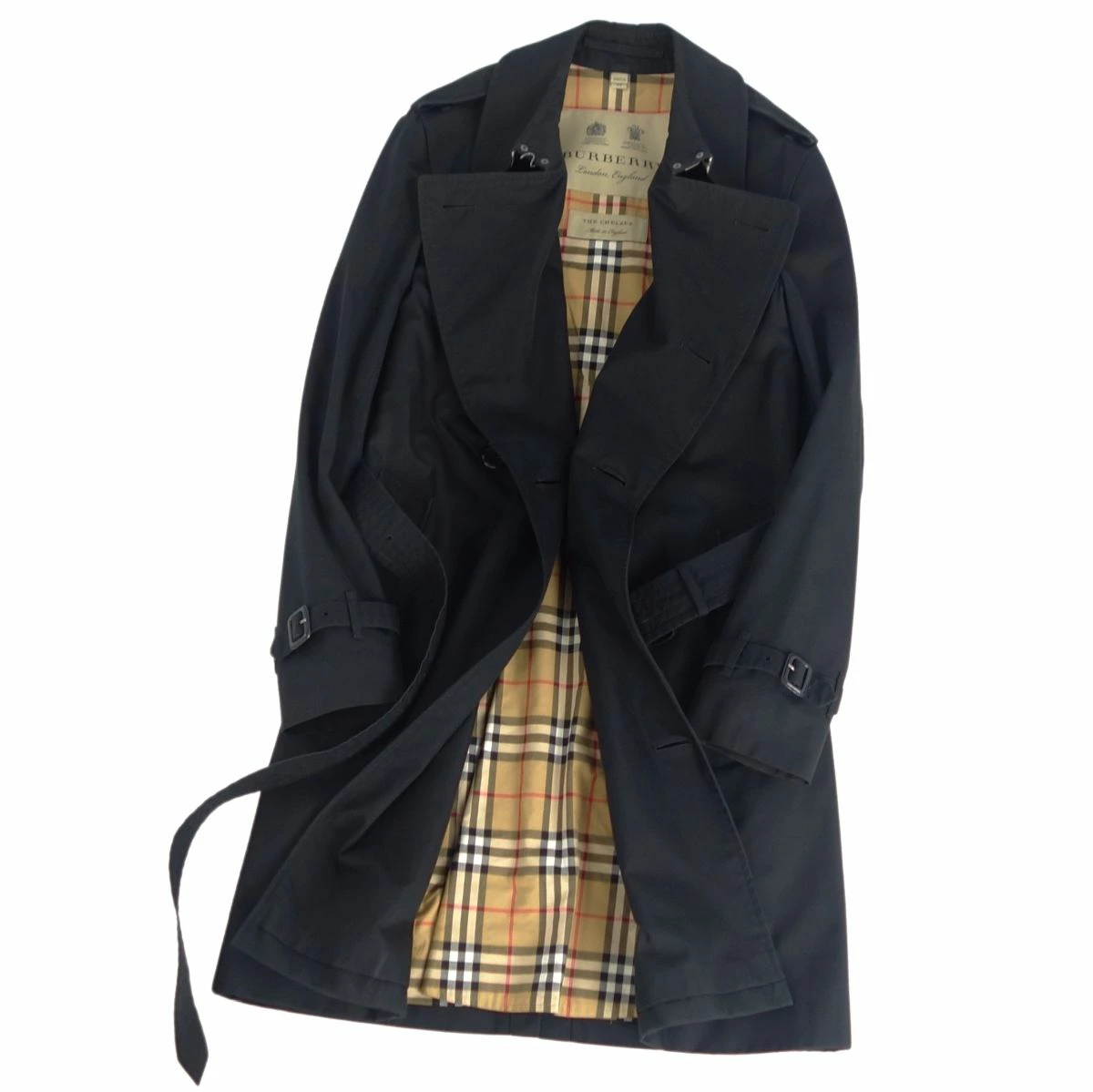 ■商品名バーバリー BURBERRY コート 英国製 THE CHELSEA チェルシー トレンチコート 裏チェック コットン100% アウター メンズ ブラック サイズ44(S相当)■状態説明・英国を追求した洗練されたシャープなシルエットが魅力的なBURBERRYのトレンチコート「THE CHELSEA」です♪・クラシカルで象徴的なコットンギャバジン素材を使用し、すっきりとしたシルエットに仕上げられた一品。・襟を立てればさりげなくヴィンテージチェックをのぞかせてお使い頂けます◎・イングランド製・国内正規取扱品です。・USEDですが気になるようなキズや汚れなどはなく全体的にキレイな状態です!【季節感:春秋冬】【付属品:ベルト】■素材コットン100%■カラーブラック■表記サイズ44(S相当)■実寸サイズ着丈:約94cm身幅:約50cm肩幅:約43cm袖丈:約64cm■状態ランクA 使用感の少ない全体的にキレイなUSED品■店舗管理番号ce07er-rm10r07837mens_black mens_s