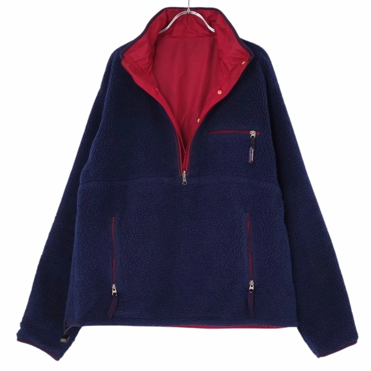 ■商品名パタゴニア PATAGONIA ジャケット USA製 95年 Glissade Pullover 29361 グリセードプルオーバー リバーシブル アウター メンズ レッド/ネイビー サイズM■状態説明・Patagonia「Glissade Pullover」です♪・フリース素材を使用し、防風性を備えた一着です◎・アメリカ製・ナイロン側にスレ汚れが御座いますが、ヴィンテージの中ではキレイな状態です!【季節感:秋冬】【付属品:なし】■素材表地:ポリエステル100% 裏地:ナイロン100%■カラーレッド/ネイビー■表記サイズM■実寸サイズ着丈:約70cm身幅:約58cm肩幅:約50cm袖丈:約63cm■状態ランクAB 使用感があるが、傷や汚れの気にならない状態■店舗管理番号ce03er-rm10e30222mens_red mens_m