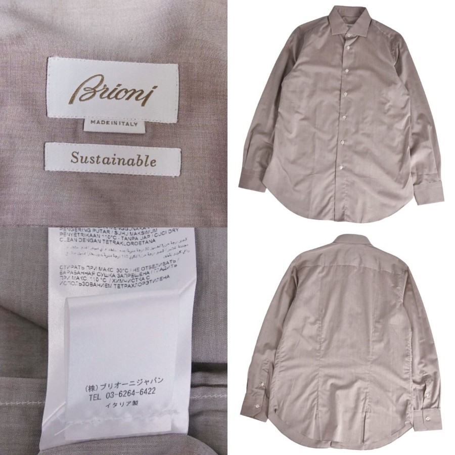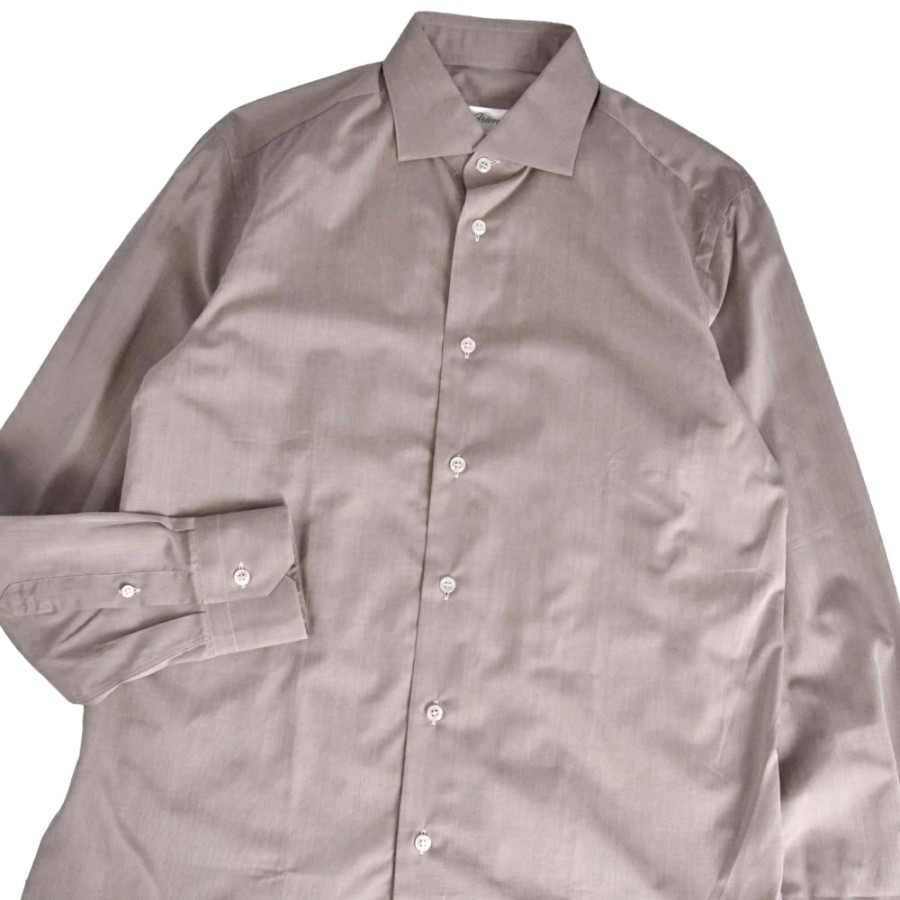 ブリオーニ Brioni シャツ ロングスリーブ 長袖 コットン ポプリン トップス メンズ イタリア製 グレージュ サイズ40(15 3/4)