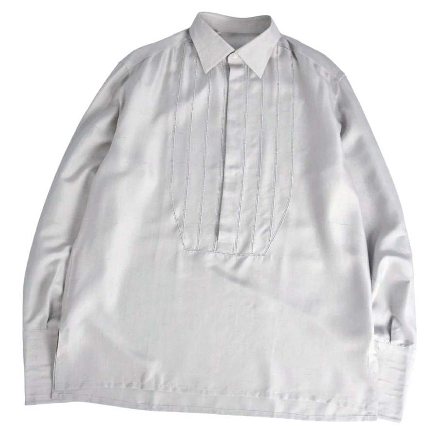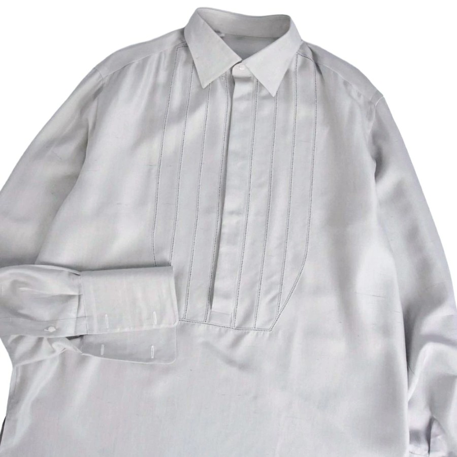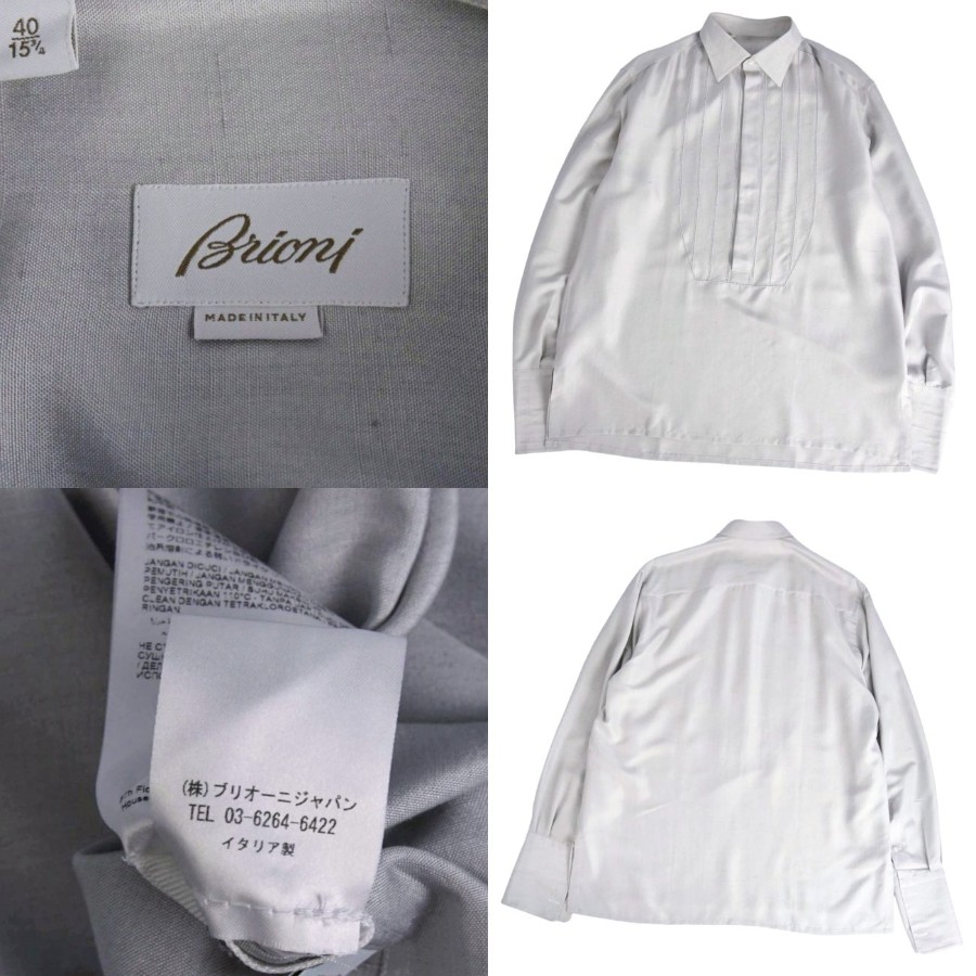 ブリオーニ Brioni シャツ ロングスリーブ 長袖 シルク トップス メンズ イタリア製 グレー サイズ40(15 3/4)