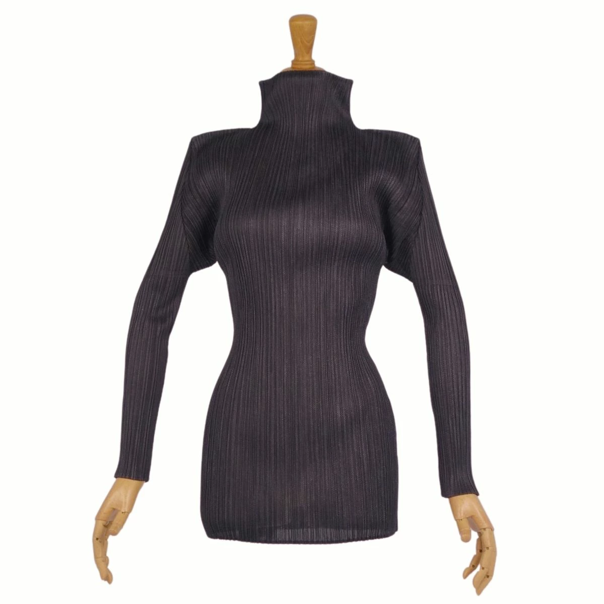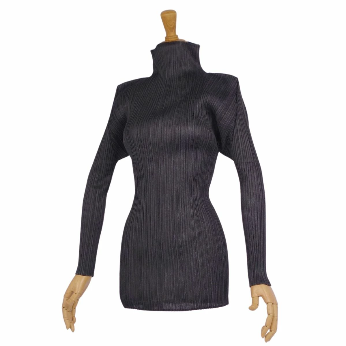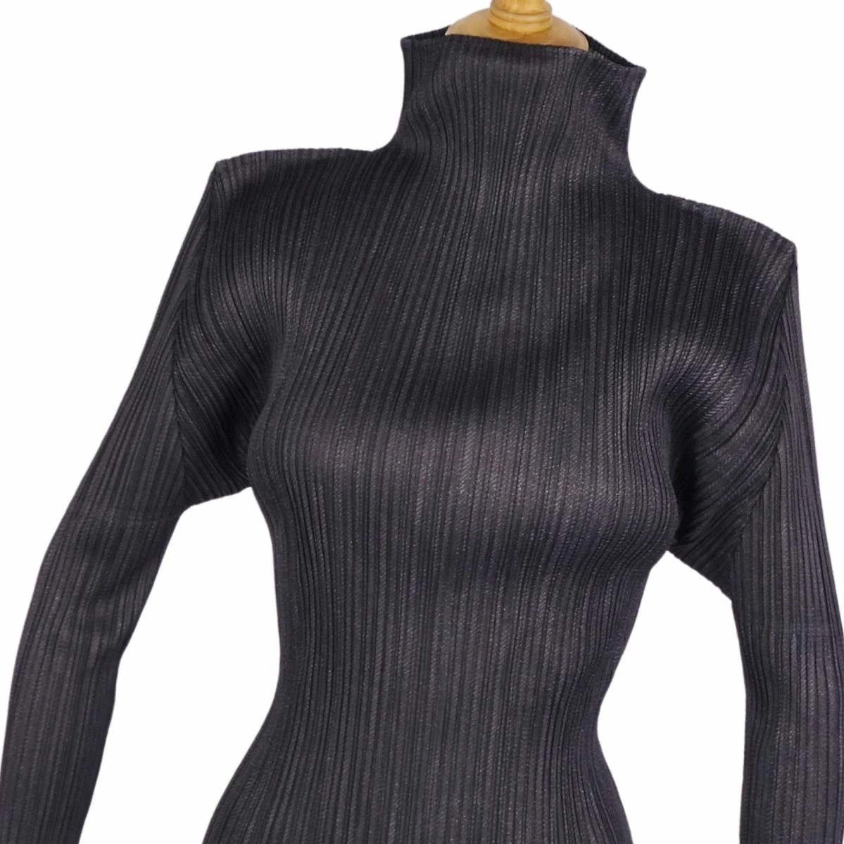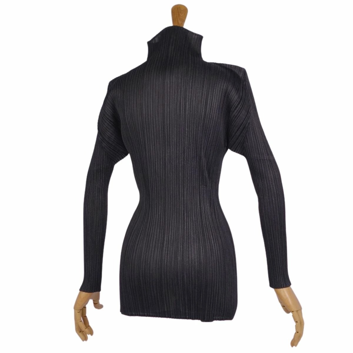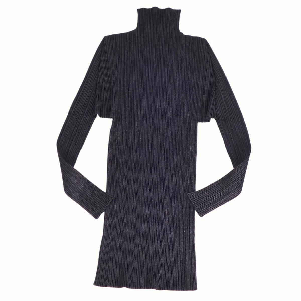 Pre-owned PLEATS PLEASE Issey Miyake shirt, high-neck, long-sleeved pleated top, in indigo blue, size 4 (equivalent to XL).