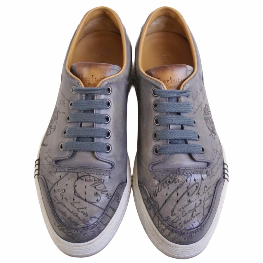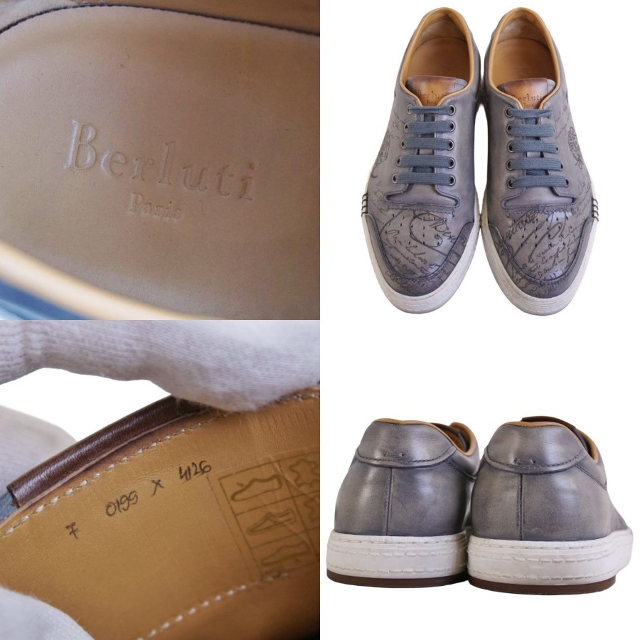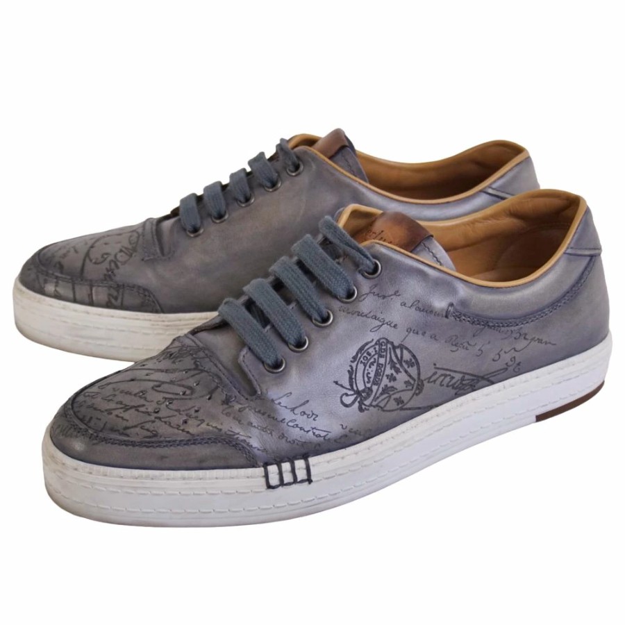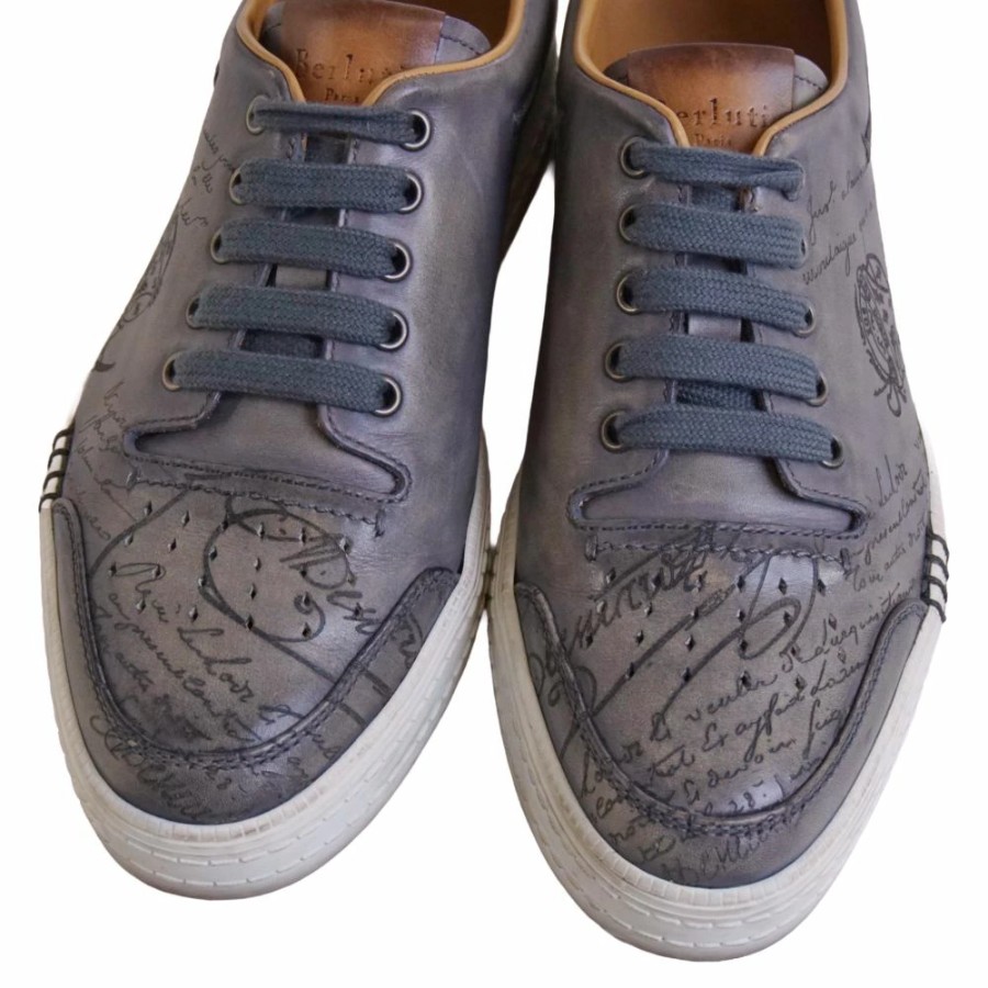 ベルルッティ Berluti スニーカー プレイタイム PLAYTIME カリグラフィ ヴェネチアレザー メンズ イタリア製 グレー サイズ7(26.5cm相当)