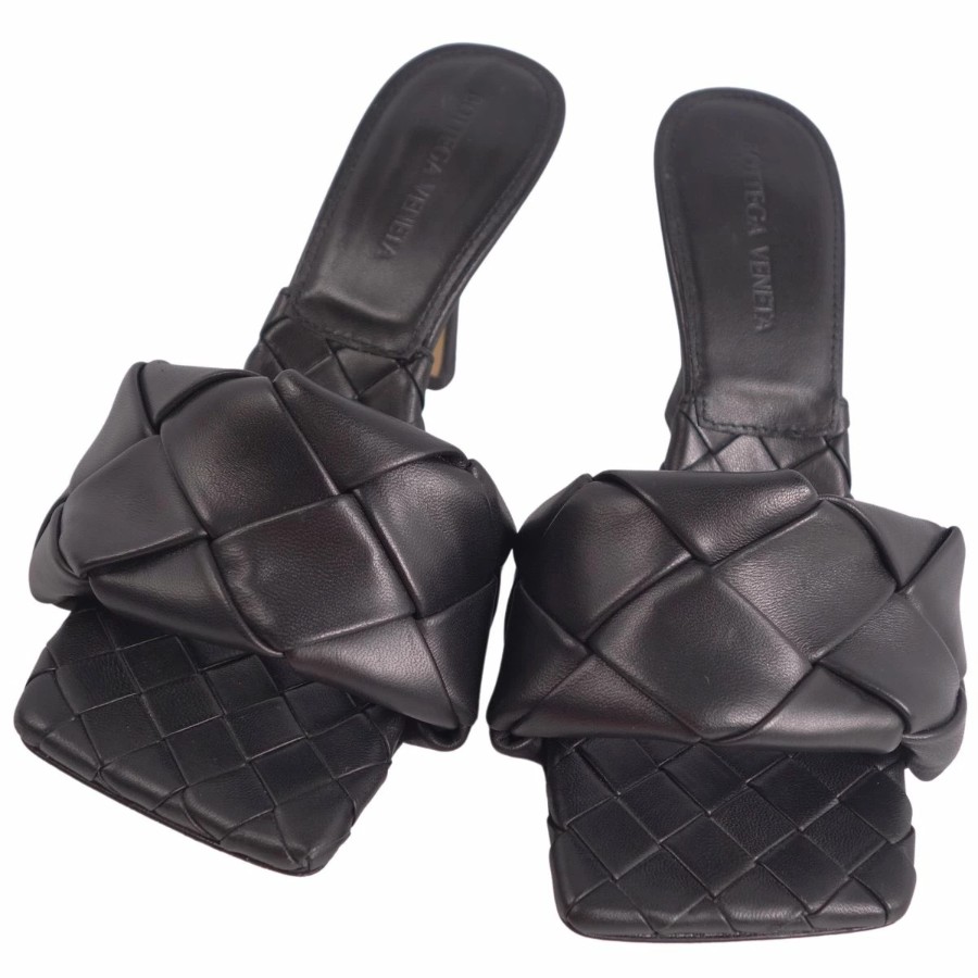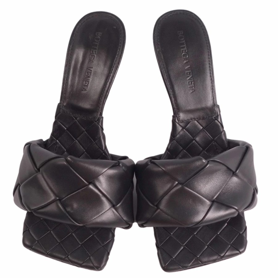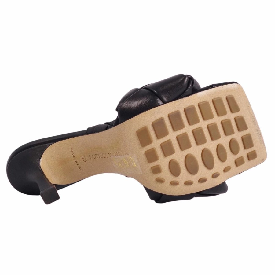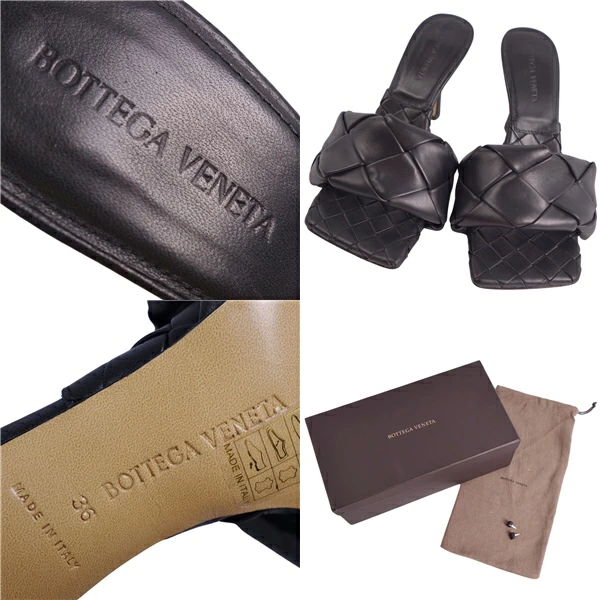 ボッテガヴェネタ BOTTEGA VENETA サンダル イントレチャート レザー ヒール シューズ 靴 レディース イタリア製 ブラック サイズ36(23cm相当)