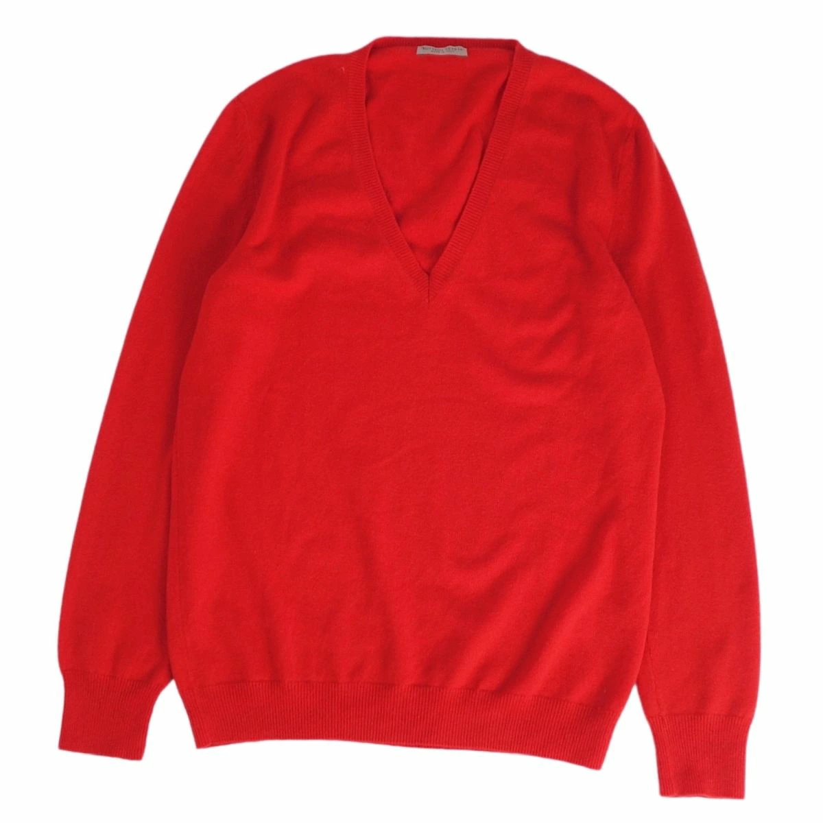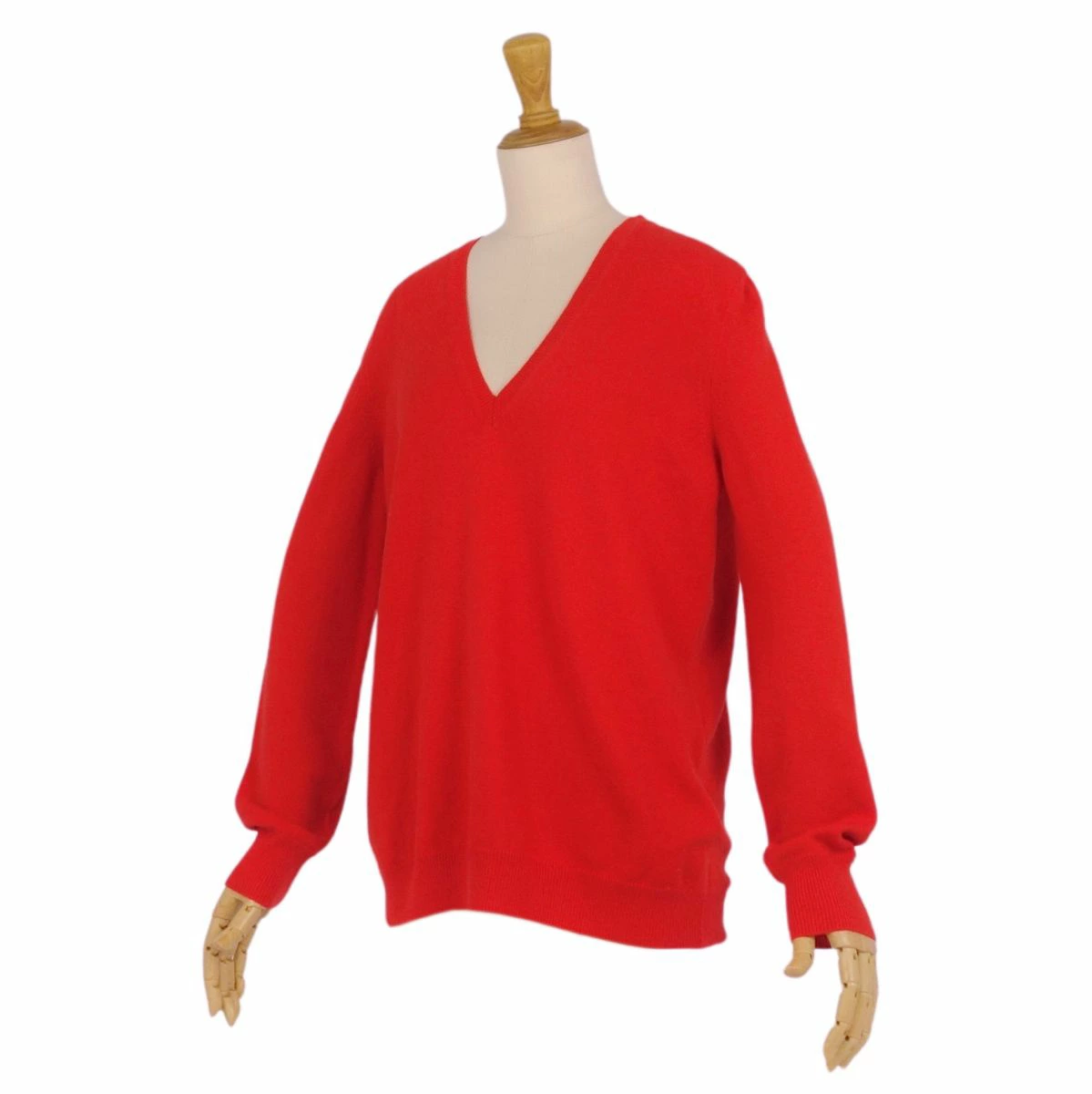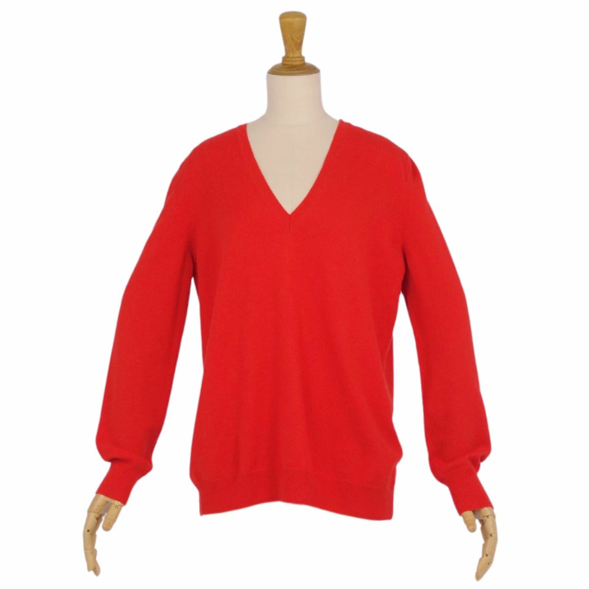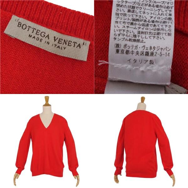 Pre-owned Bottega Veneta knit sweater, V-neck, long sleeves, solid color, 100% cashmere, women's size 38 (equivalent to S), red.