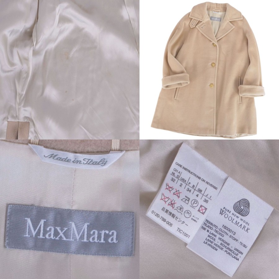 マックスマーラ Max Mara コート ステンカラーコート バルマカーンコート ウール アウター レディース ベージュ サイズJI36 USA2 FB34(XS相当)