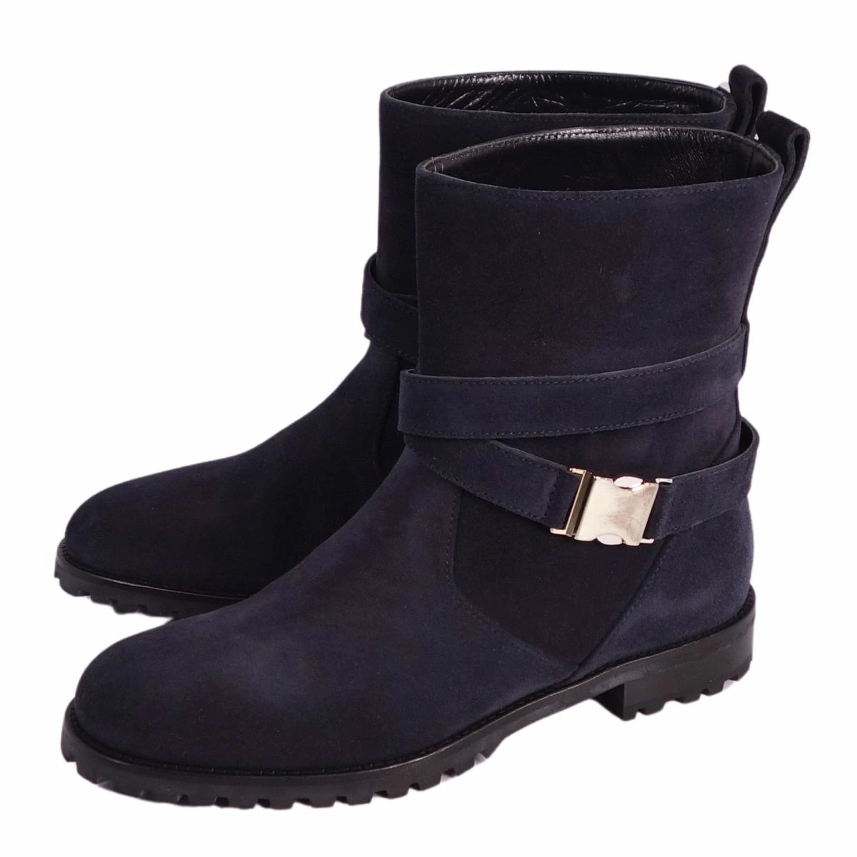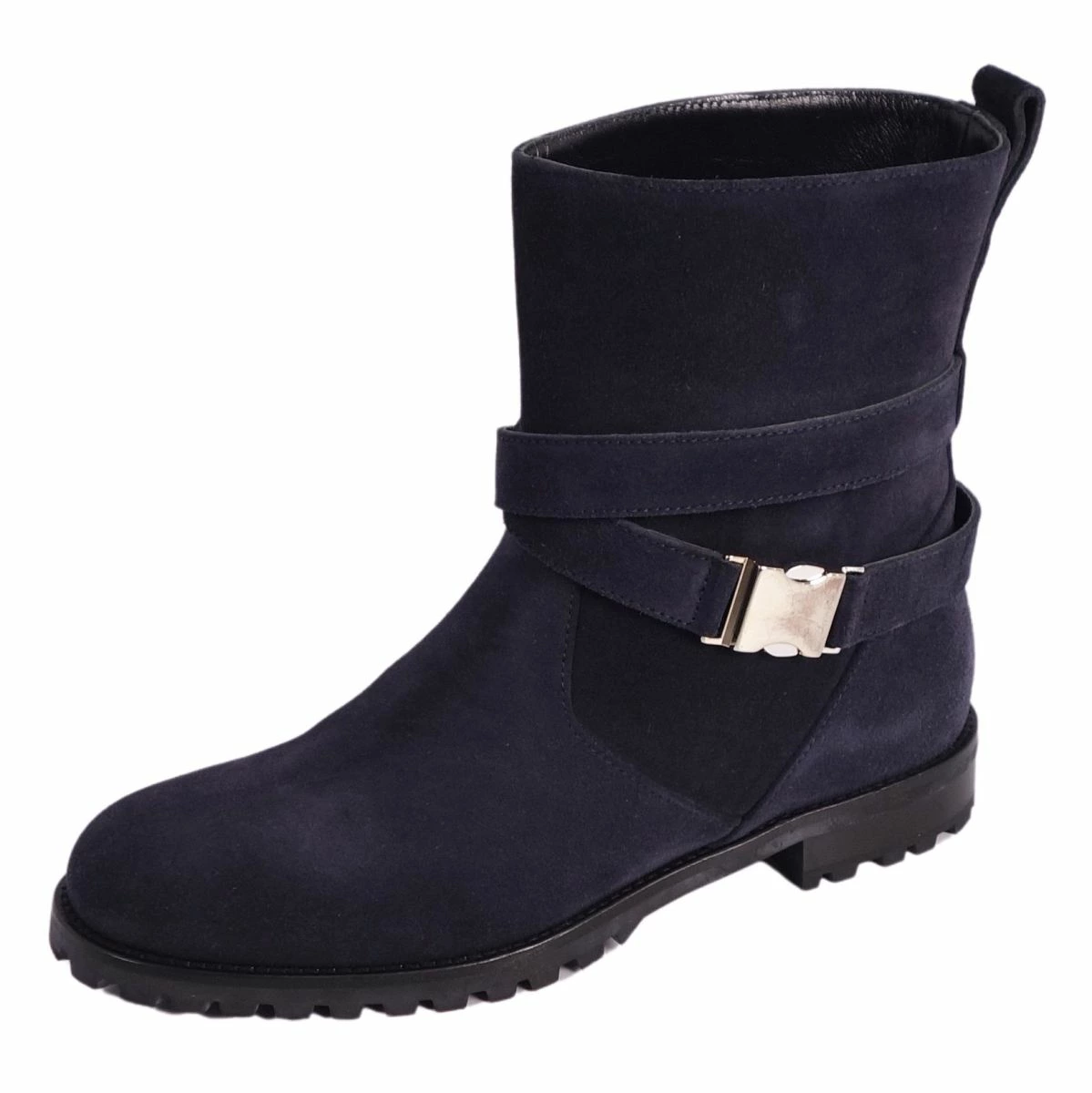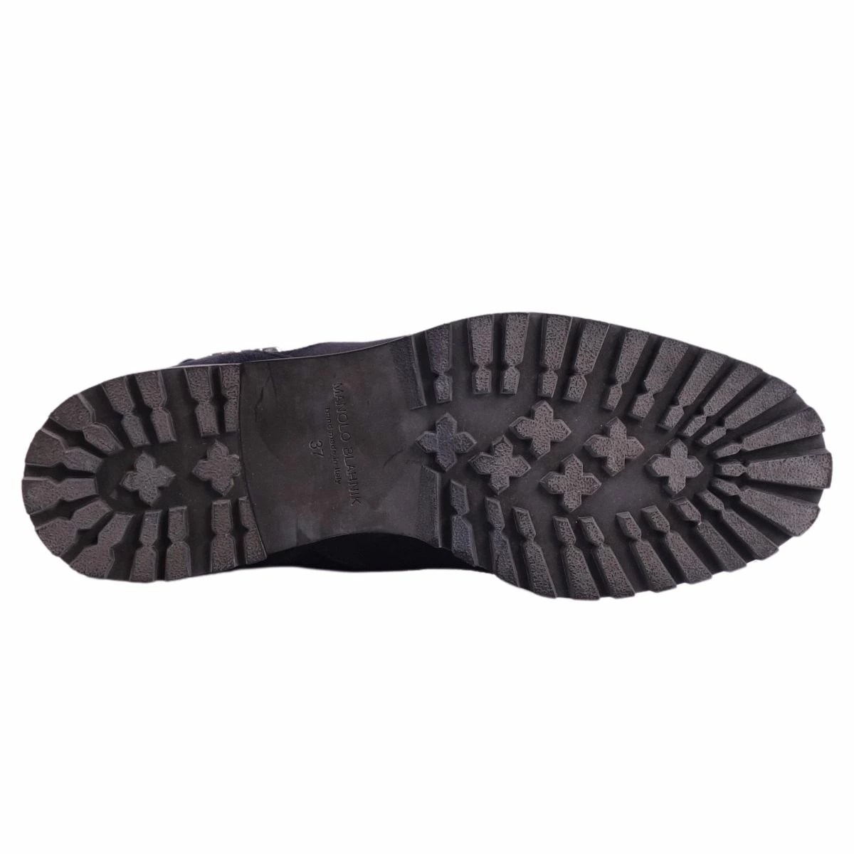 Pre-owned Manolo Blahnik 2023 Autumn/Winter Short Biker Boots in Suede Leather, Made in Italy, Size 37 (equivalent to 24cm), Navy.