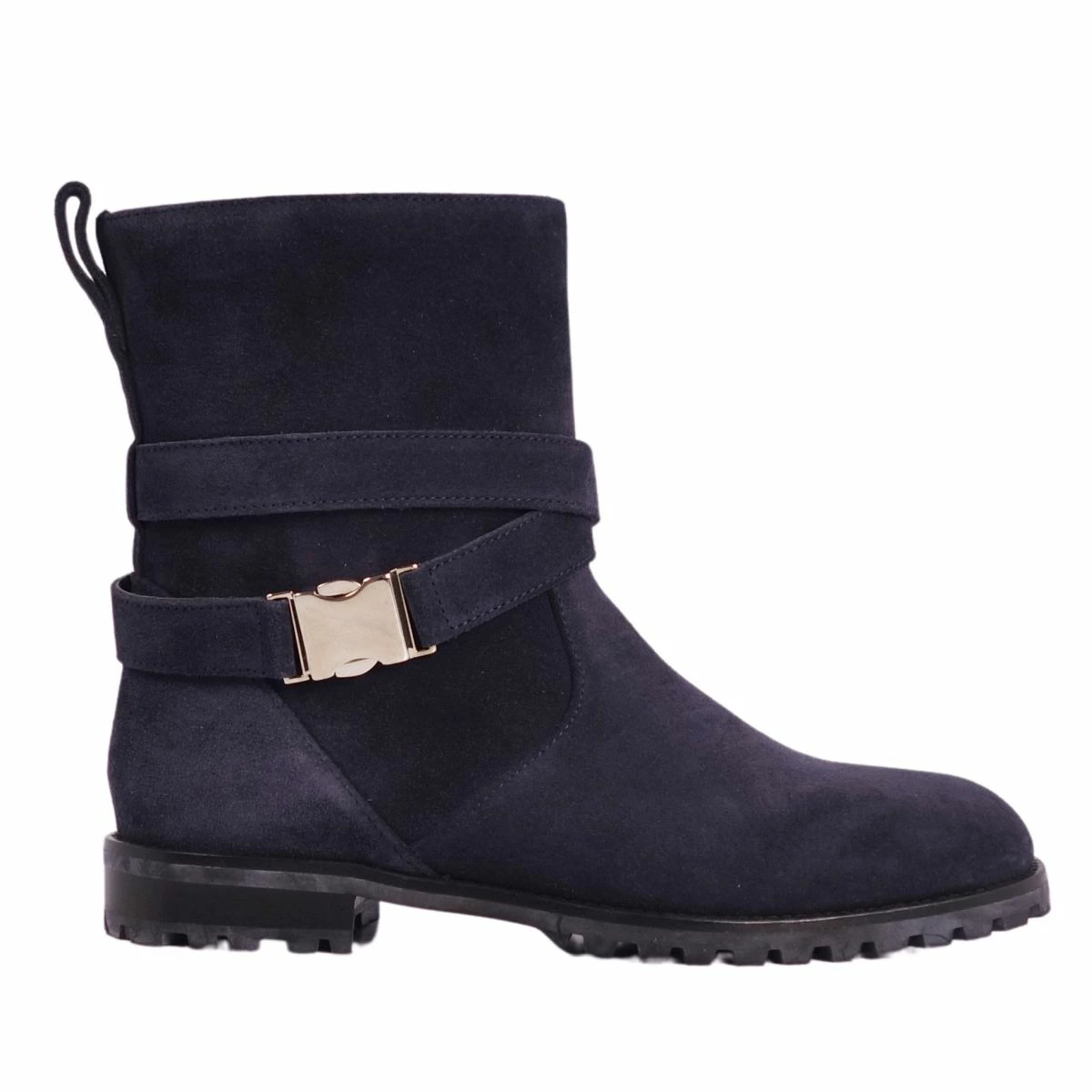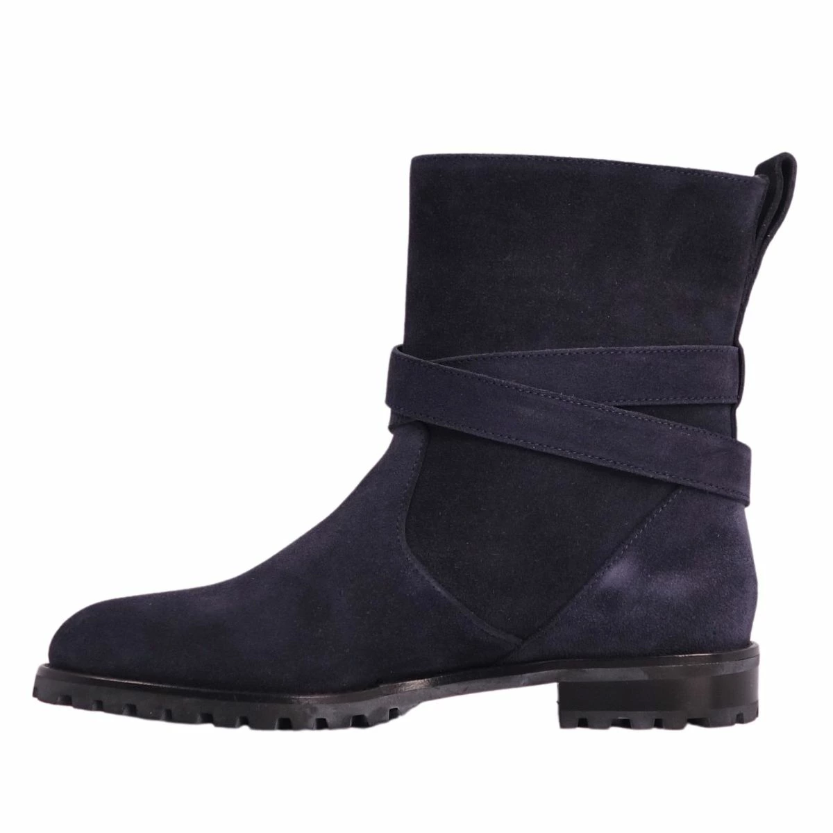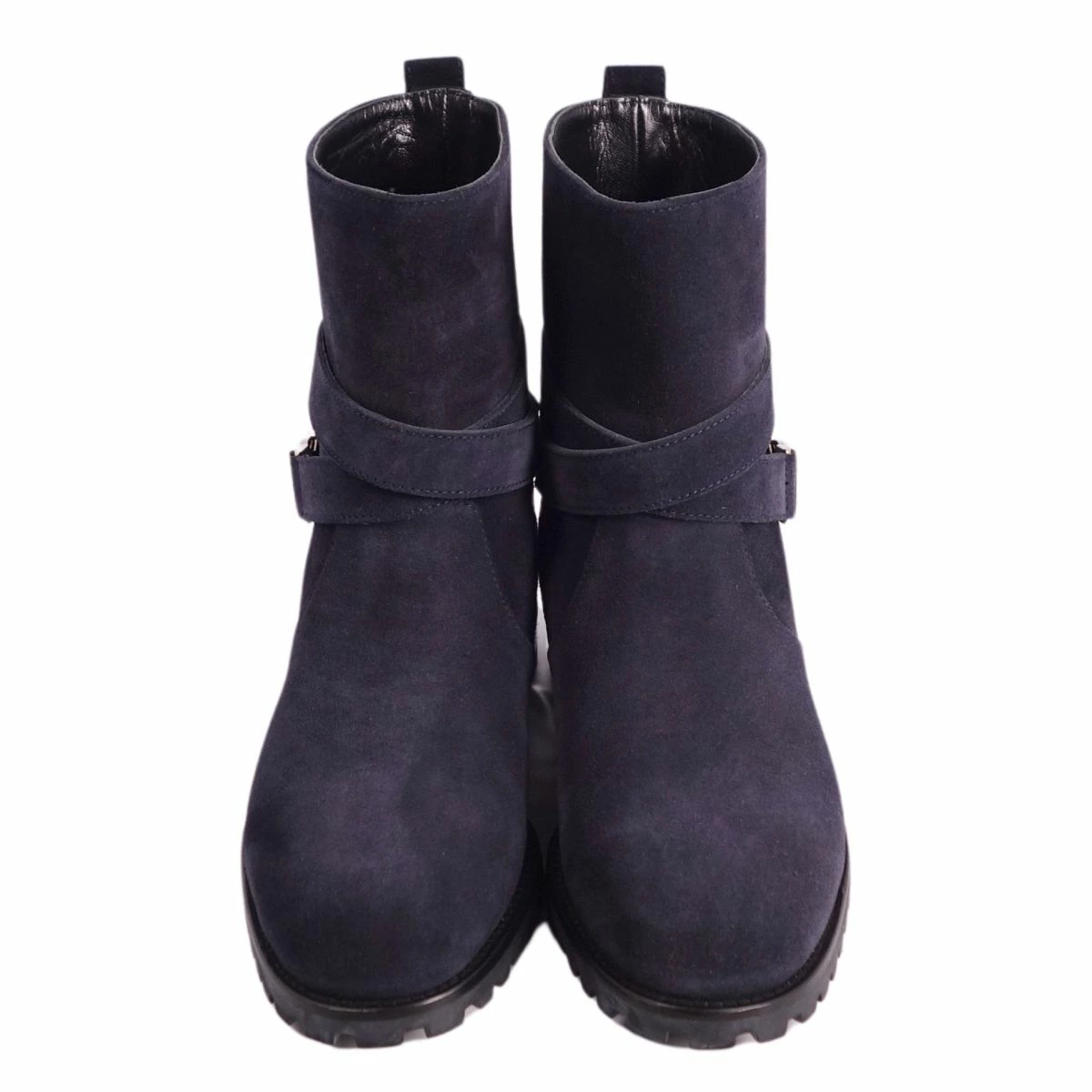 Pre-owned Manolo Blahnik 2023 Autumn/Winter Short Biker Boots in Suede Leather, Made in Italy, Size 37 (equivalent to 24cm), Navy.