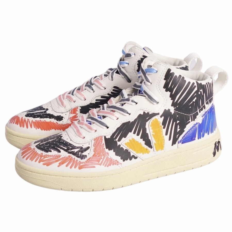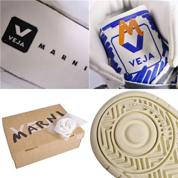 [Excellent Condition] Marni Veja High-Top Sneakers, All-Over Print Leather Shoes, Women's Size 22cm, Multicolor [Pre-owned]